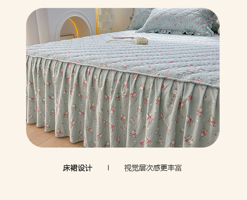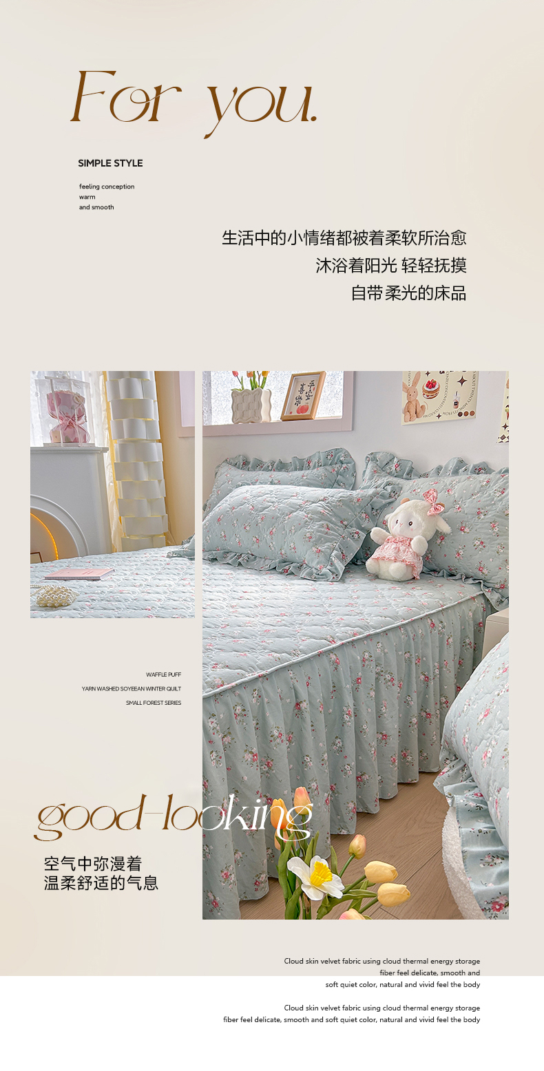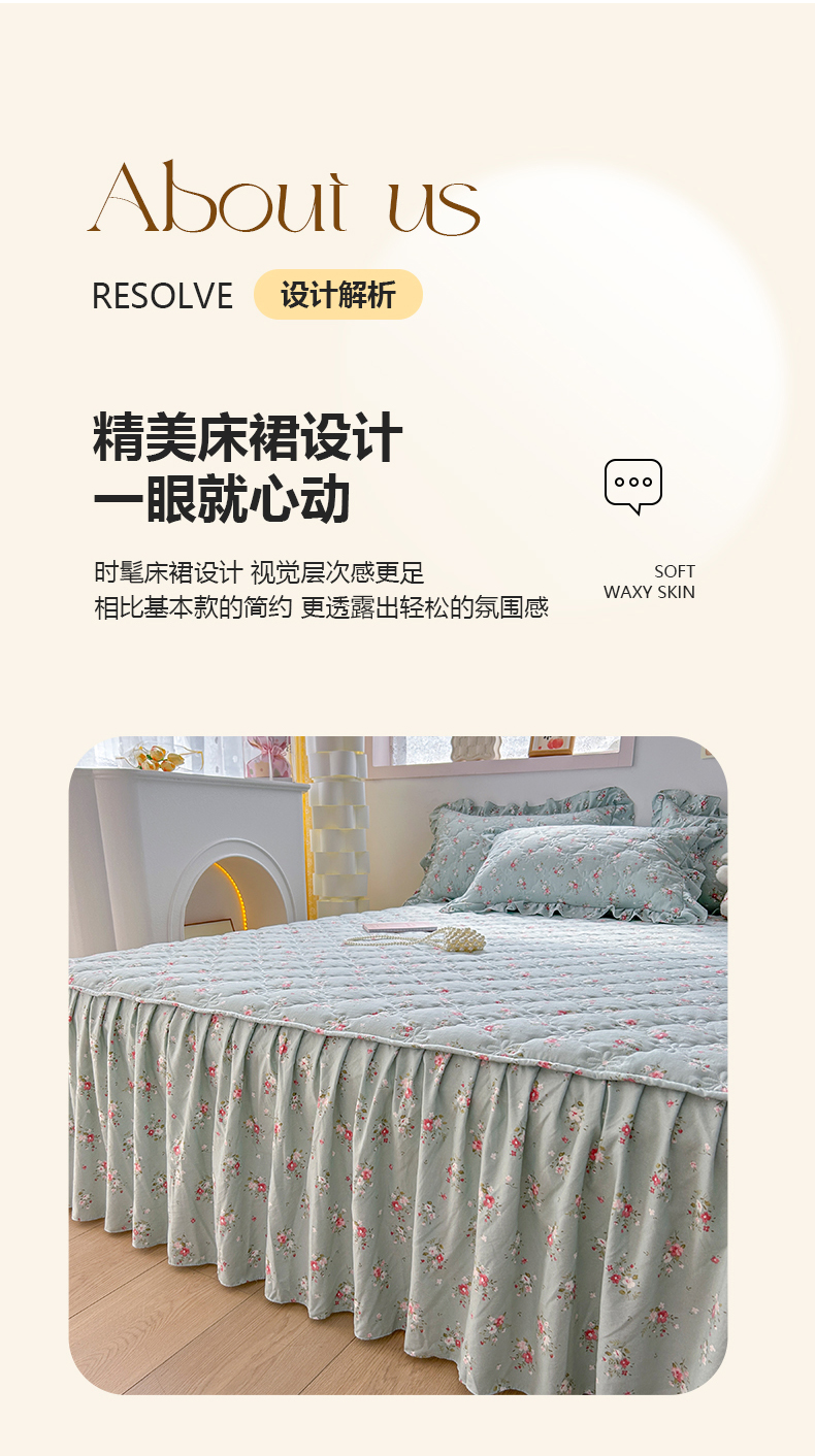 忘忧草 2024亲肤水洗棉夹棉床裙--小清新系列 陌上花开