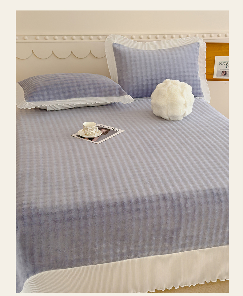 冬然 2022新款床盖牛奶绒夹棉床裙四件套单床裙单被套爱心格,爱心格