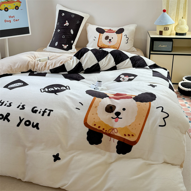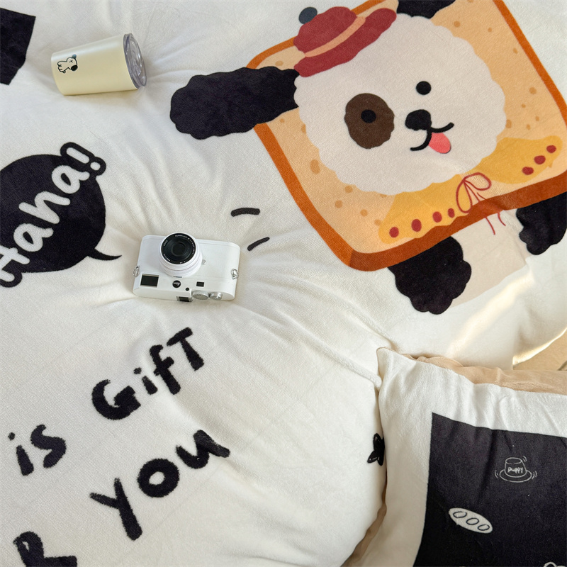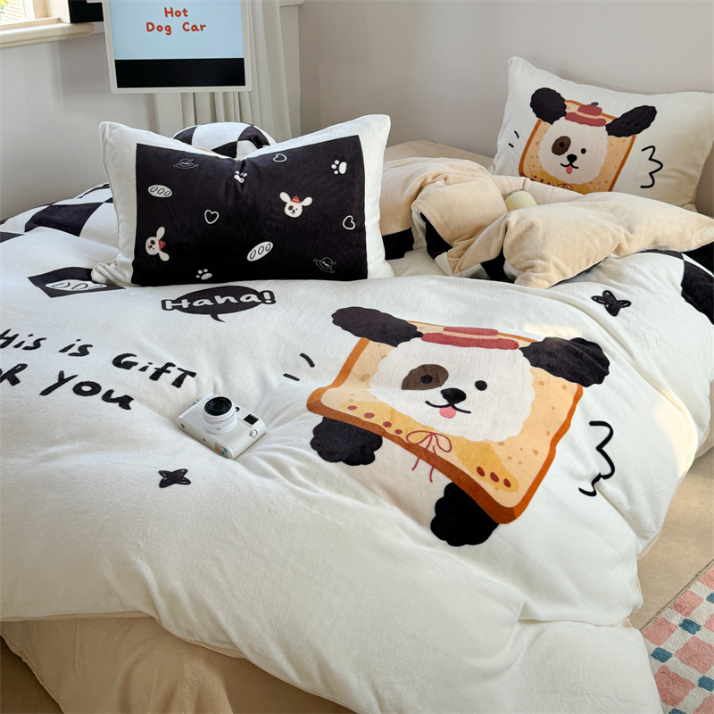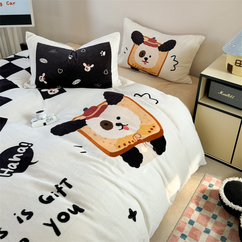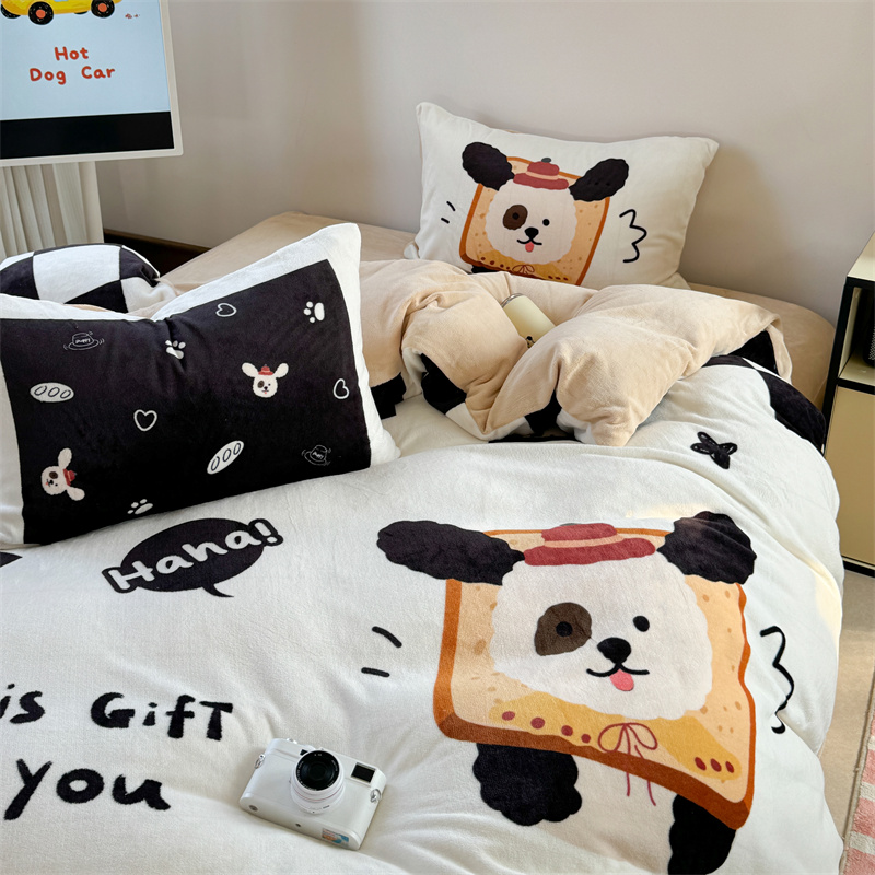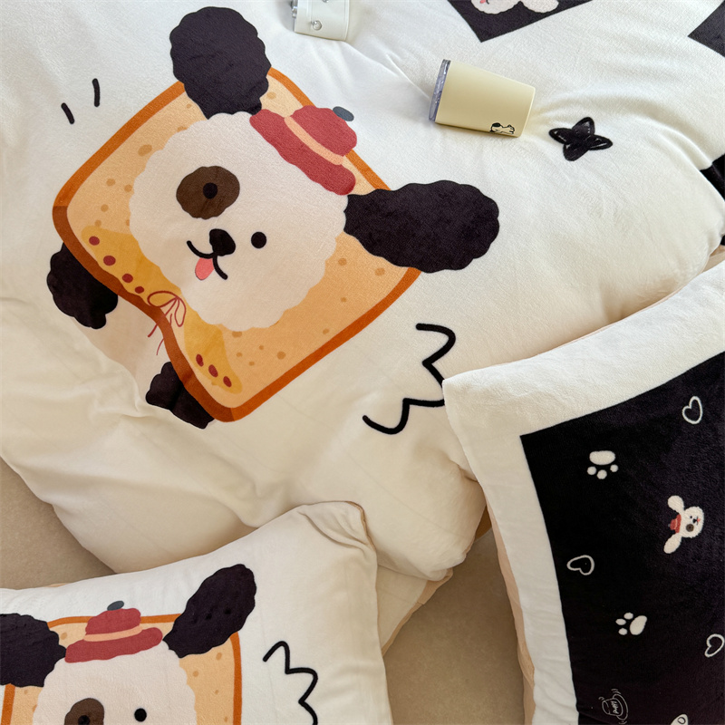 柚子YOUTH 2024新款大版印花牛奶绒四件套 面包狗