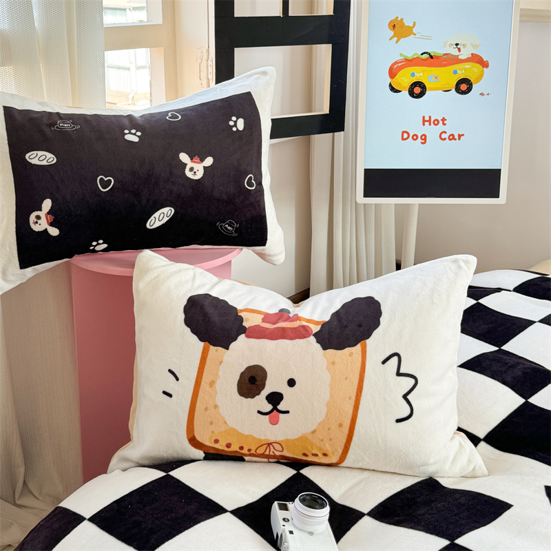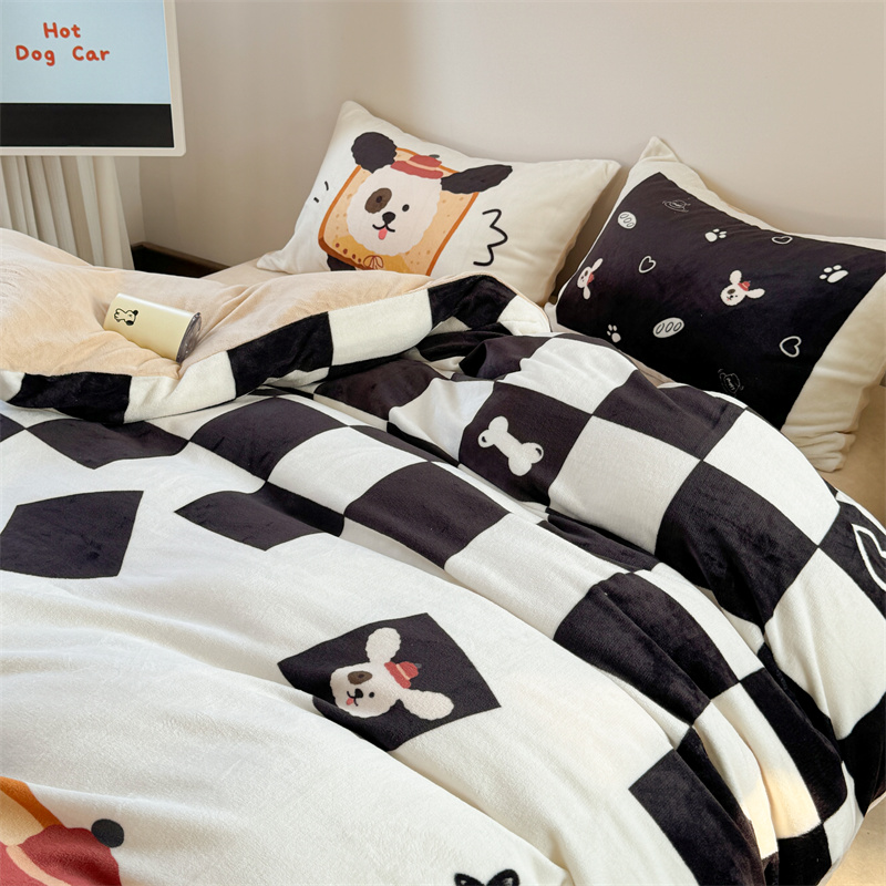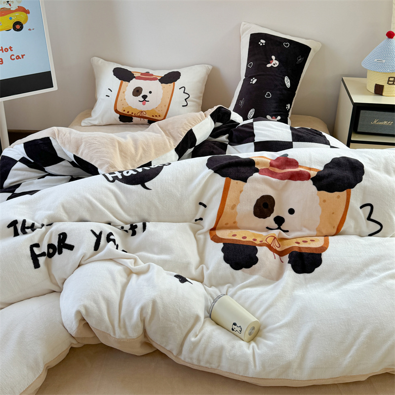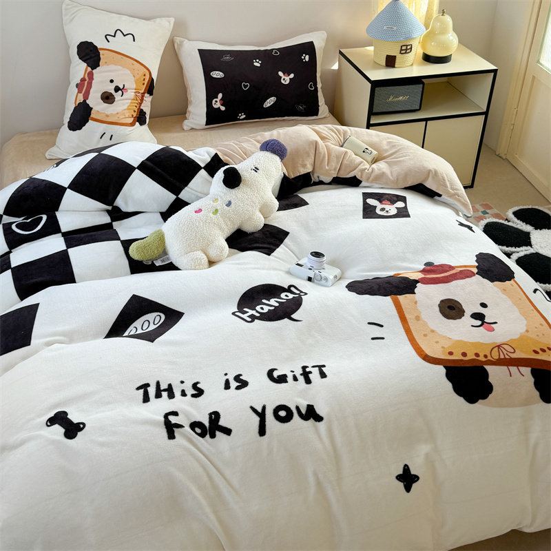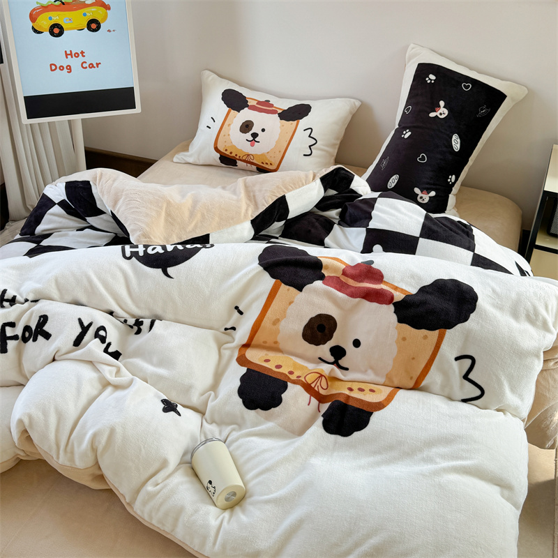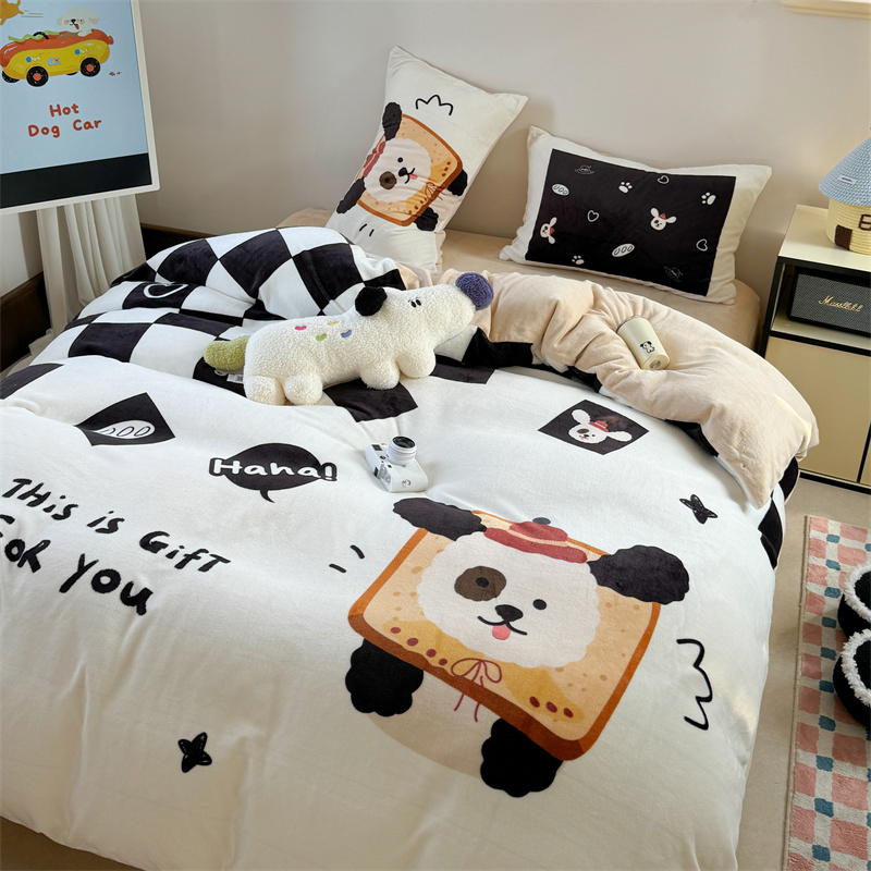 柚子YOUTH 2024新款大版印花牛奶绒四件套 面包狗