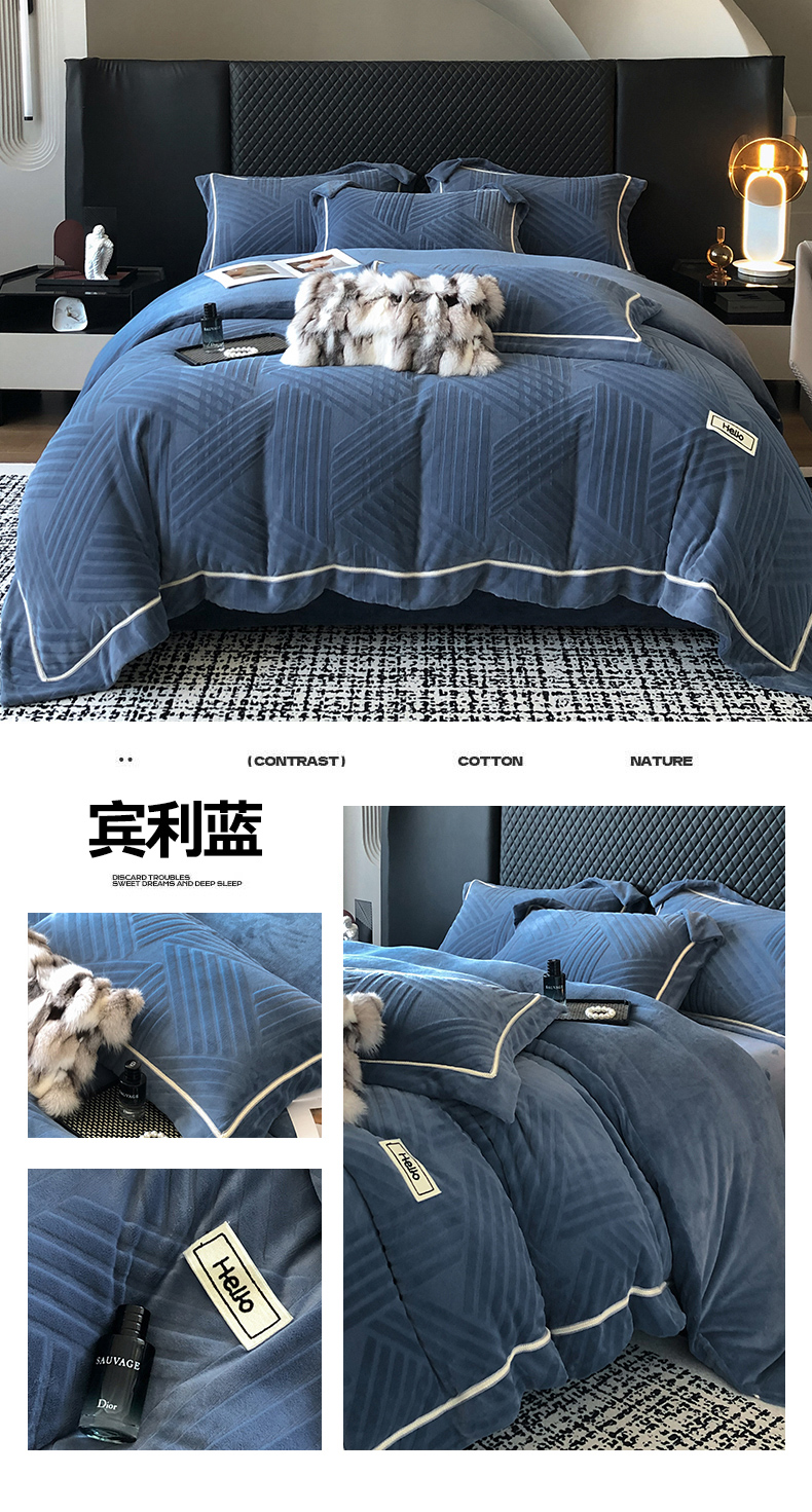 首尔家纺 2024新款雕花牛奶绒律动系列四件套 律动-宾利蓝