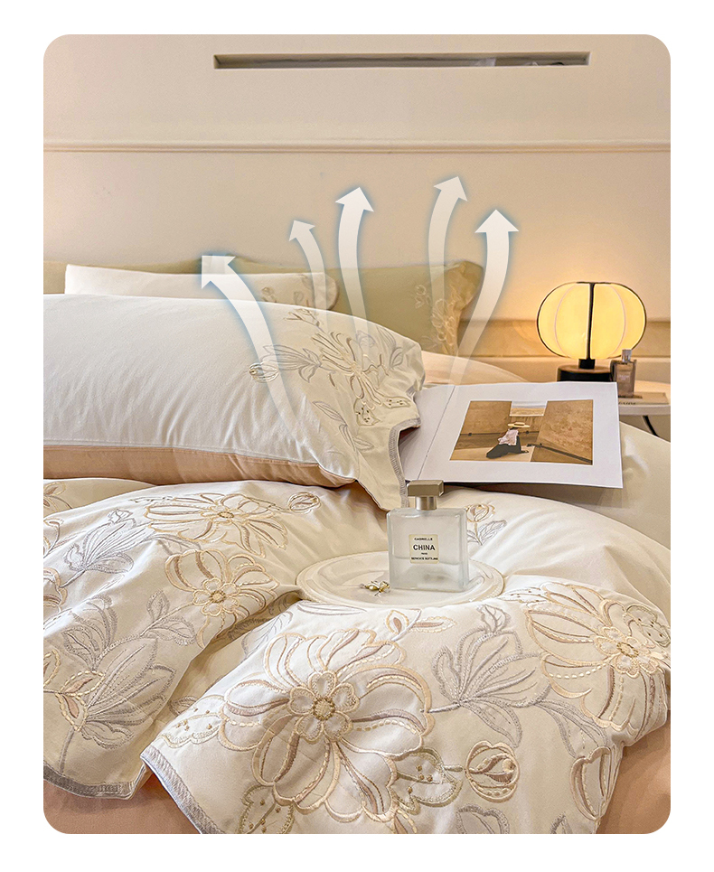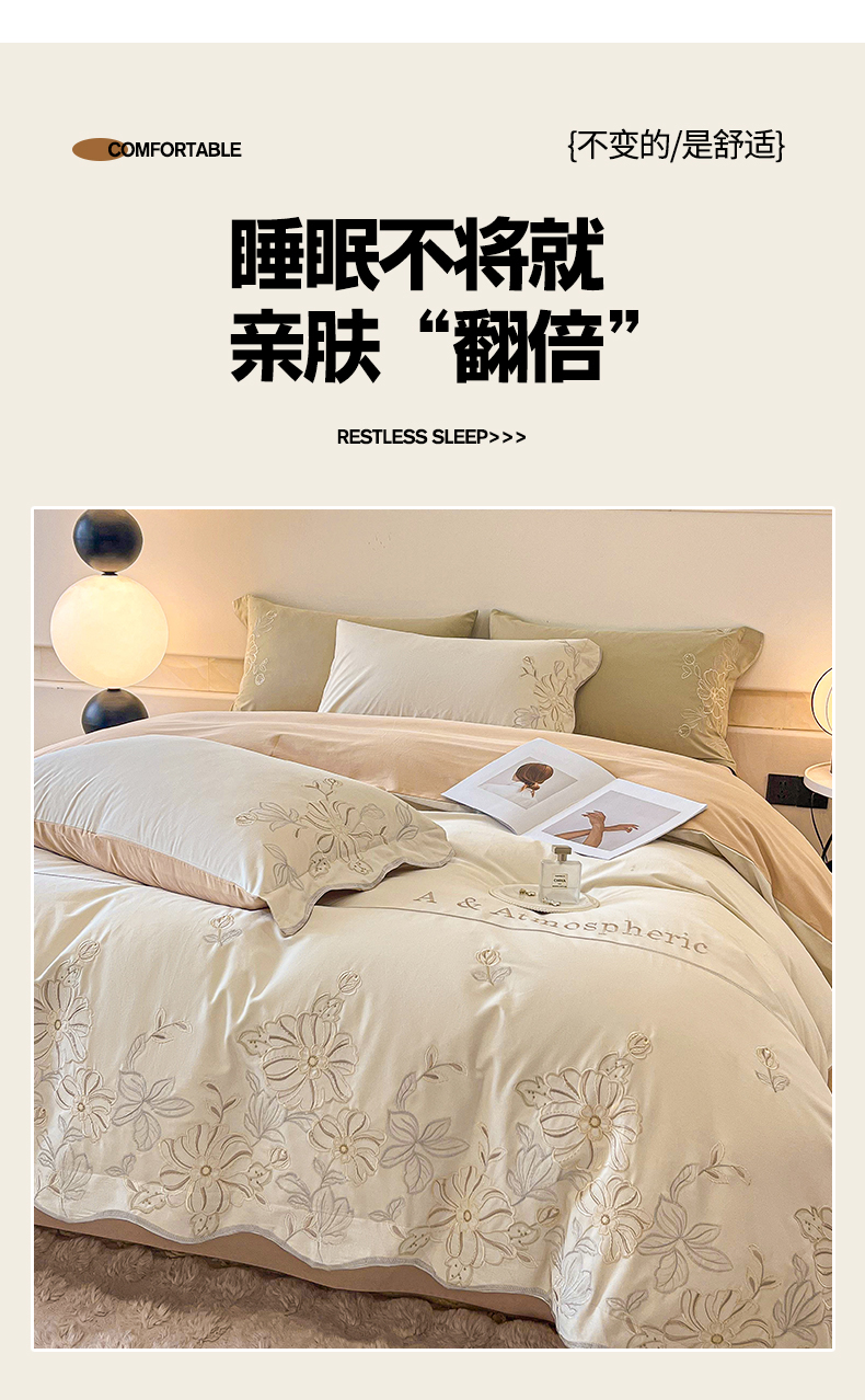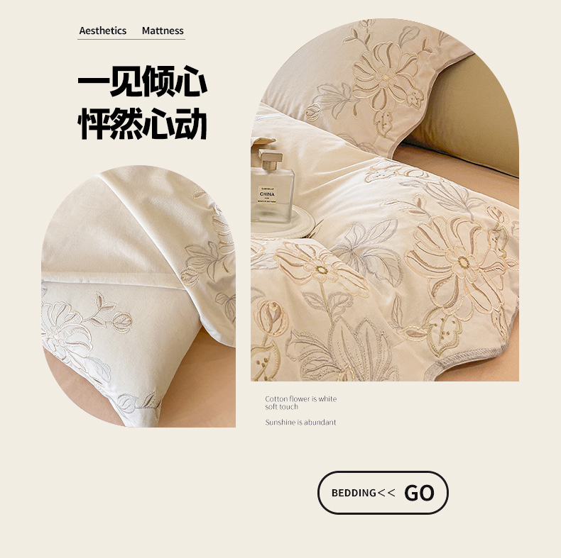 (总)艾莱家纺 2025新款A类精梳纯棉刺绣花四件套-赫柏,赫柏-橙夕,赫柏-花田米,赫柏-浅粉,赫柏-夜绿