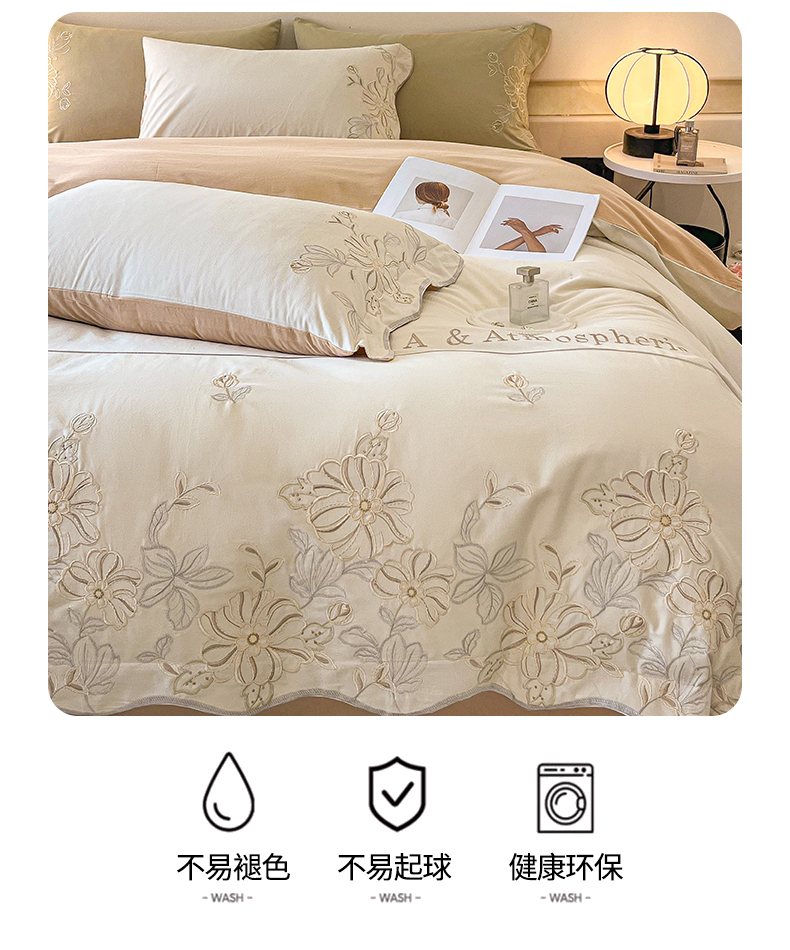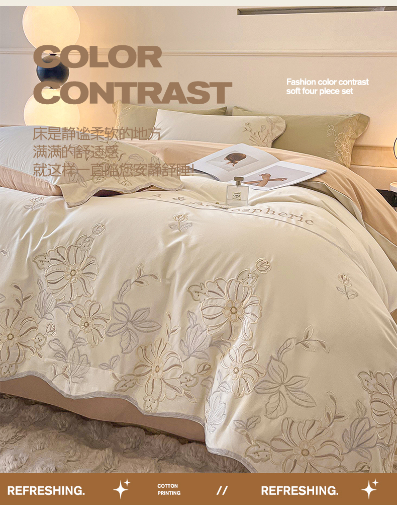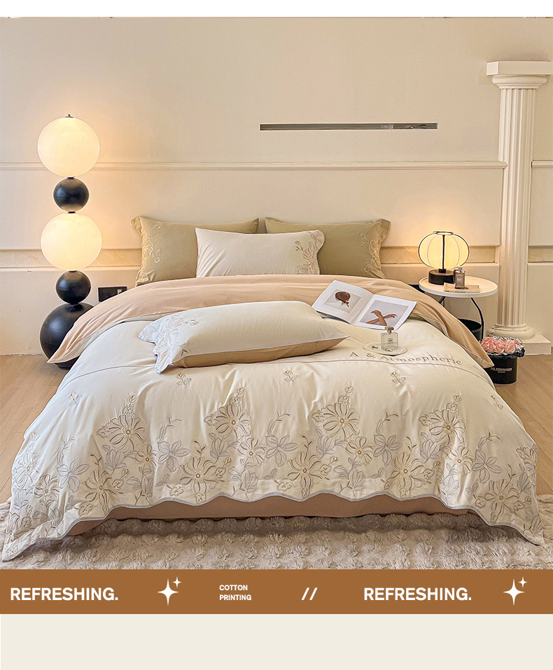 (总)艾莱家纺 2025新款A类精梳贴布纯棉刺绣花四件套-星澜,星澜-春绿,星澜-美拉德,星澜-蜜糖粉,星澜-松露咖,星澜-小米,星澜-烟云灰