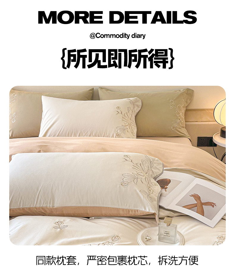 (总)艾莱家纺 2025新款A类水洗棉加厚绣花四件套-栀夏,栀夏-草莓奶粉,栀夏-格林棕,栀夏-暮光绿,栀夏-青叶紫,栀夏-银蓝