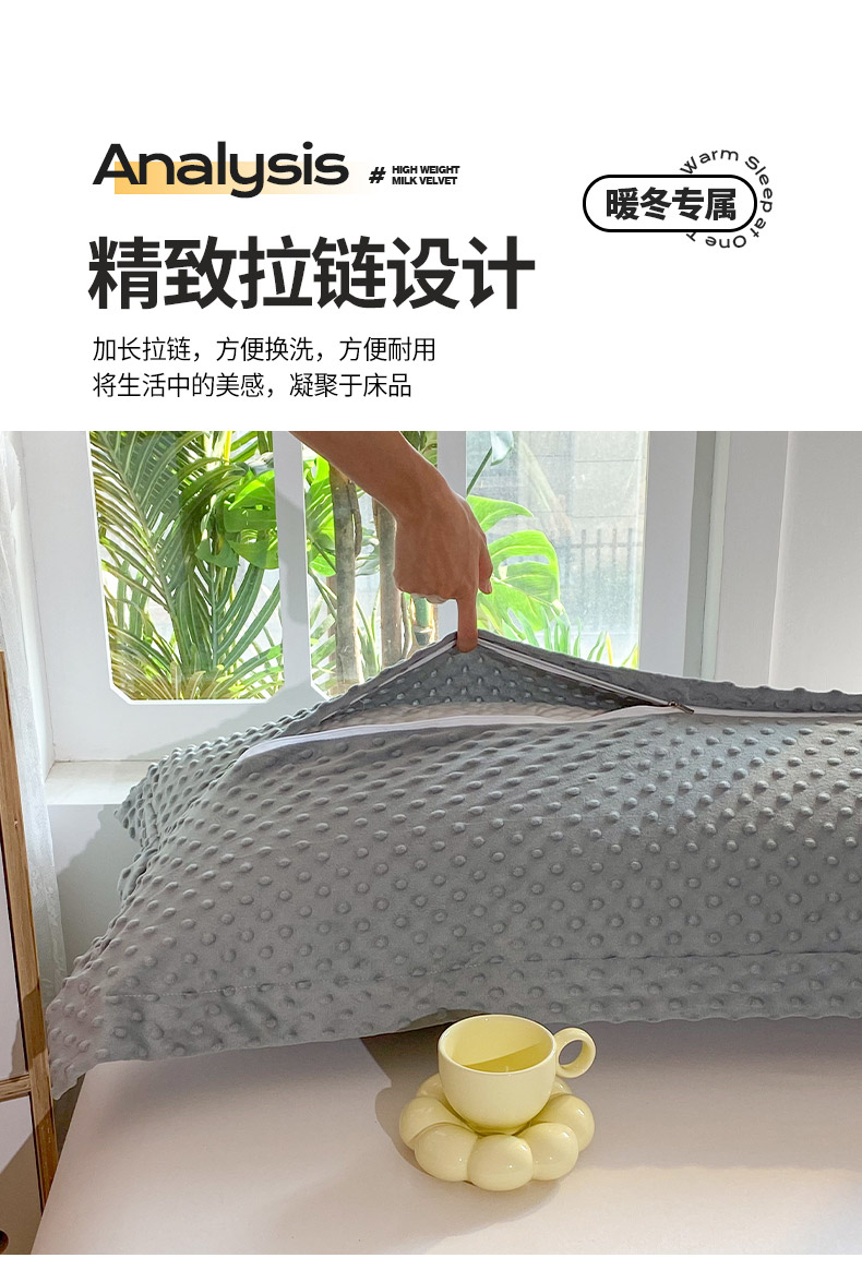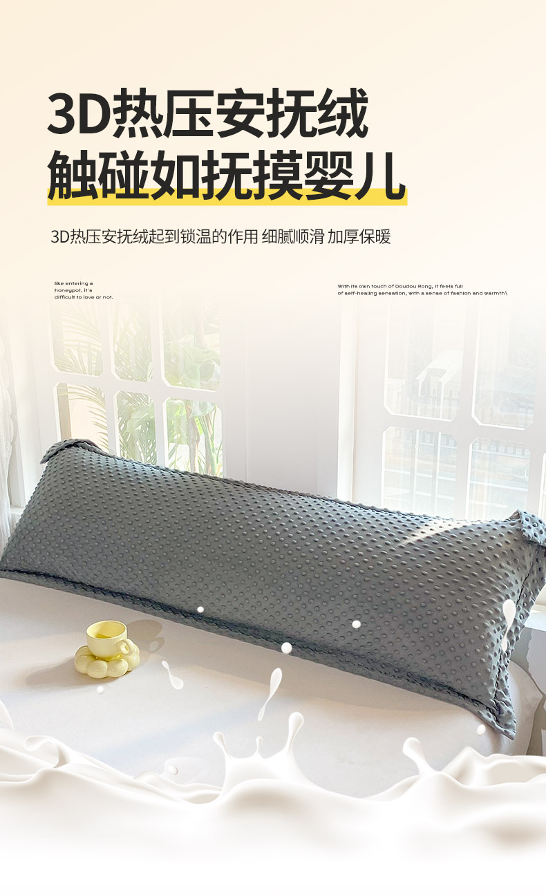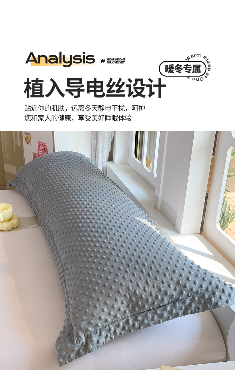 商品名称:美宜家 2025新款豆豆绒保暖双人情侣枕套长枕芯保护套 暖豆豆灰