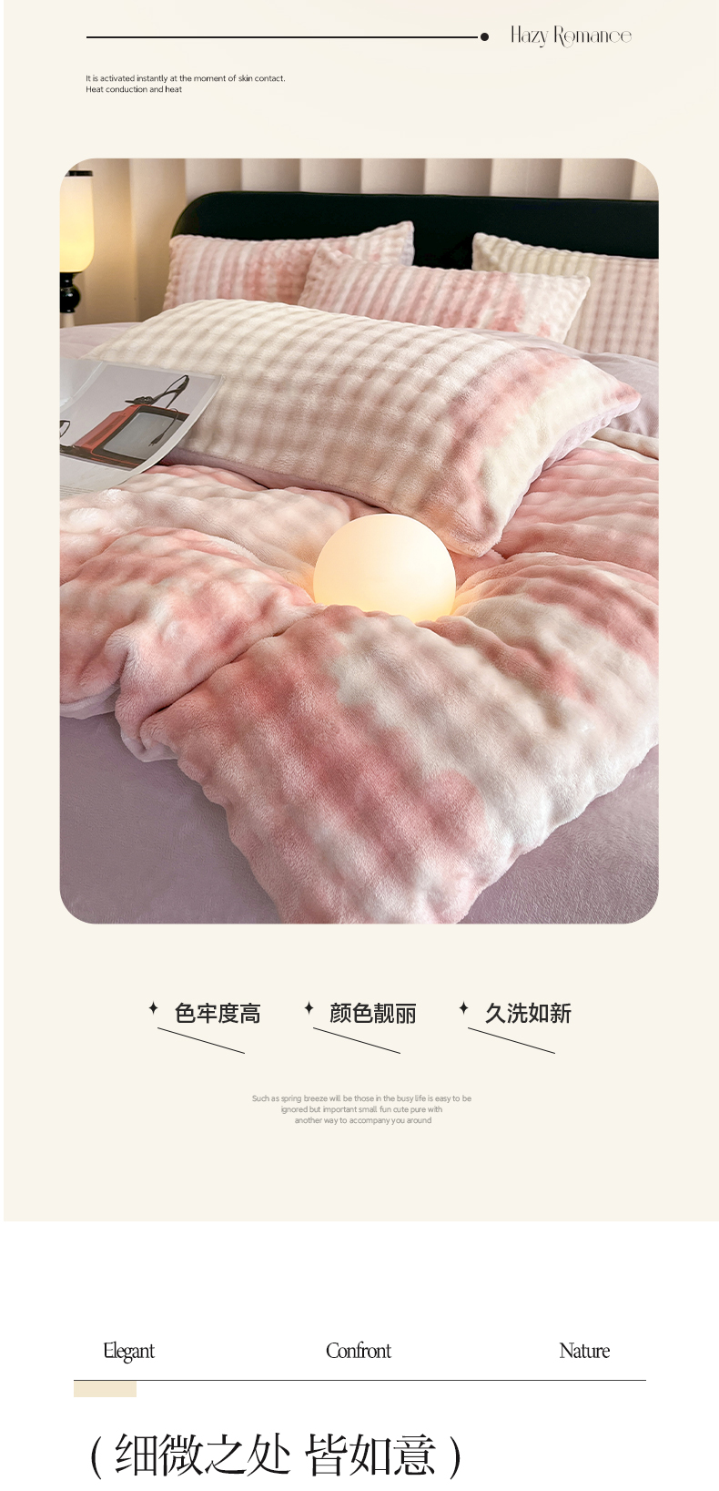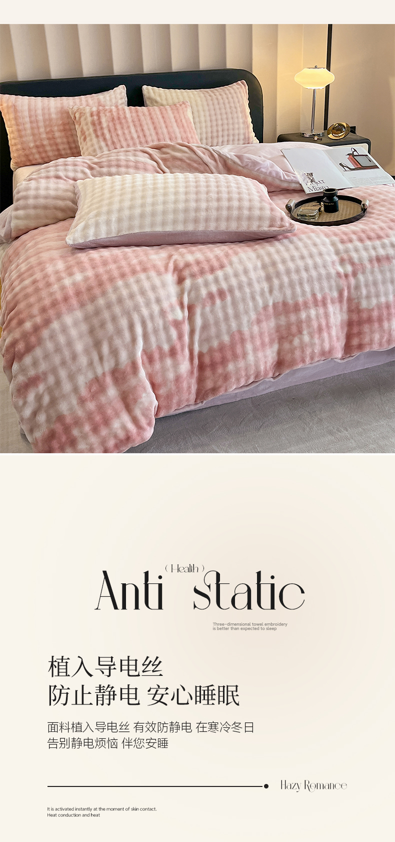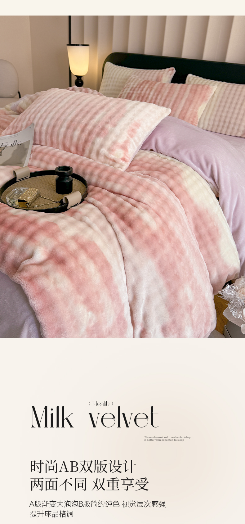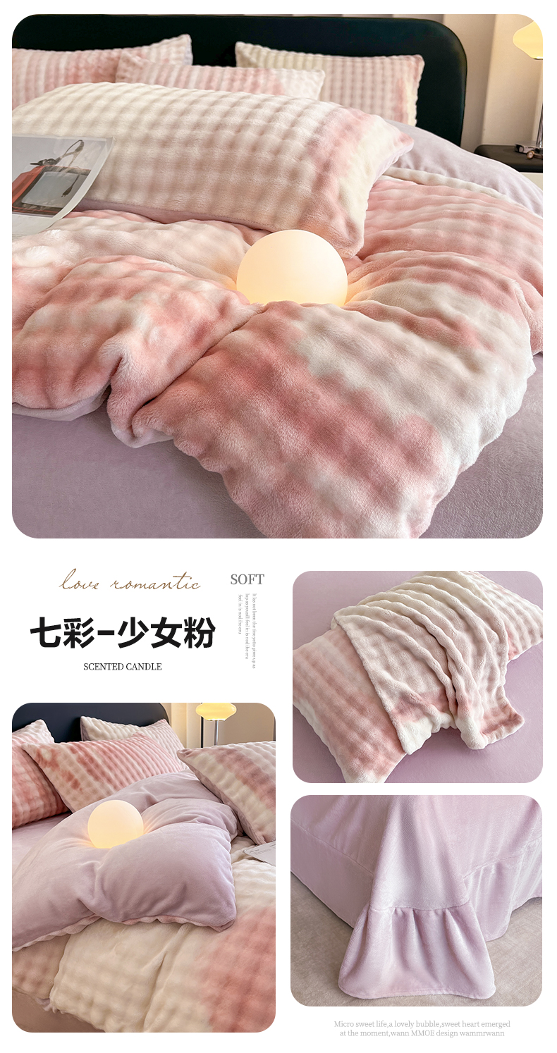 2024新款牛奶绒泡泡四件套系列 七彩-少女粉
