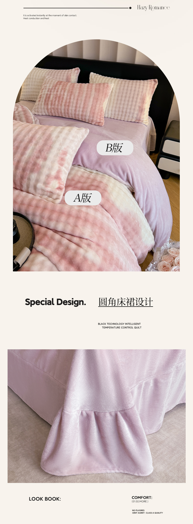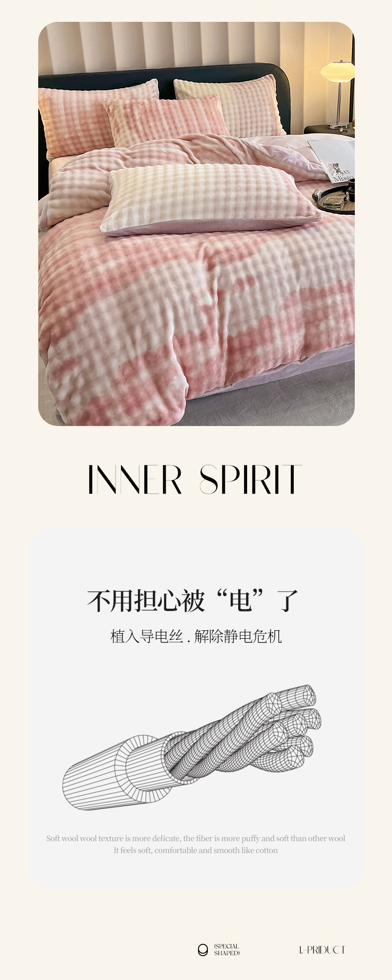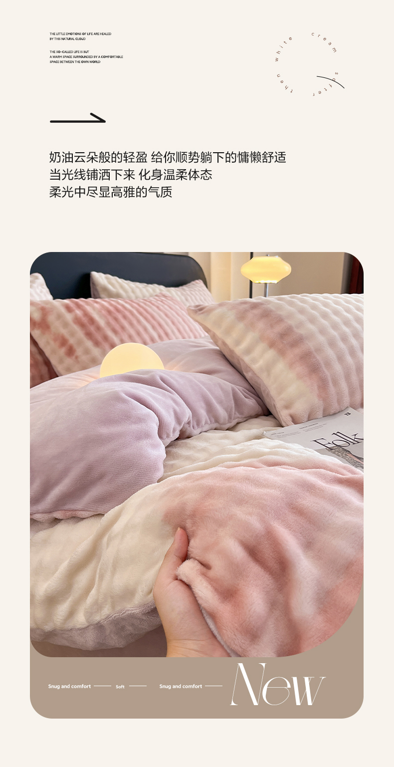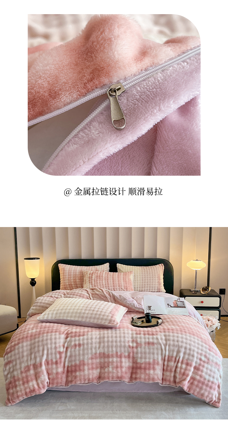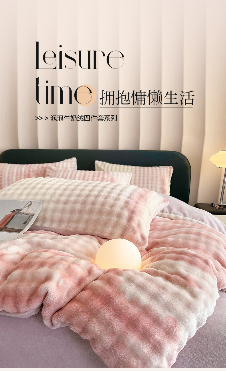 2024新款牛奶绒泡泡四件套系列 七彩-少女粉