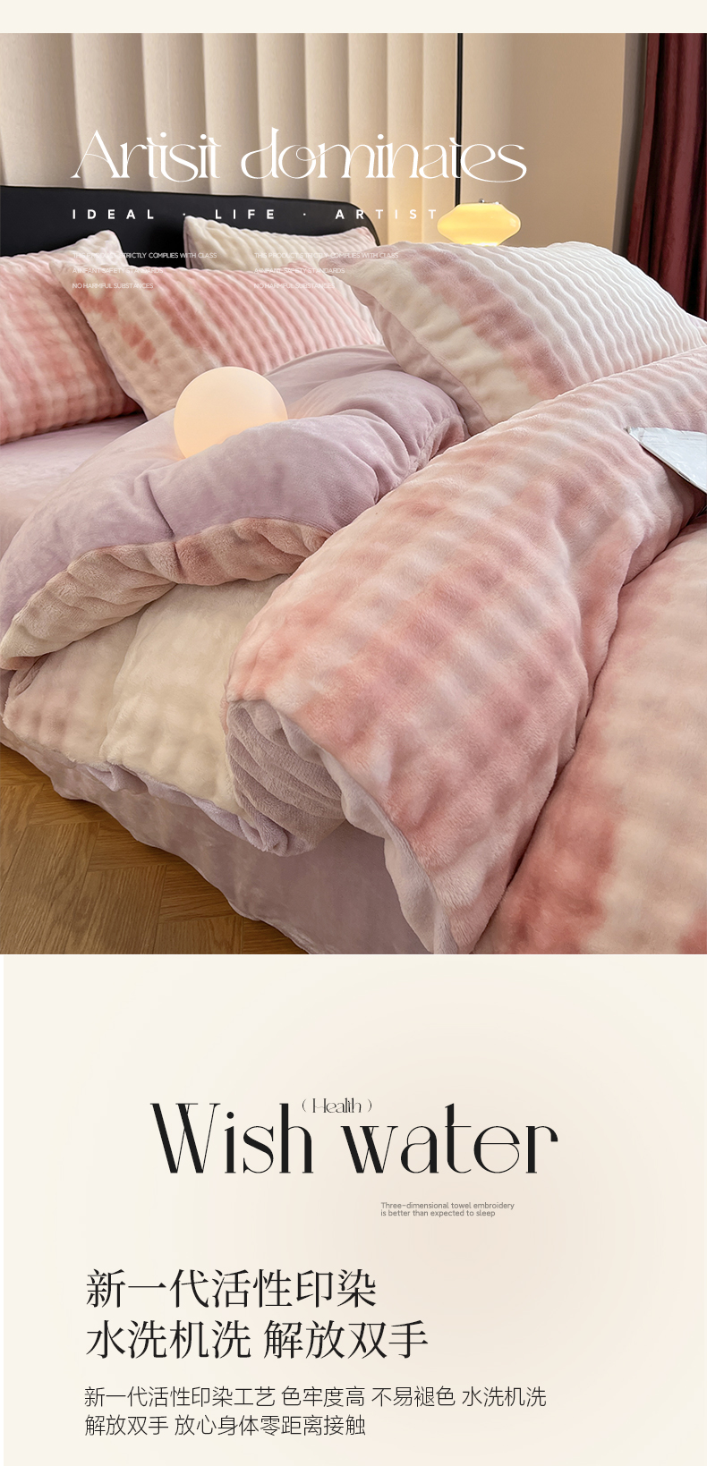 商品名称:2024新款牛奶绒泡泡四件套系列 七彩-少女粉