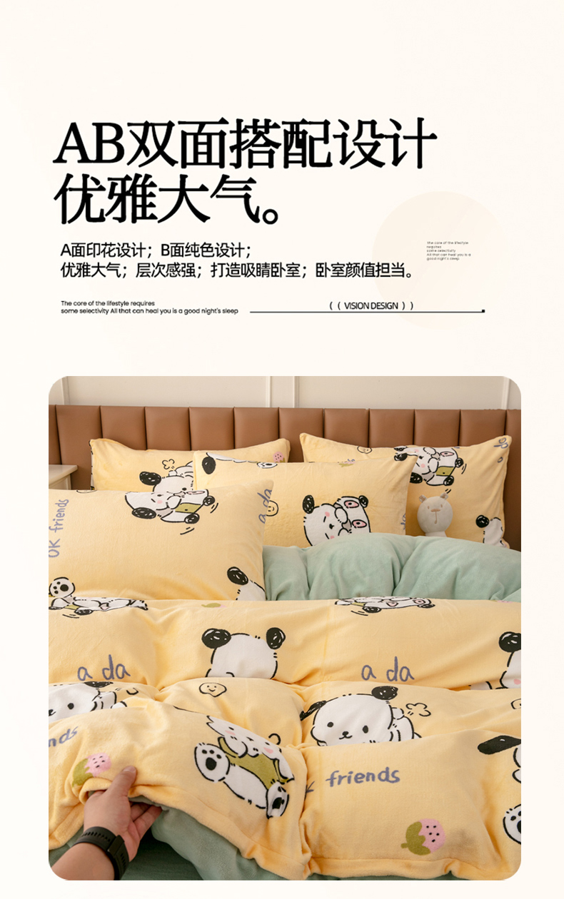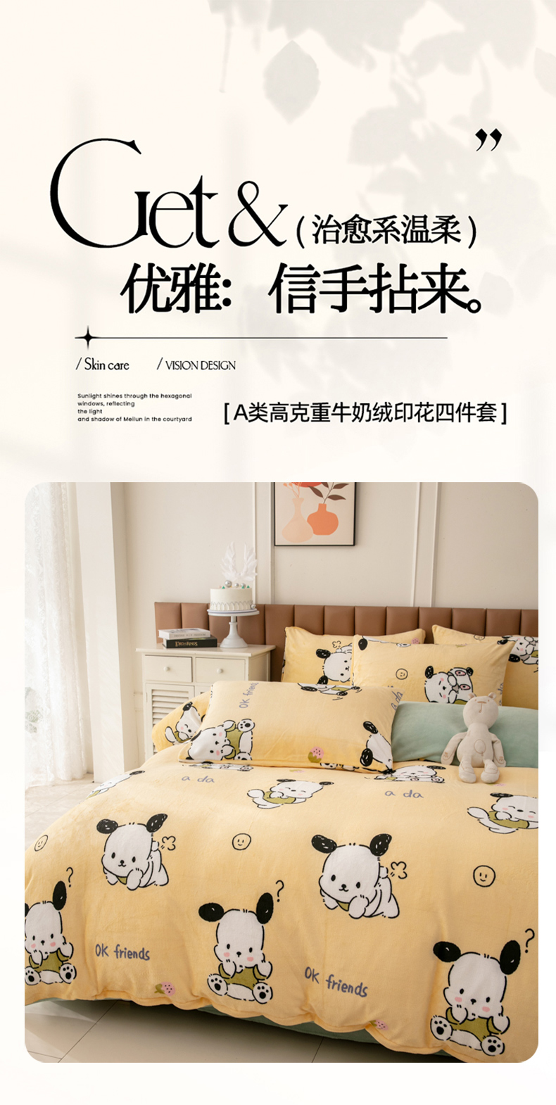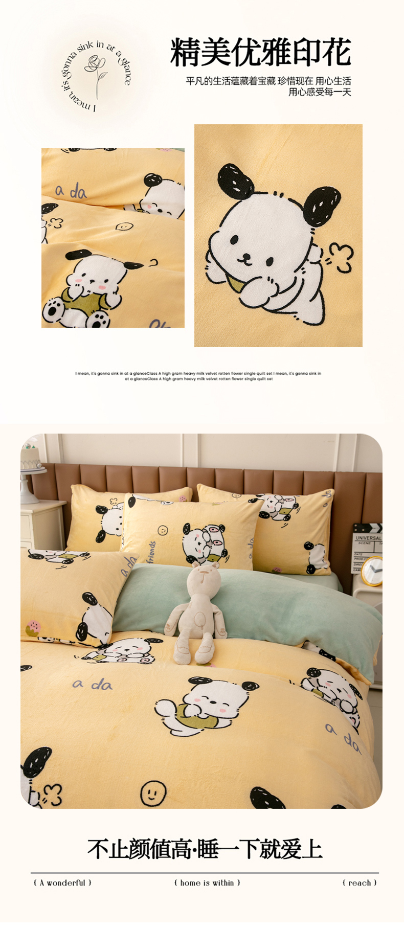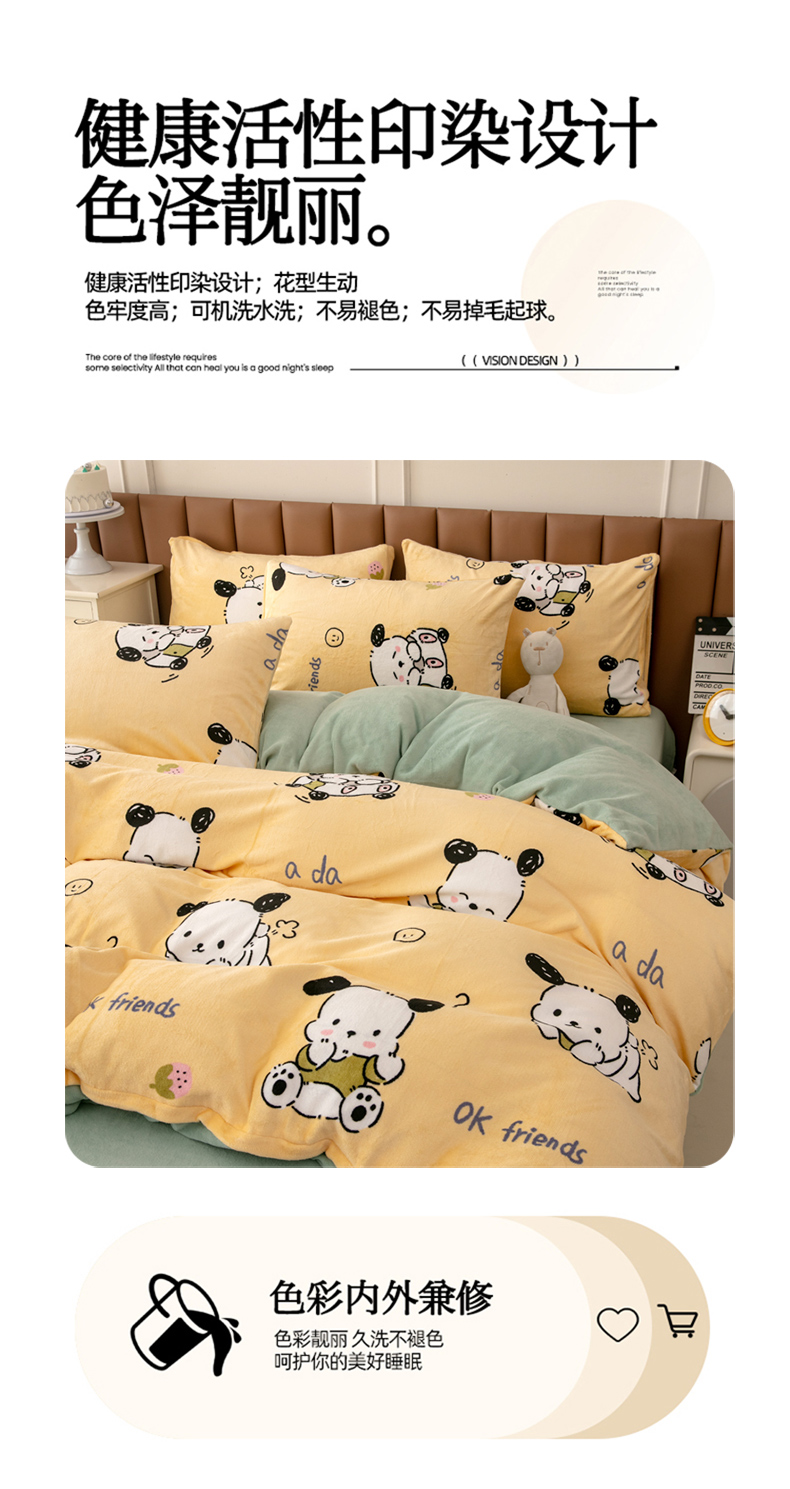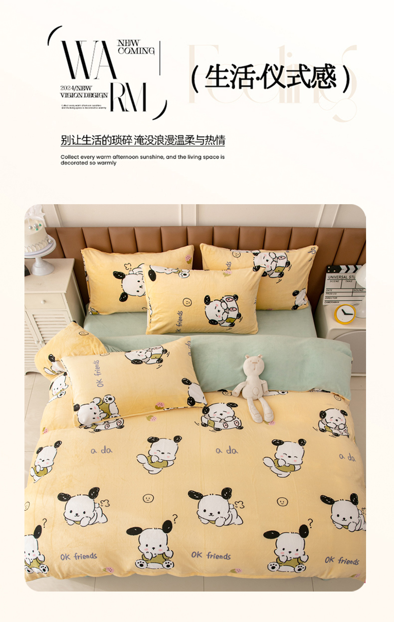 当前位置: 91家纺网 > 商品网购 > 床品套件 > 四件套 > 牛奶绒四件套 > 乐居坊 2024新款高克重牛奶绒印花保暖四件套 调皮狗
