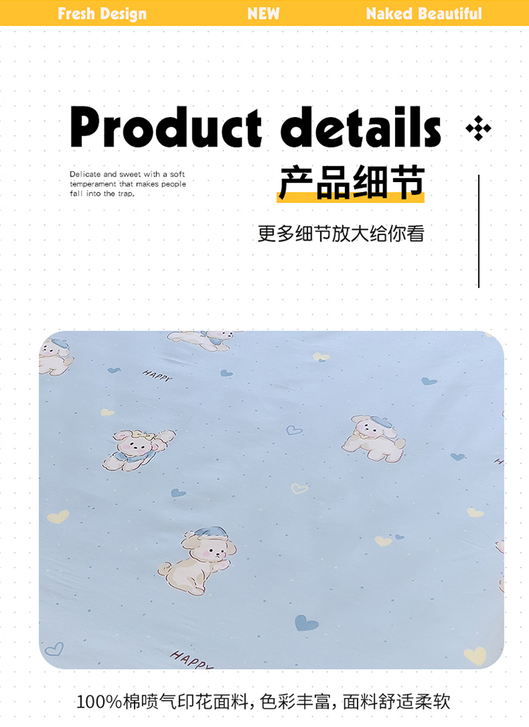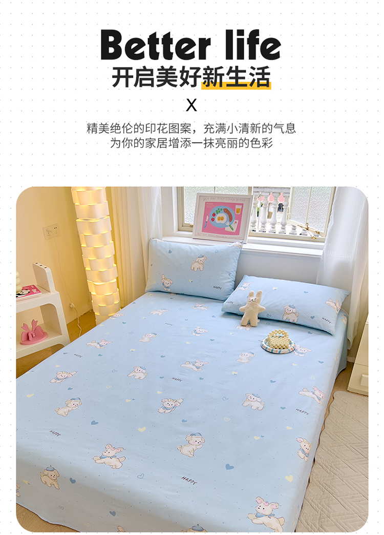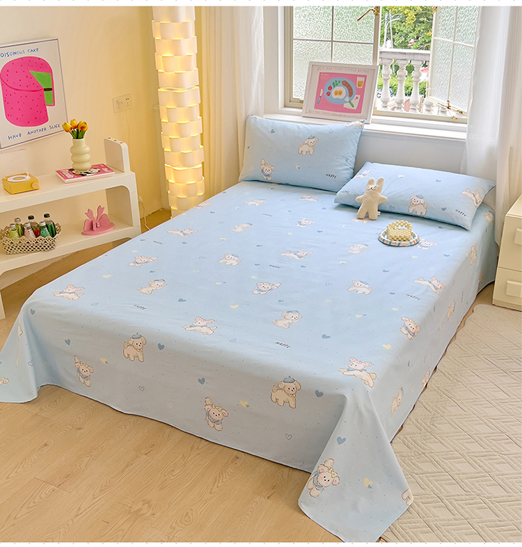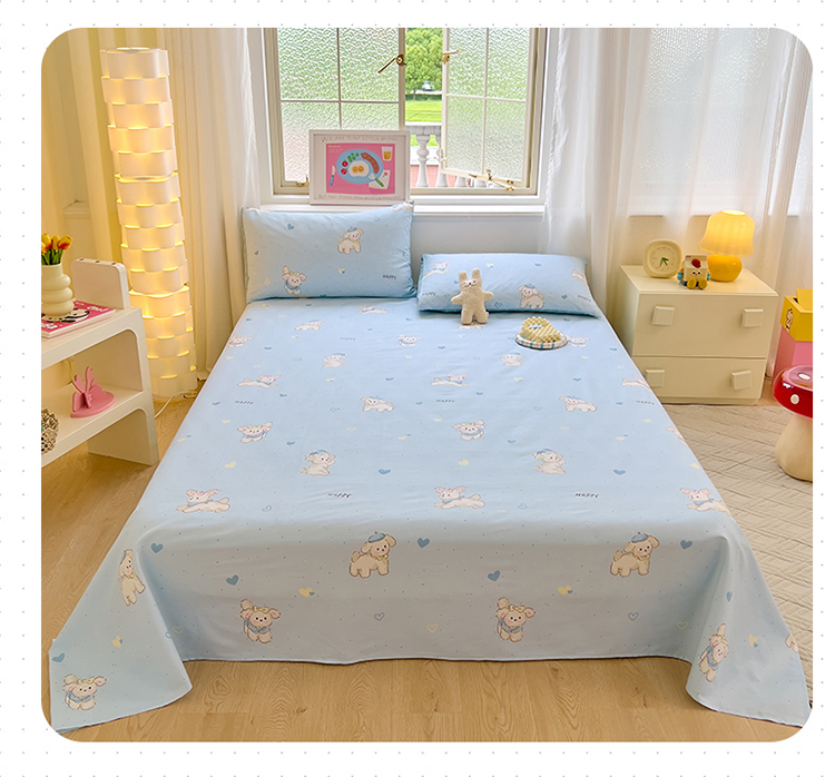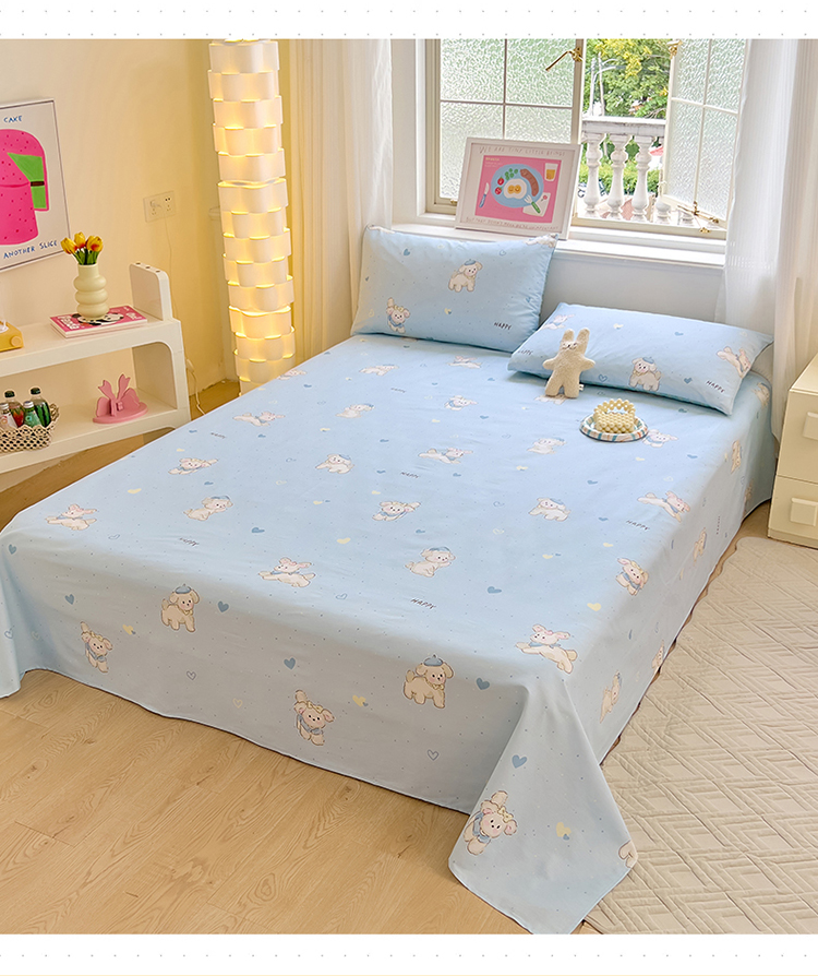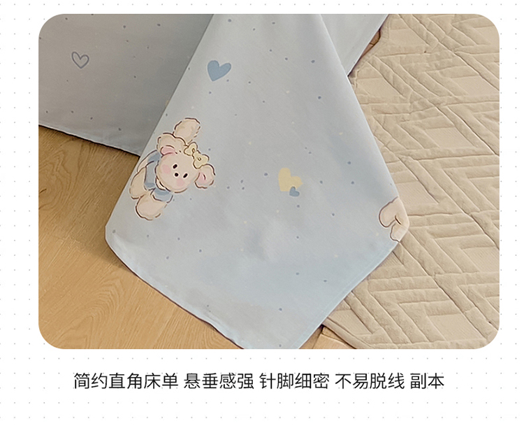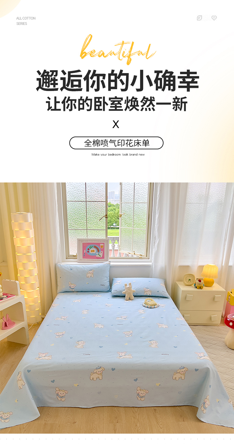 (总)拾物记 2023新款喷气全棉卡通小清新系列单床单,欢乐萌熊,奶油兔-红