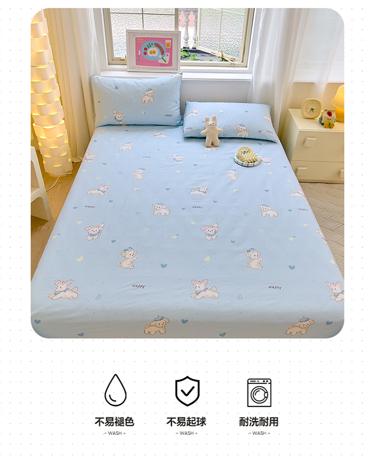(总)拾物记 2023新款喷气全棉卡通小清新系列单床笠,欢乐萌熊,奶油兔-红