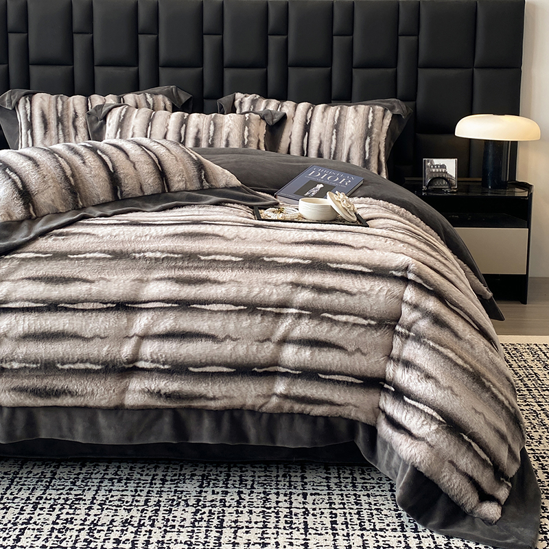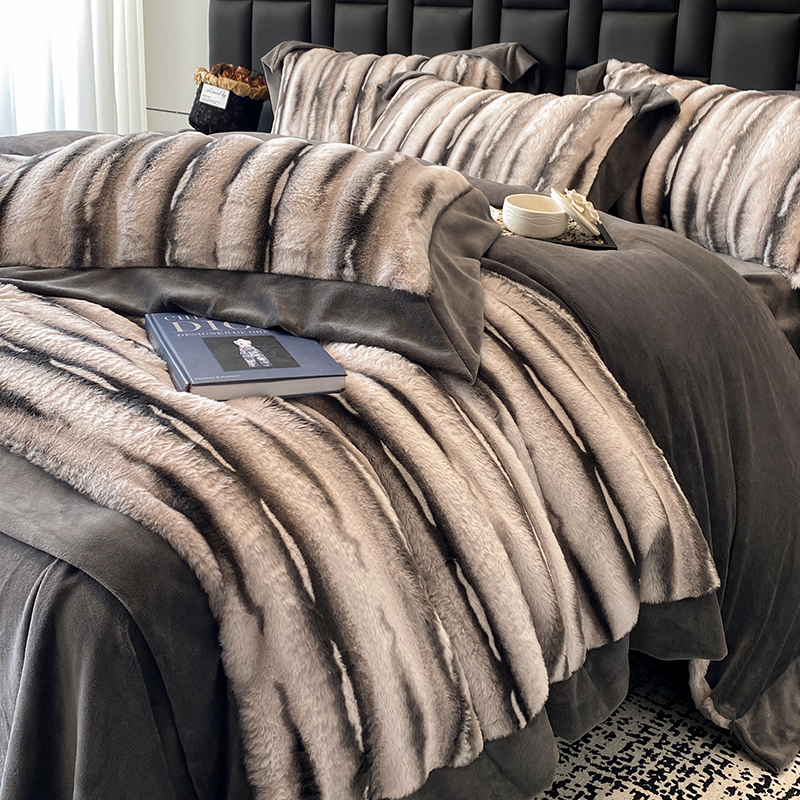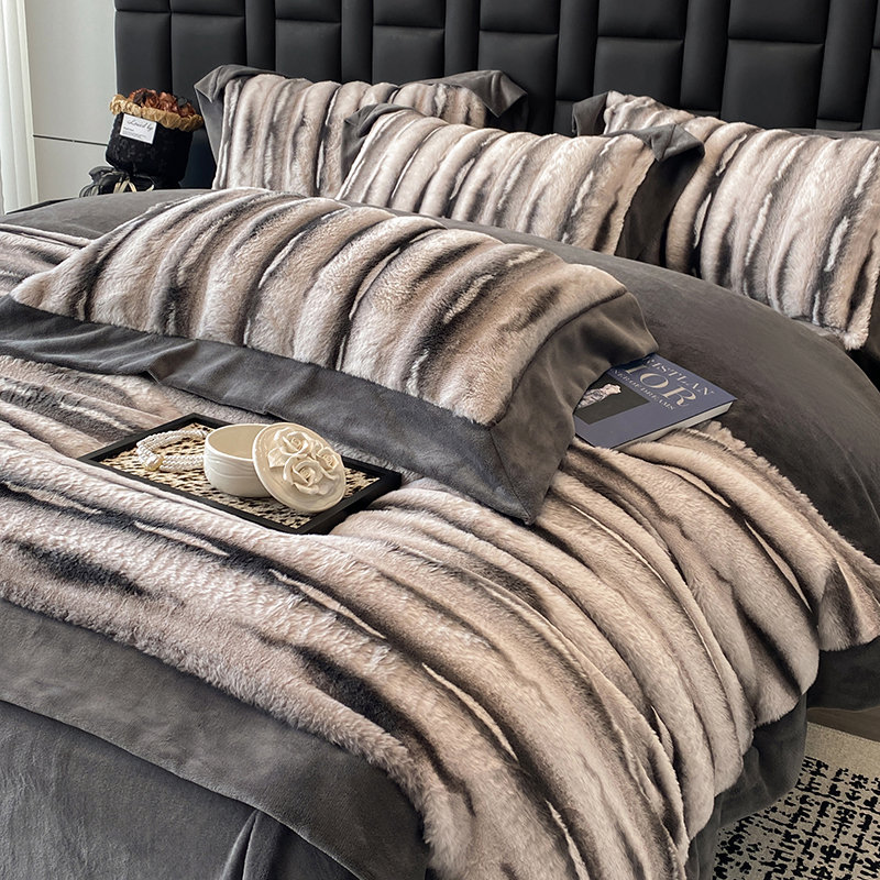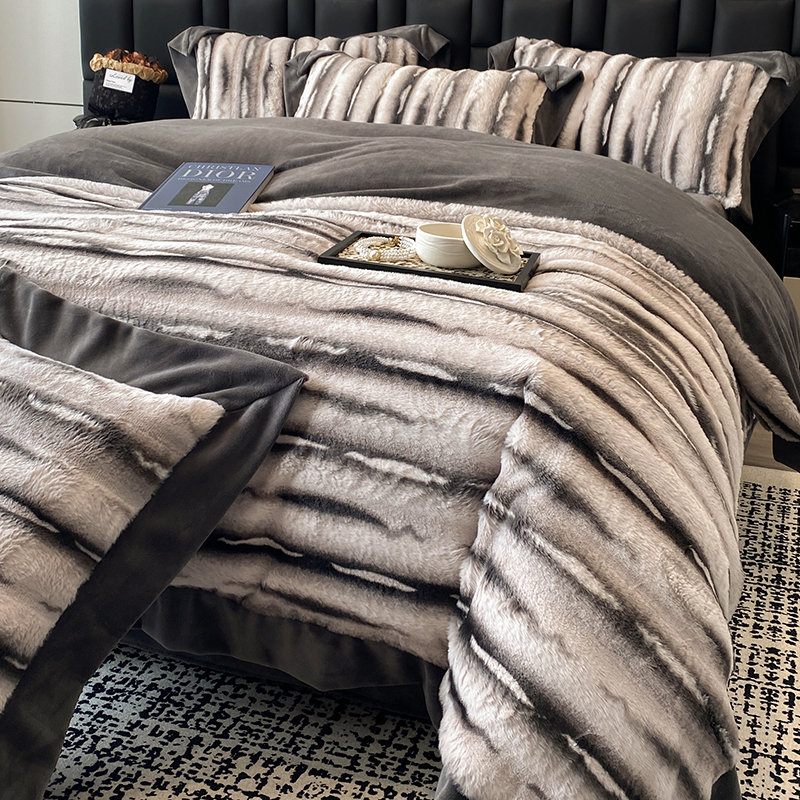 商品名称:若未家居 LOVEWE HOUSE 2025秋冬皮草套件A版500克丹麦貂B版240克全消光牛奶绒高端四件套伊芙劳伦 伊夫劳伦-岩灰