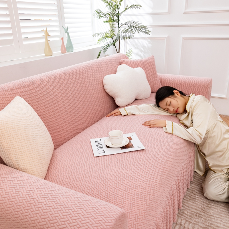 沐沐家纺 2026新款摇粒绒裙边沙发套 少女粉