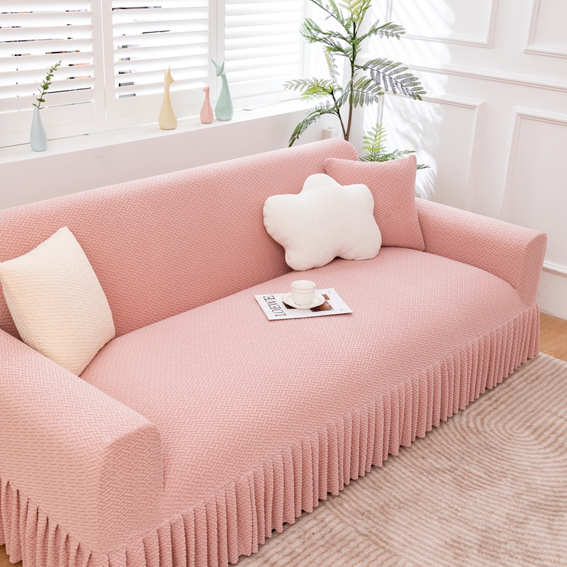 商品名称:沐沐家纺 2026新款摇粒绒裙边沙发套 少女粉