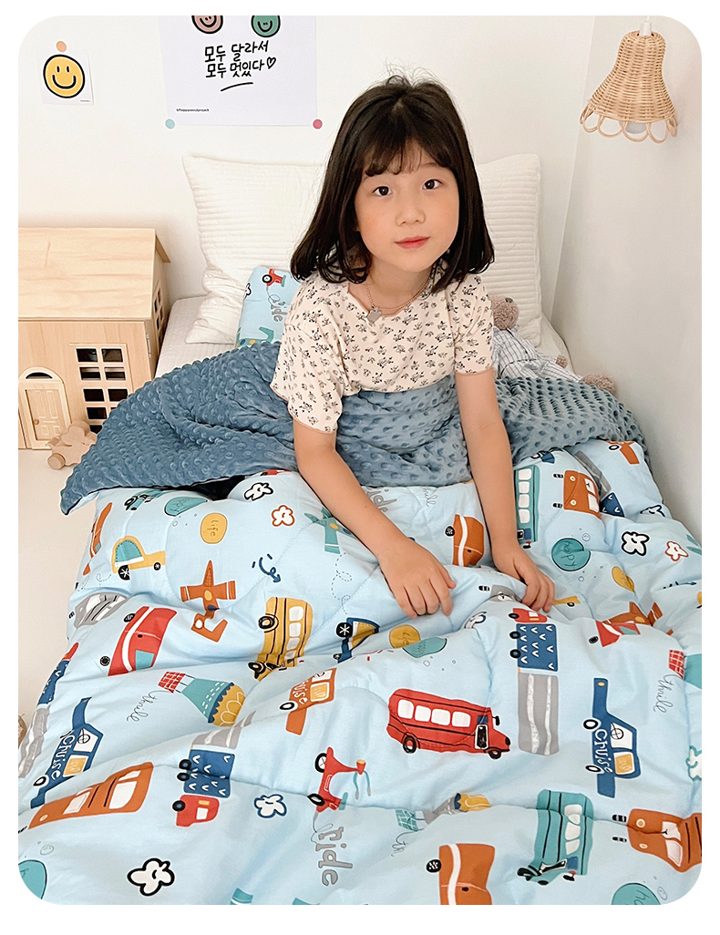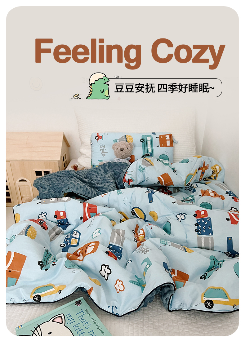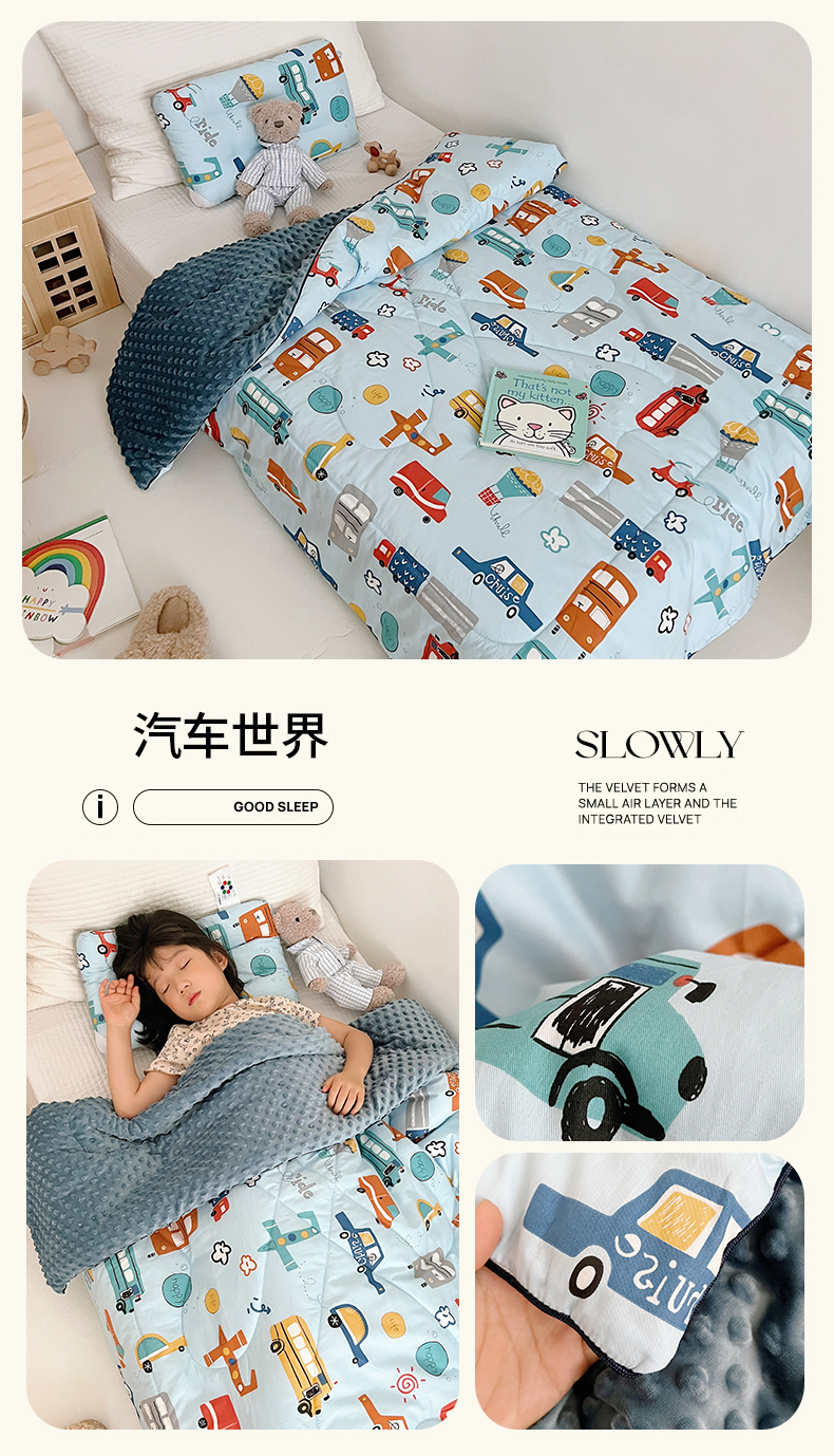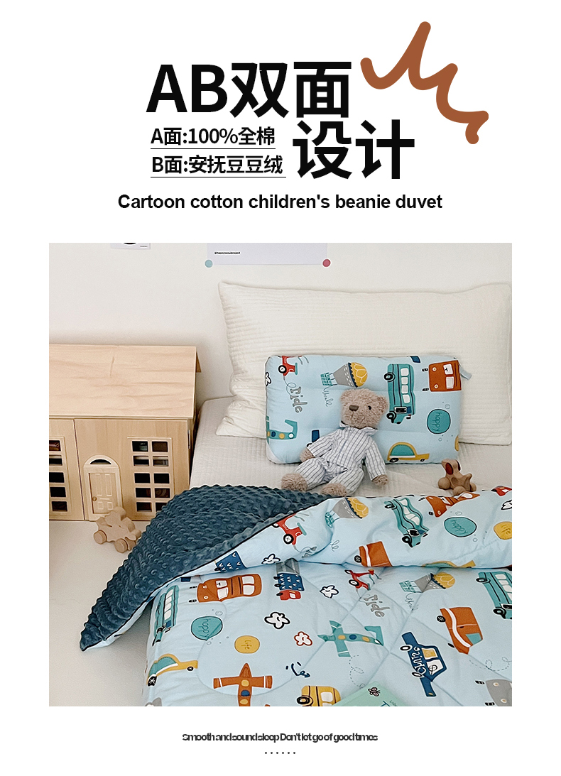 吉咪兔 24年新款幼儿园卡通全棉豆豆被冬季纯棉儿童豆豆毯加厚棉被安抚秋冬宝宝被子 汽车世界