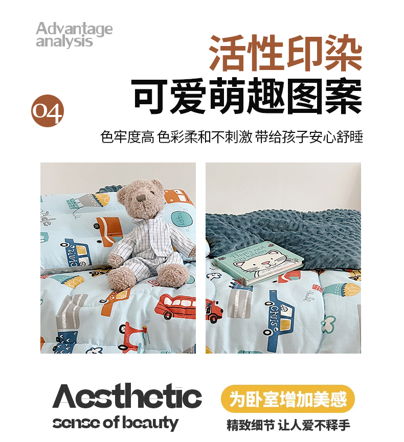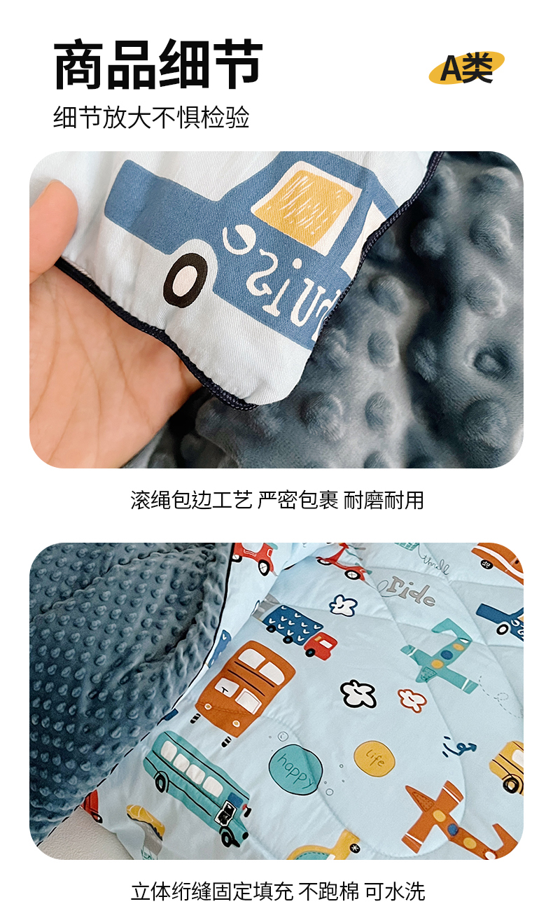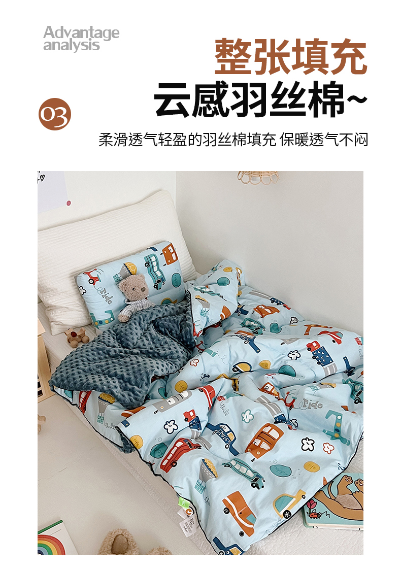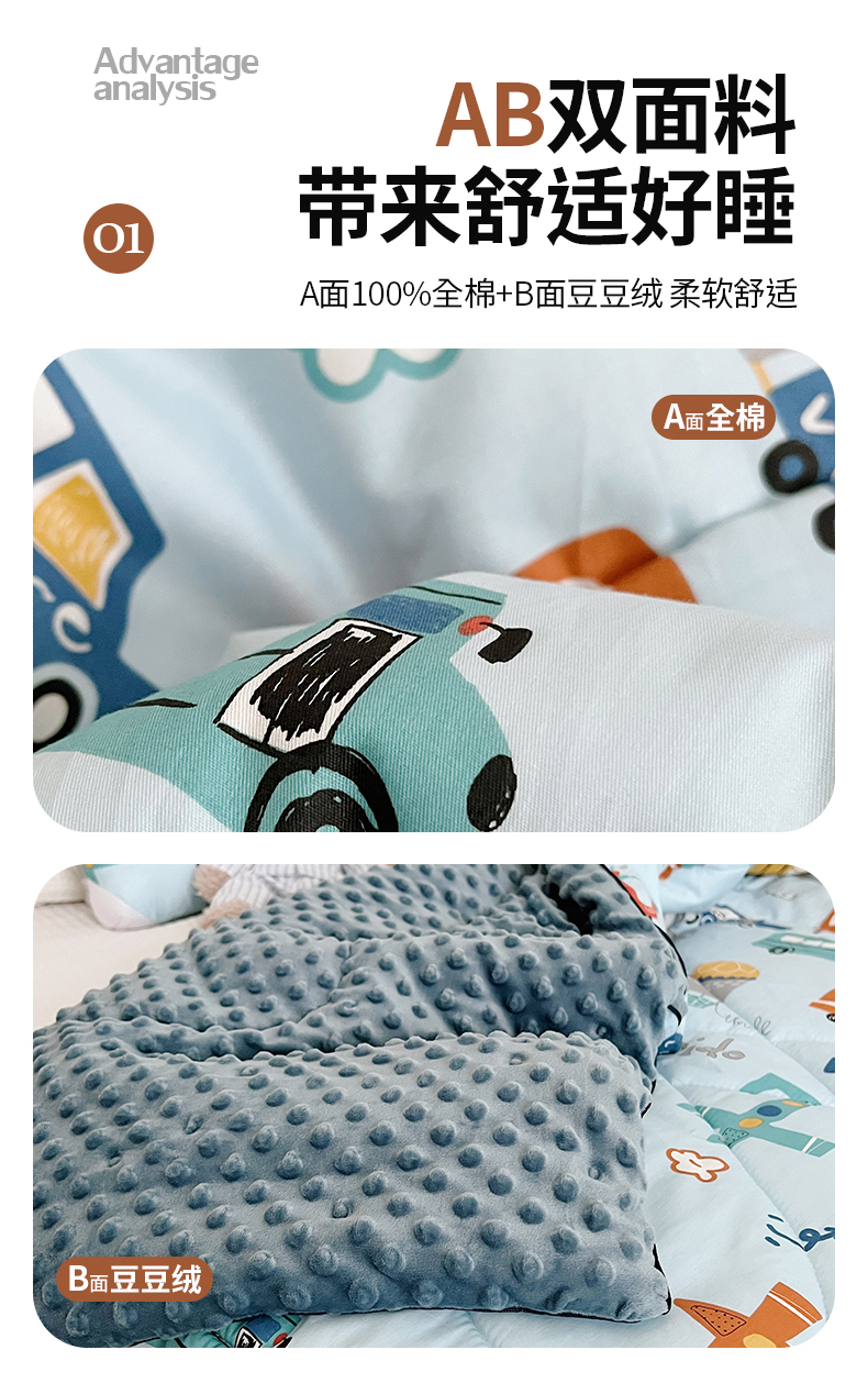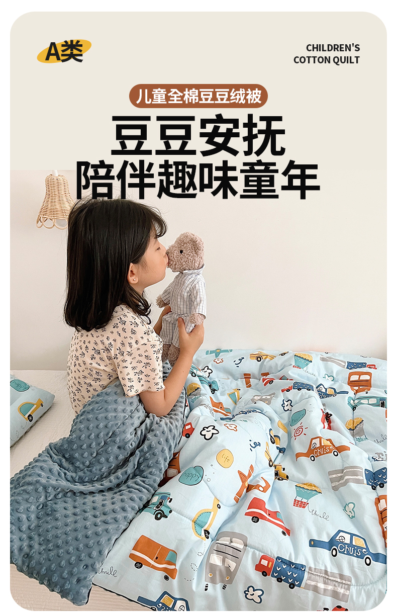 商品名称:吉咪兔 24年新款幼儿园卡通全棉豆豆被冬季纯棉儿童豆豆毯加厚棉被安抚秋冬宝宝被子 汽车世界