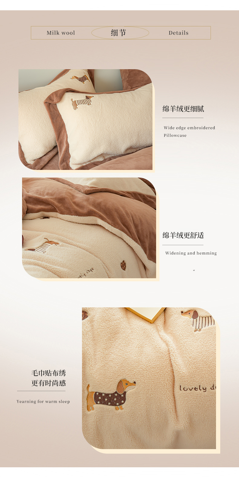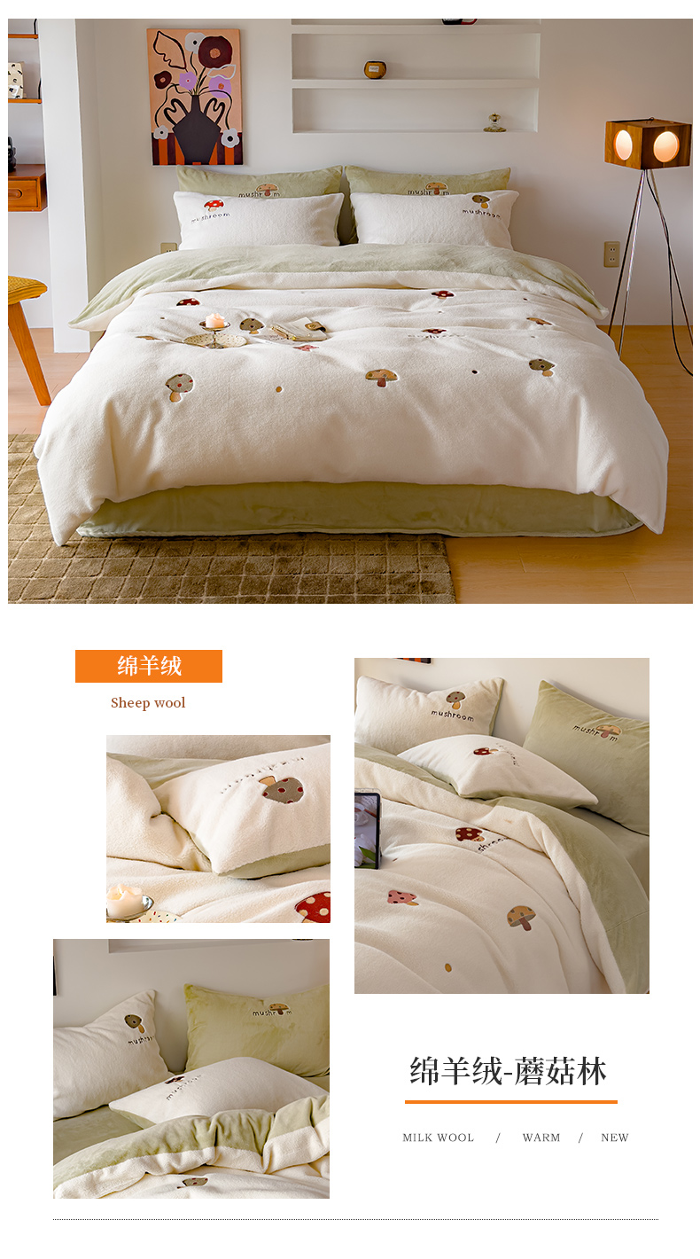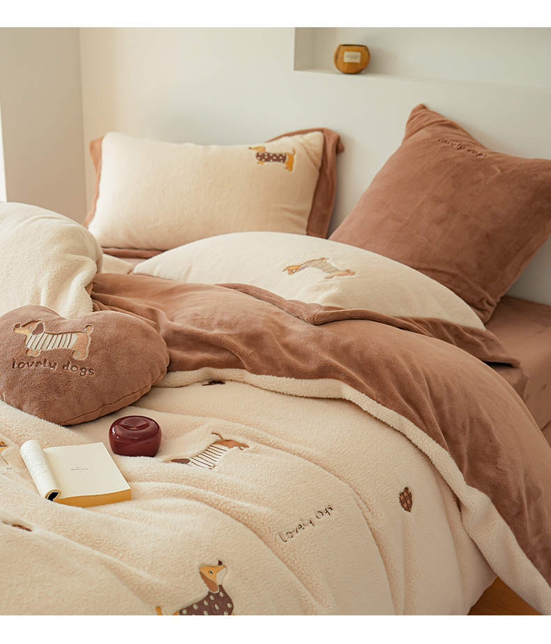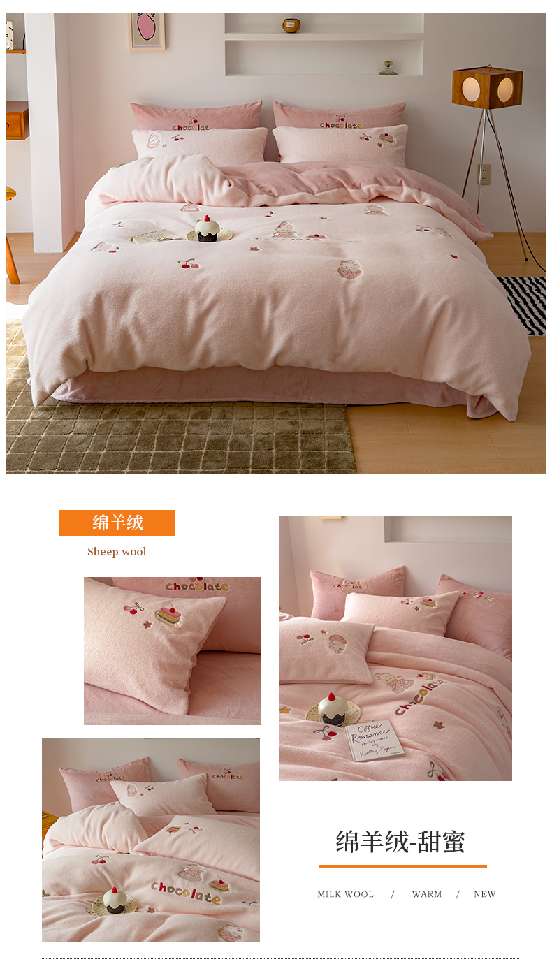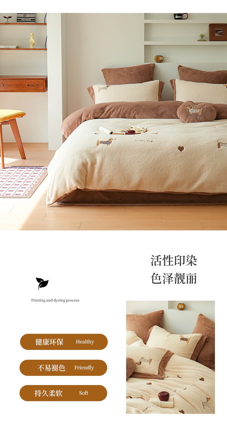 商品名称:(总)沐晴家纺 2024秋冬新品高克重牛奶绒拼色毛巾绣卡通绣花款绵羊绒四件套