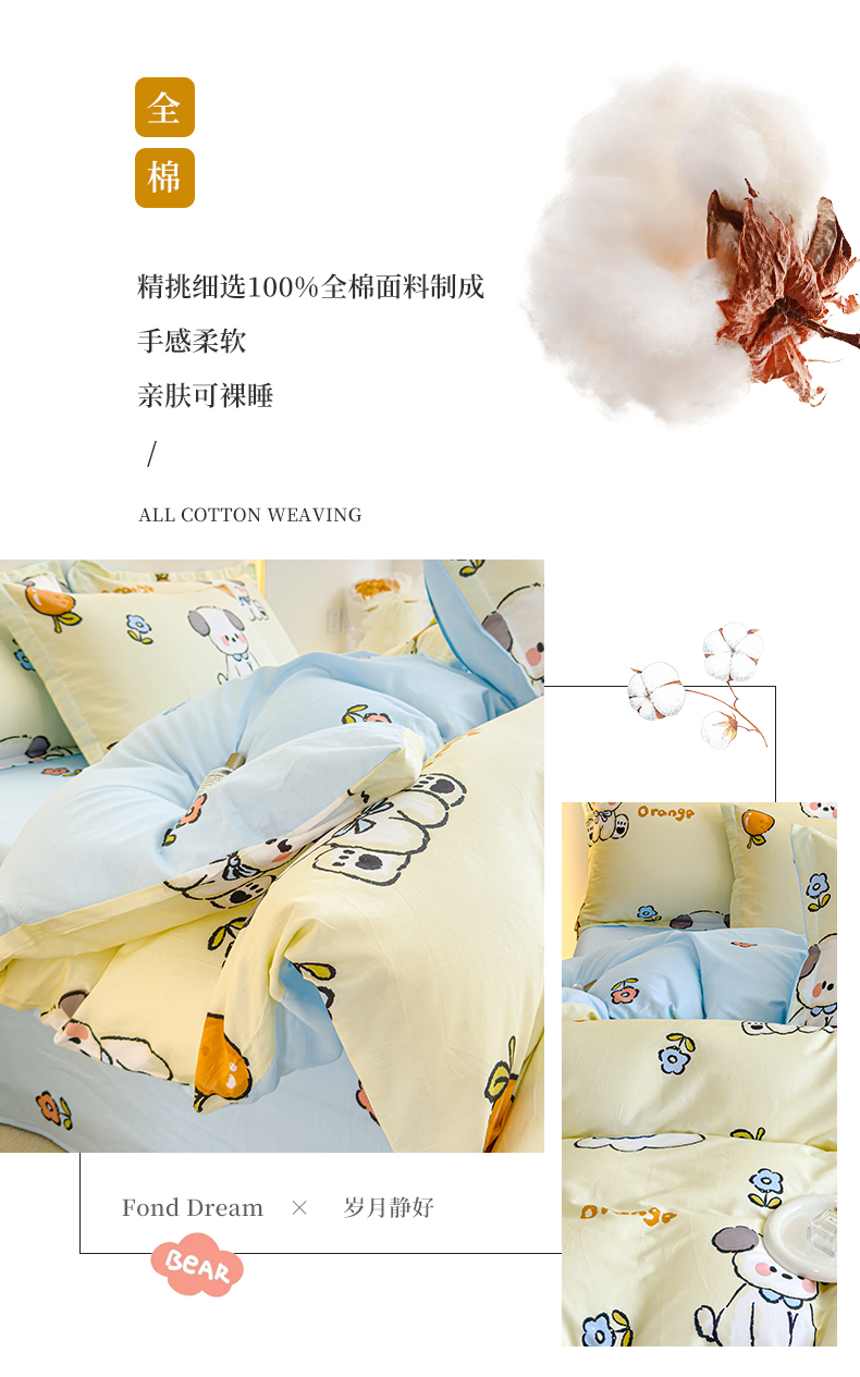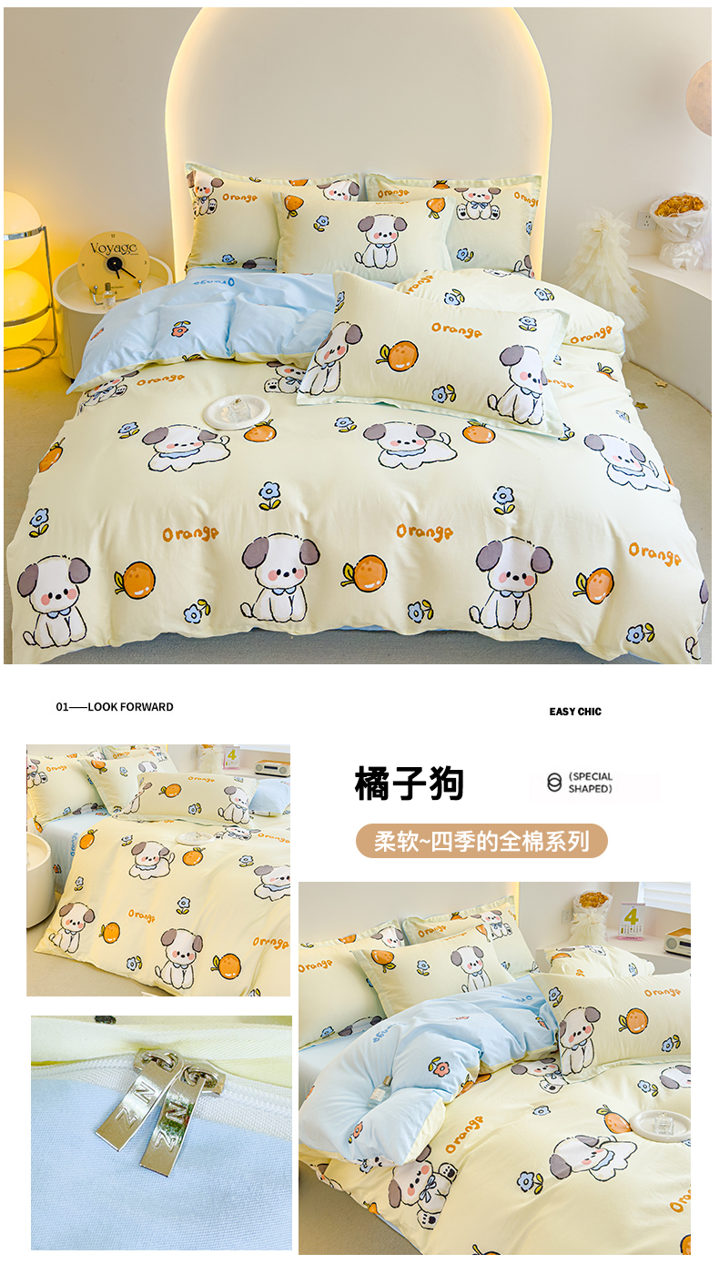 商品名称:恩泽 2024新款ins风全棉四件套橘子狗