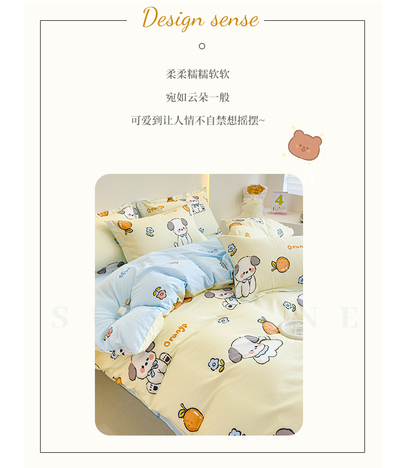 恩泽 2024新款ins风全棉四件套橘子狗