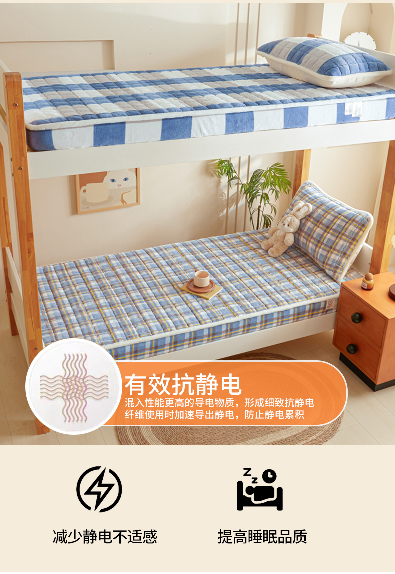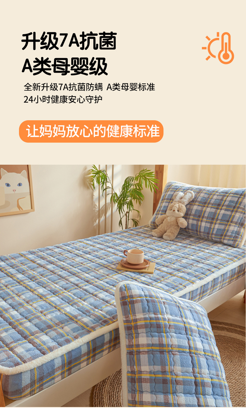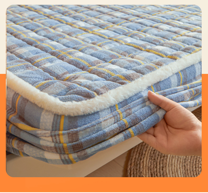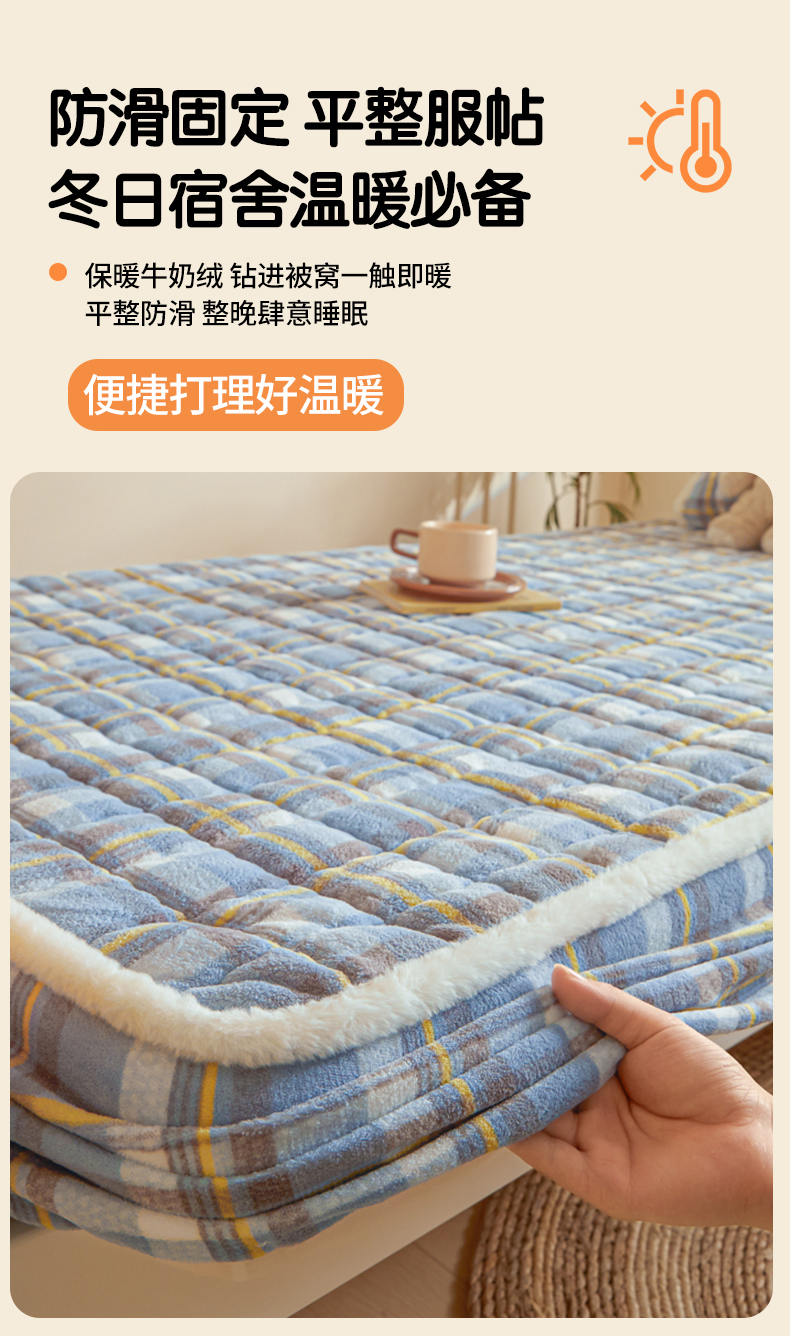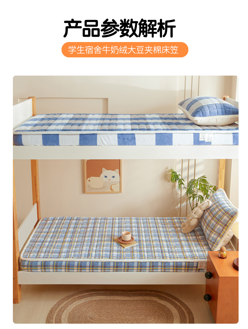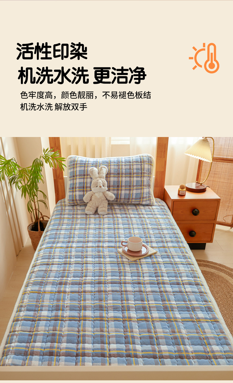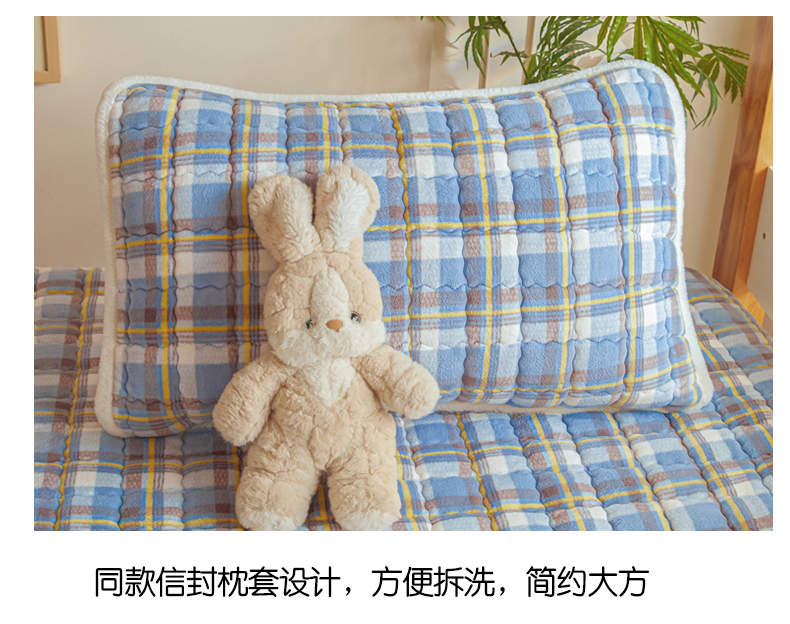 • 91家纺网 家纺一手货源 找家纺 鑫钰 2024新款秋冬季学生宿舍专用加厚牛奶绒床笠-暖格 暖格-简希蓝