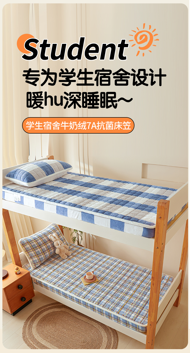 鑫钰 2024新款秋冬季学生宿舍专用加厚牛奶绒床笠-暖格 暖格-简希蓝