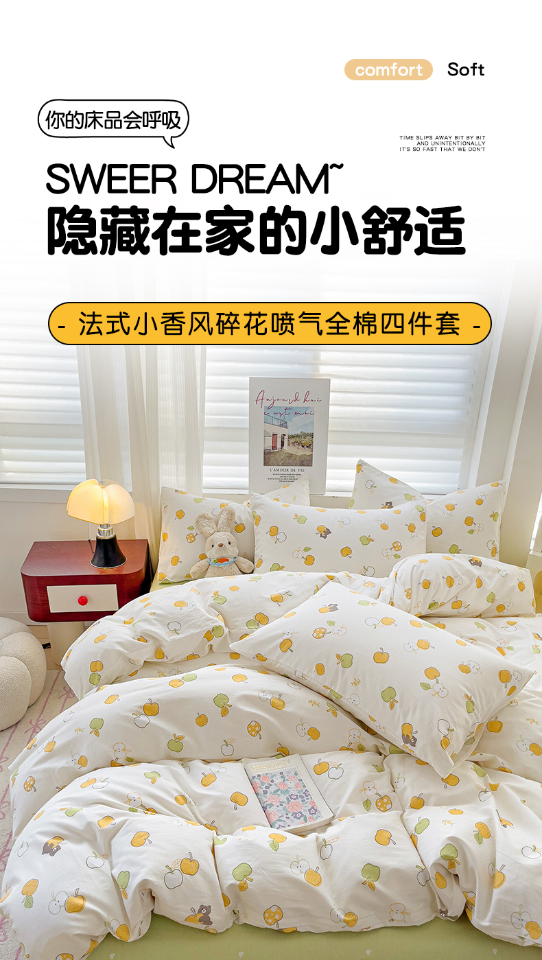 当前位置: 91家纺网 > 商品网购 > 床品套件 > 四件套 > 全棉普通四件套 > 卡普家居 2025新款法式全棉小香风碎花四件套-实景拍摄 夏日甜果