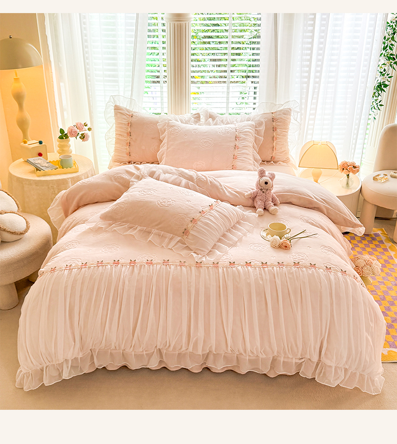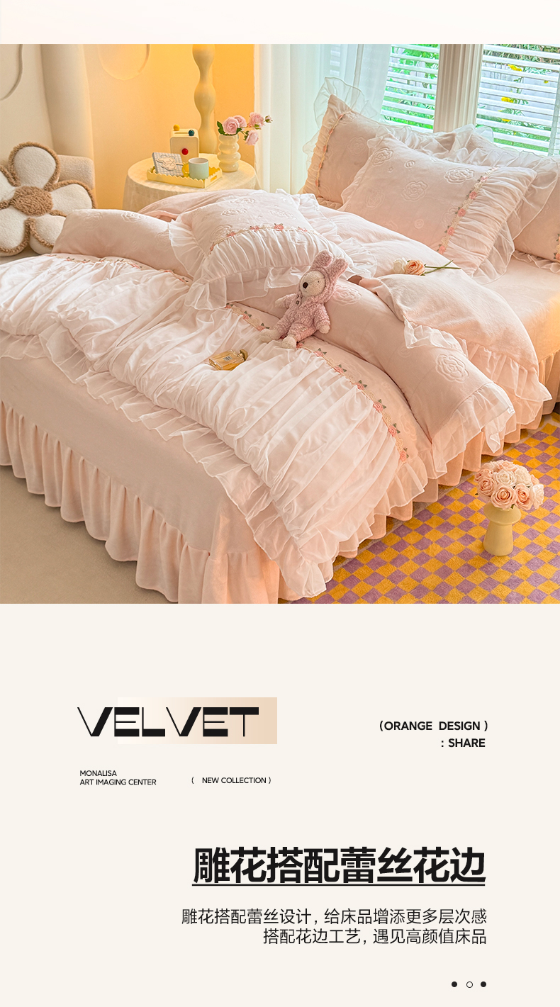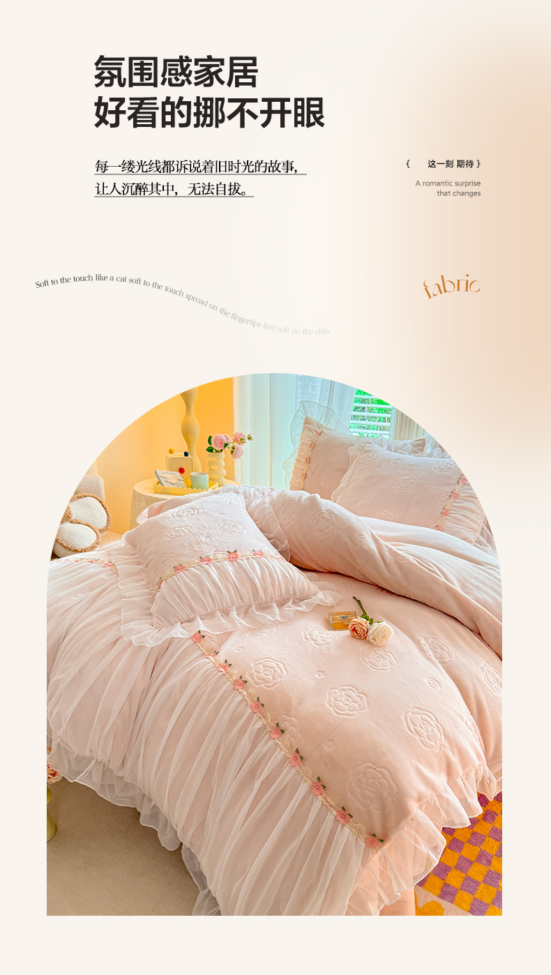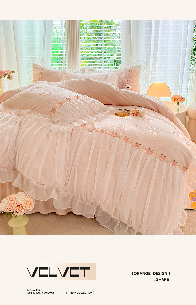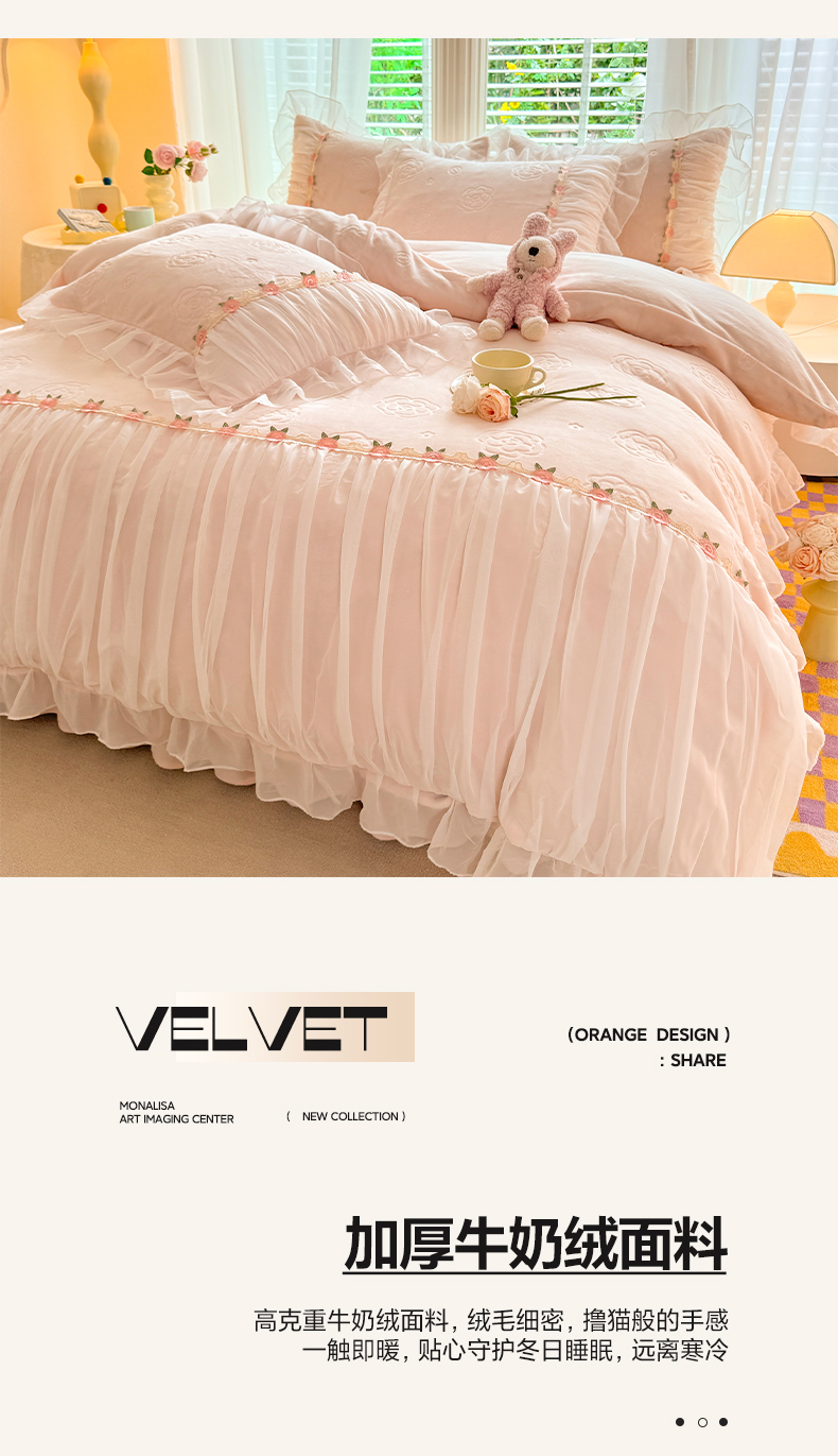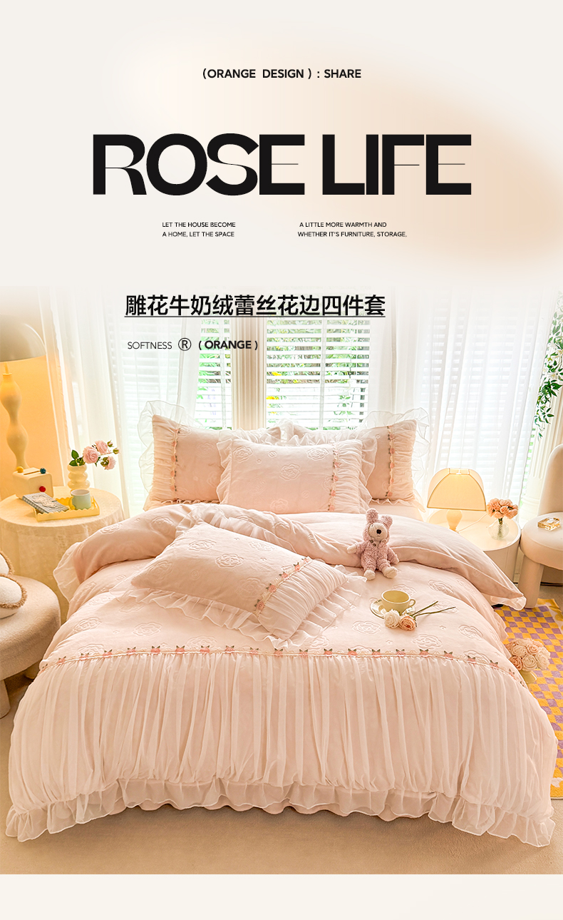 当前位置: 91家纺网 > 商品网购 > 床品套件 > 四件套 > 牛奶绒四件套 > 逸尚阁 2024新款雕花牛奶绒蕾丝花边四件套-维密 绒维密-浅玉