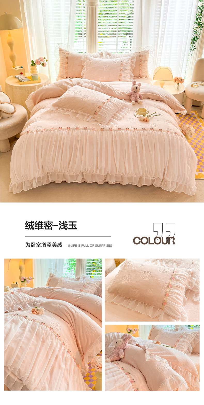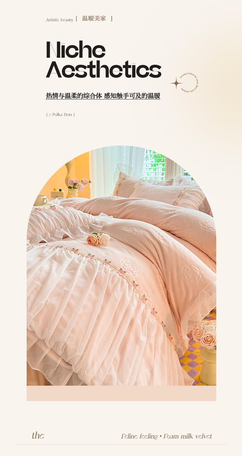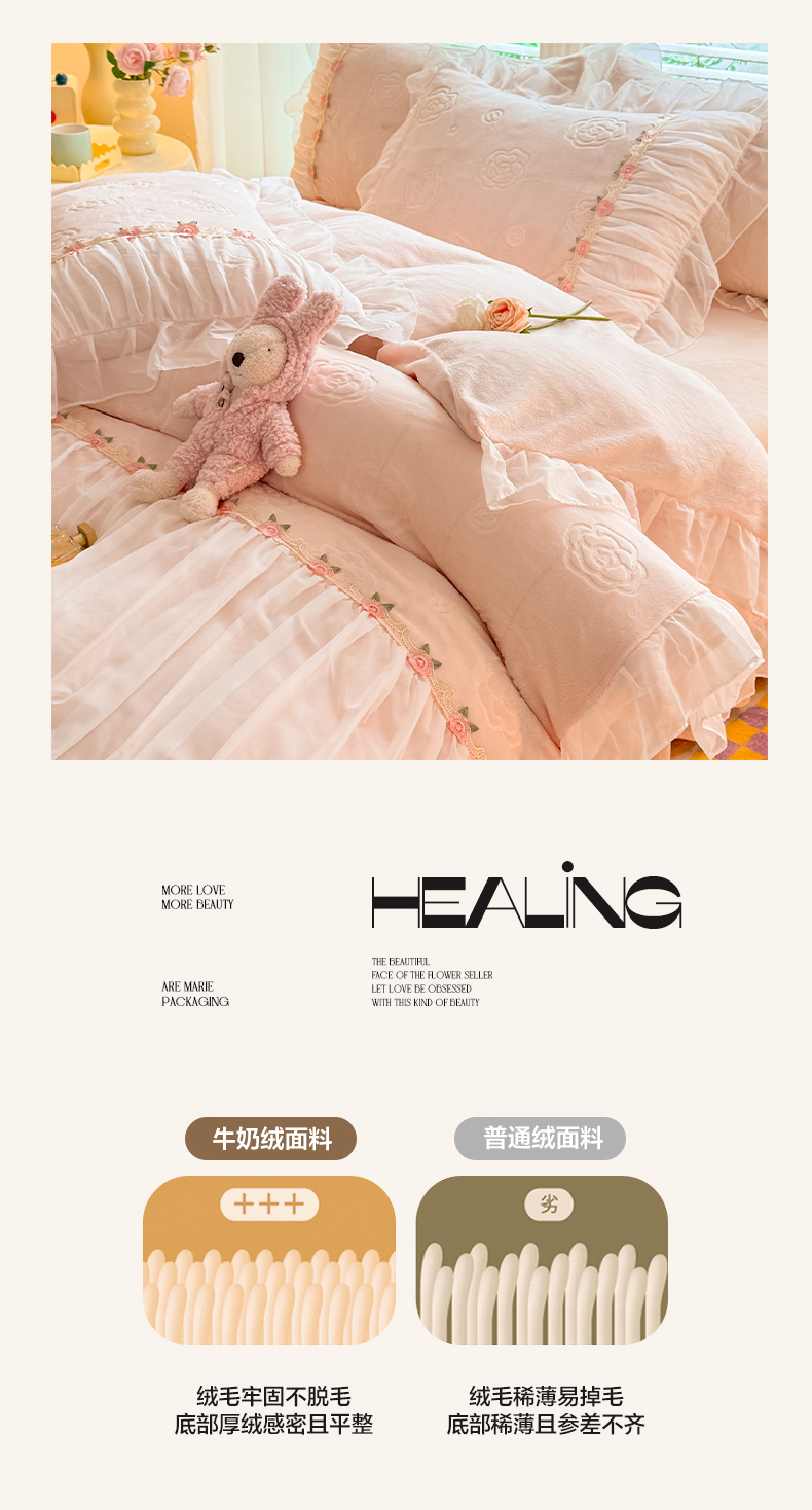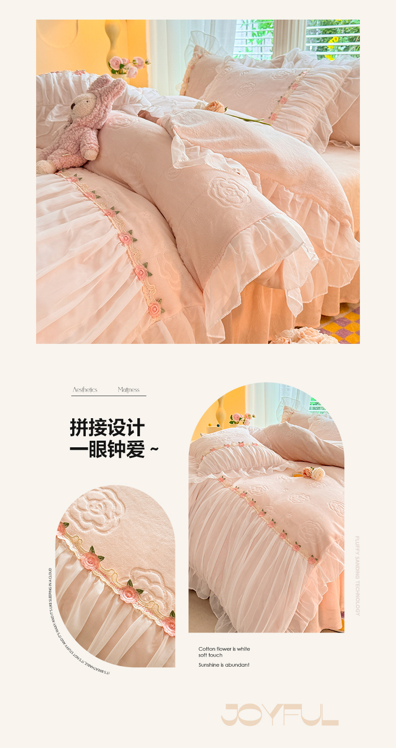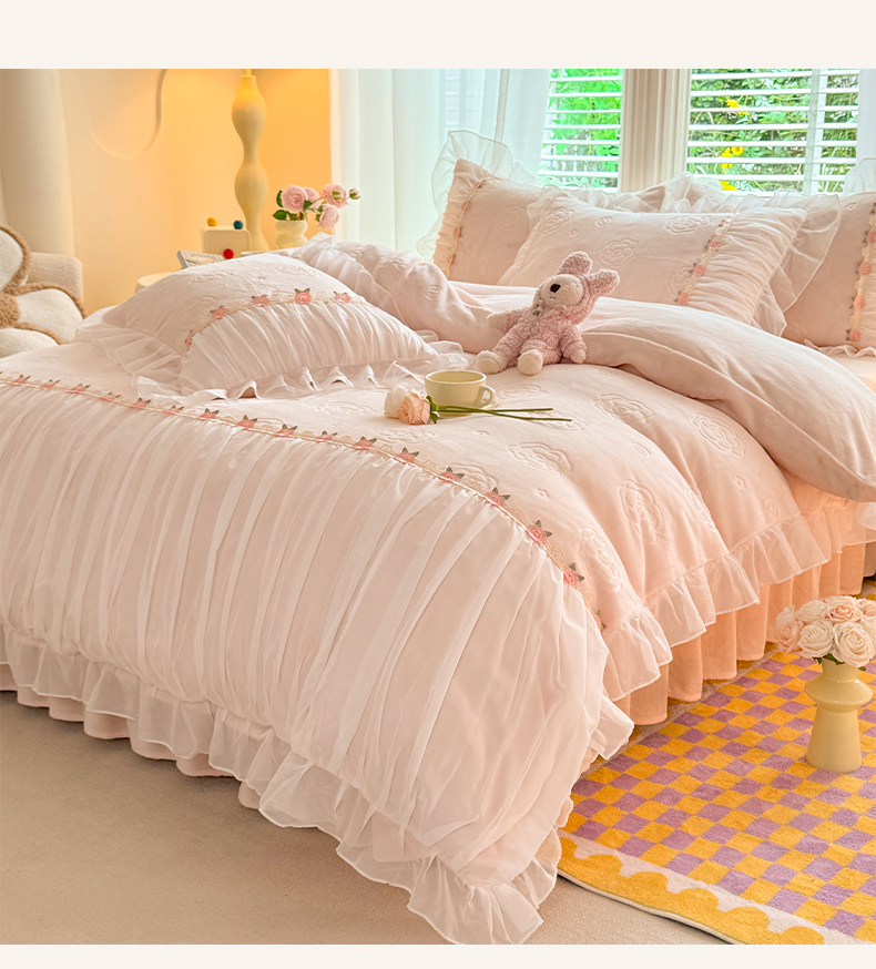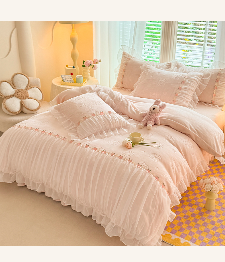 当前位置: 91家纺网 > 商品网购 > 床品套件 > 四件套 > 牛奶绒四件套 > 逸尚阁 2024新款雕花牛奶绒蕾丝花边四件套-维密 绒维密-浅玉