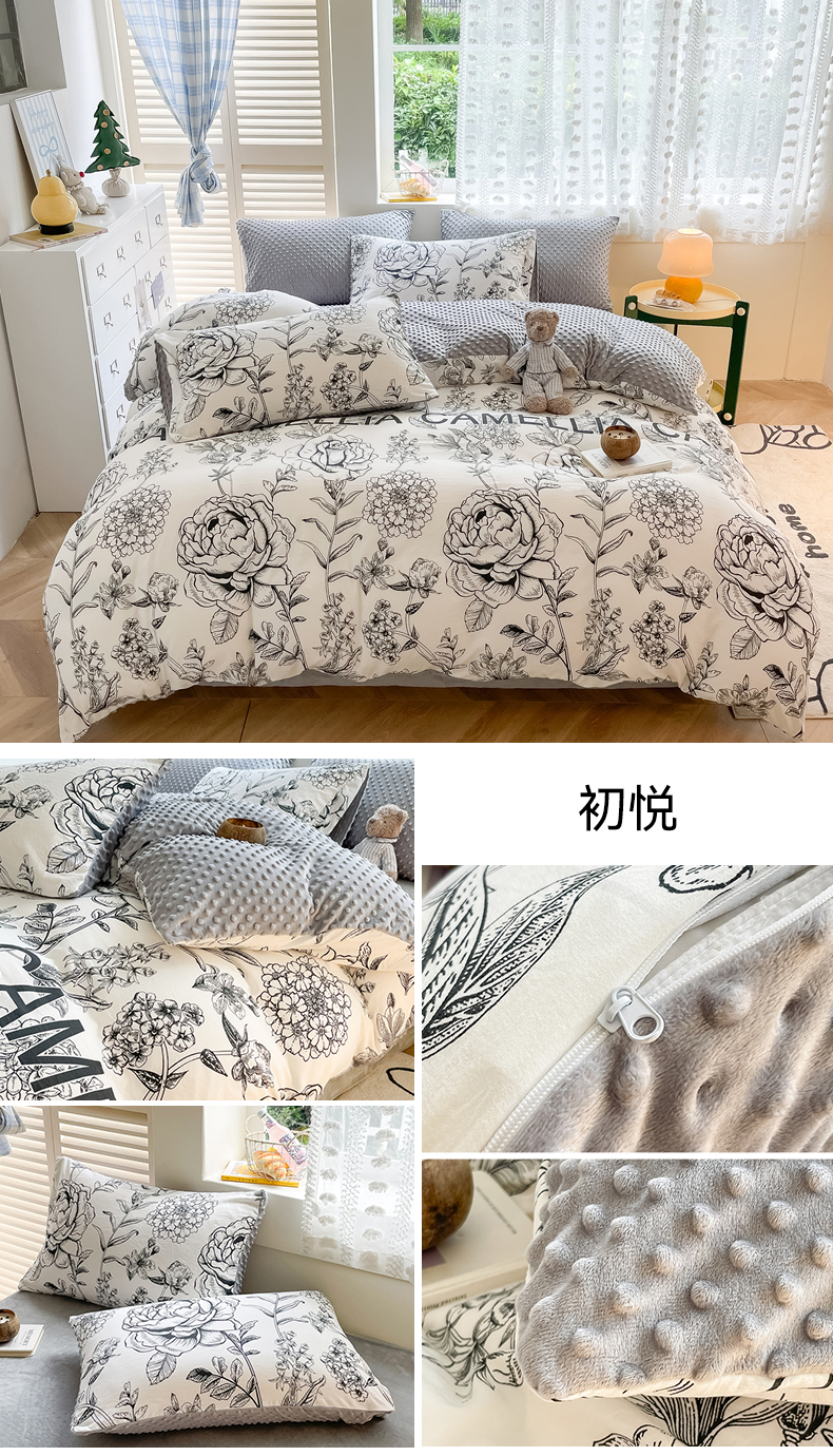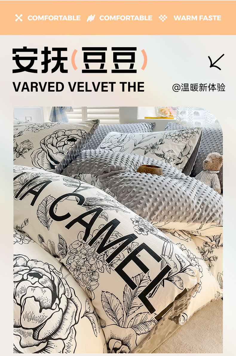 商品名称:佰亿莱 2024新款豆豆绒四件套 初悦