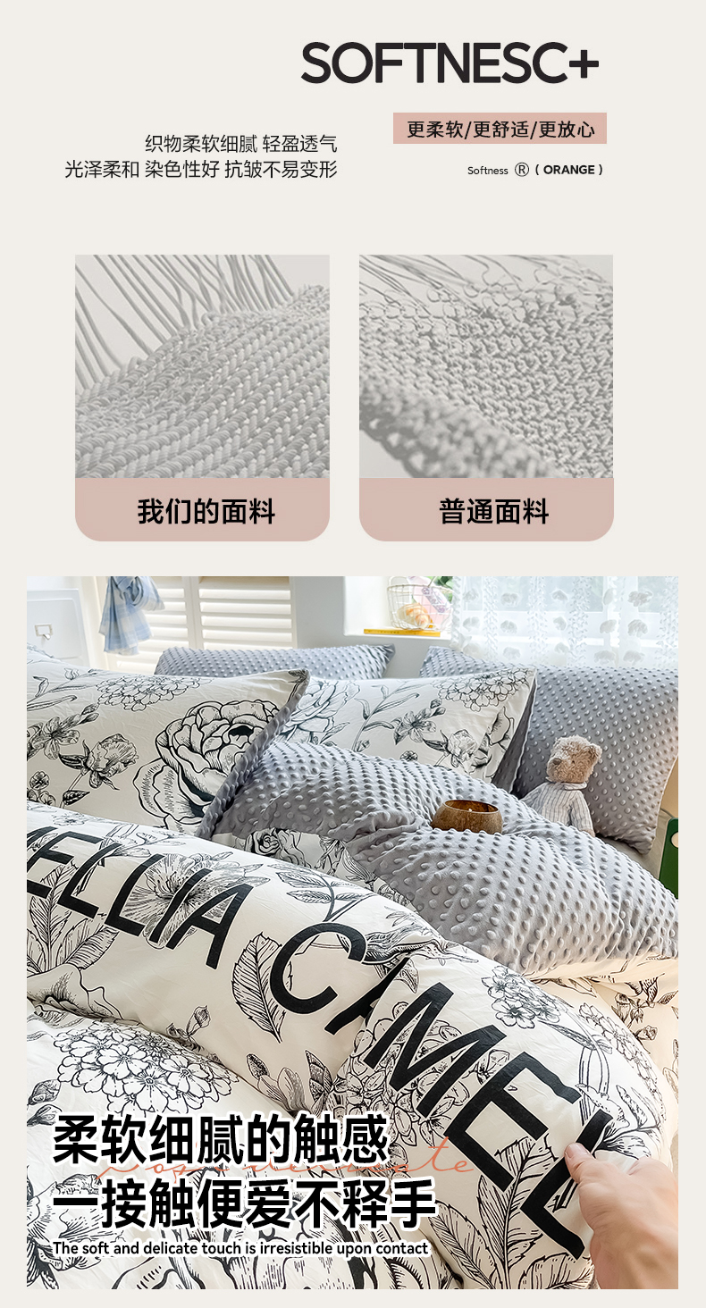 (总)佰亿莱 2024直播新款小清新印花全棉加厚磨毛四件套,爱心格,波浪兔,花萌,花园兔,咖啡熊,萌萌狗,时尚花季,时尚恐龙,田园花,郁金香