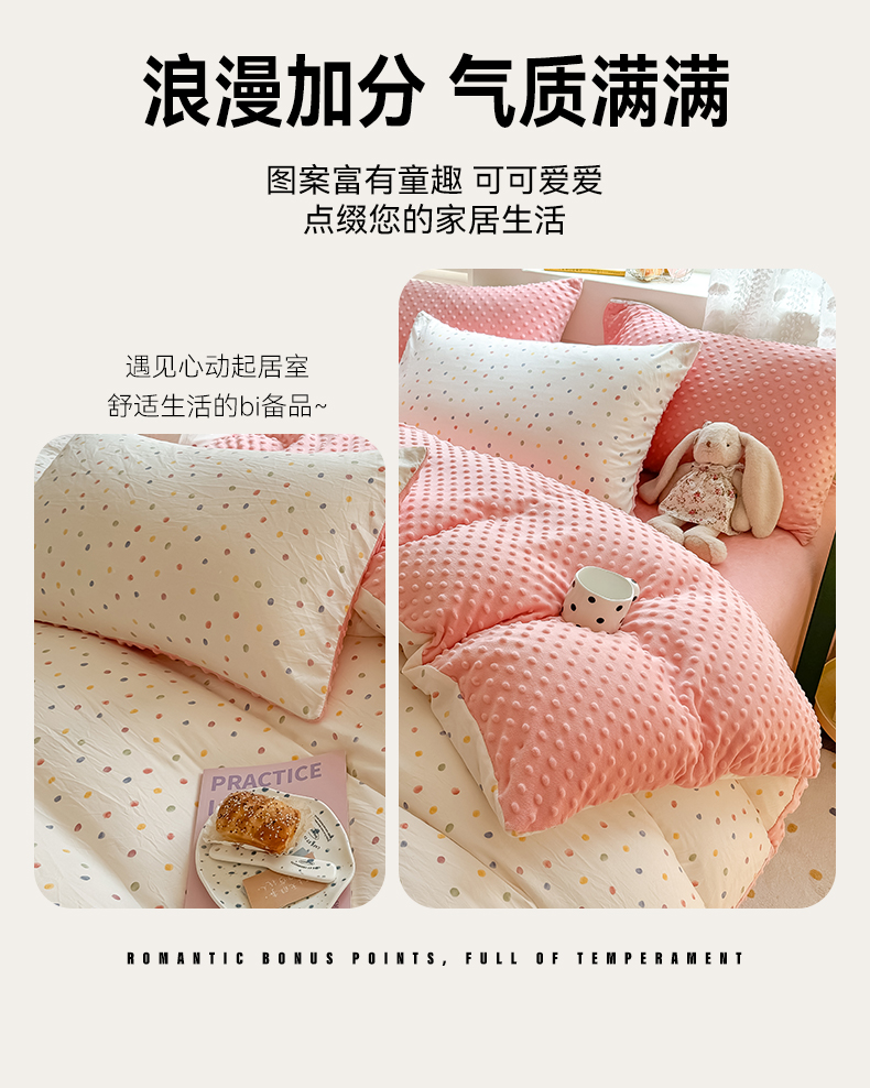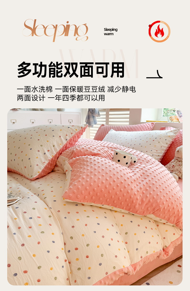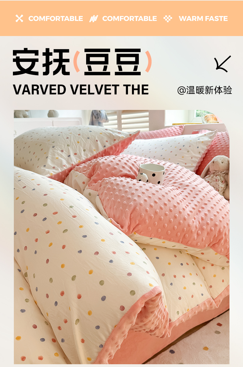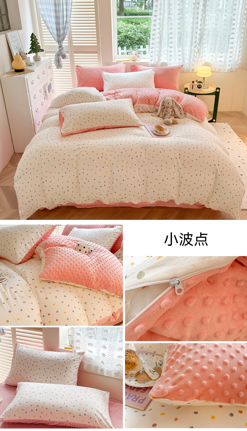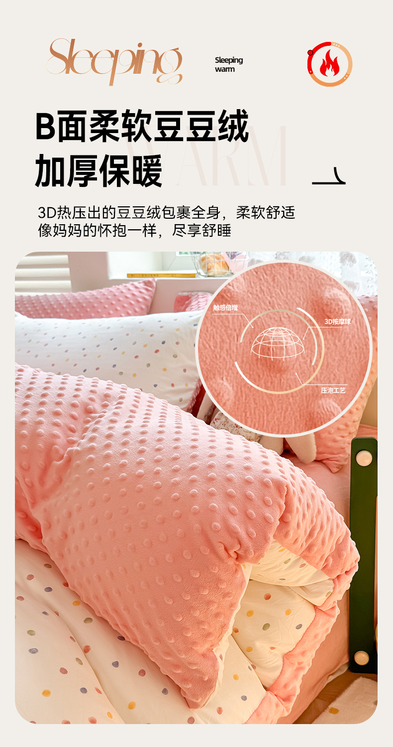 佰亿莱 2024新款豆豆绒四件套 小波点