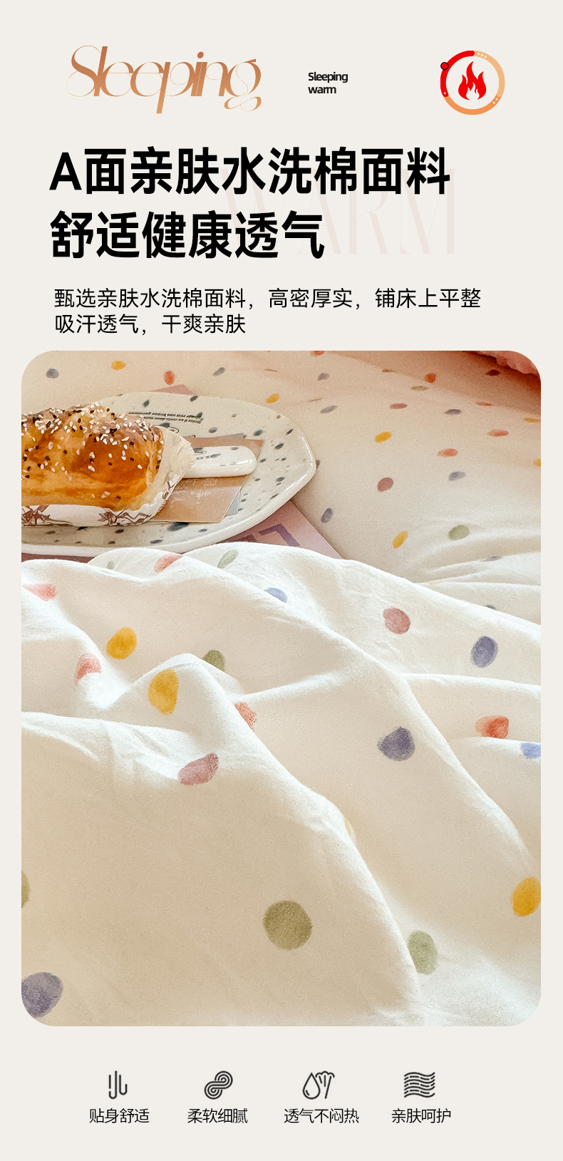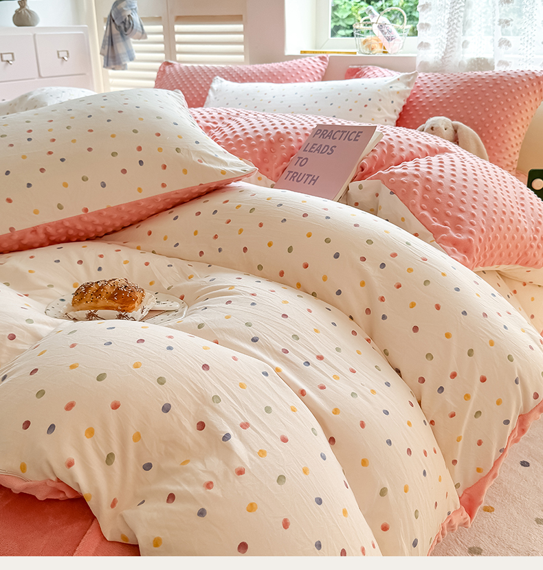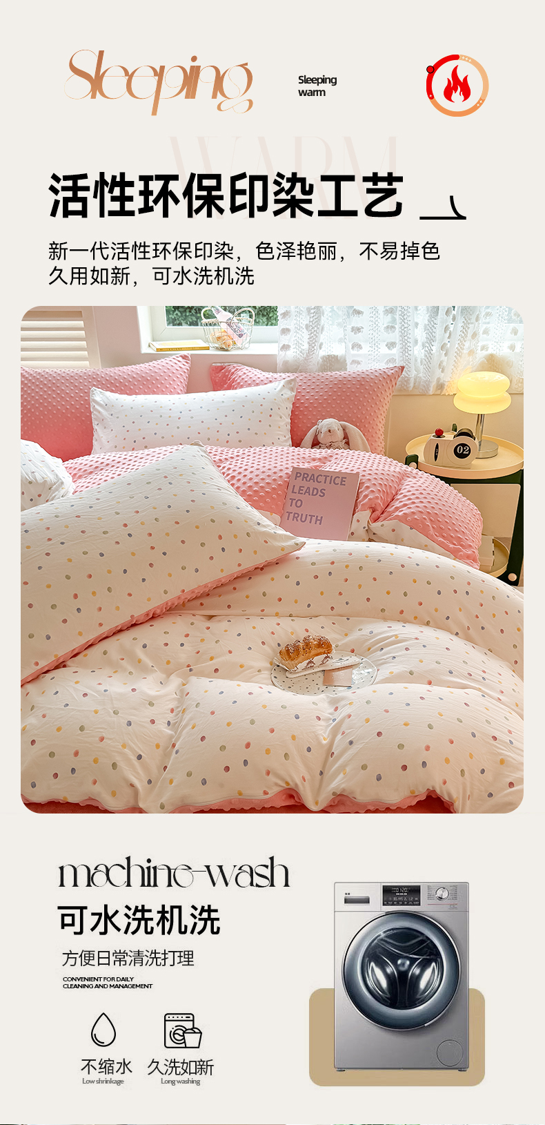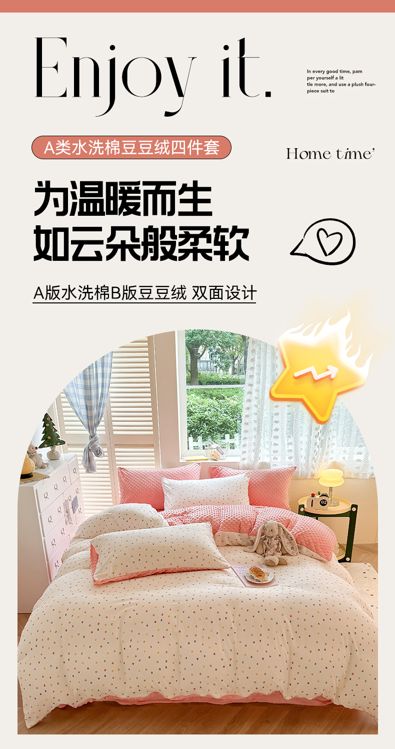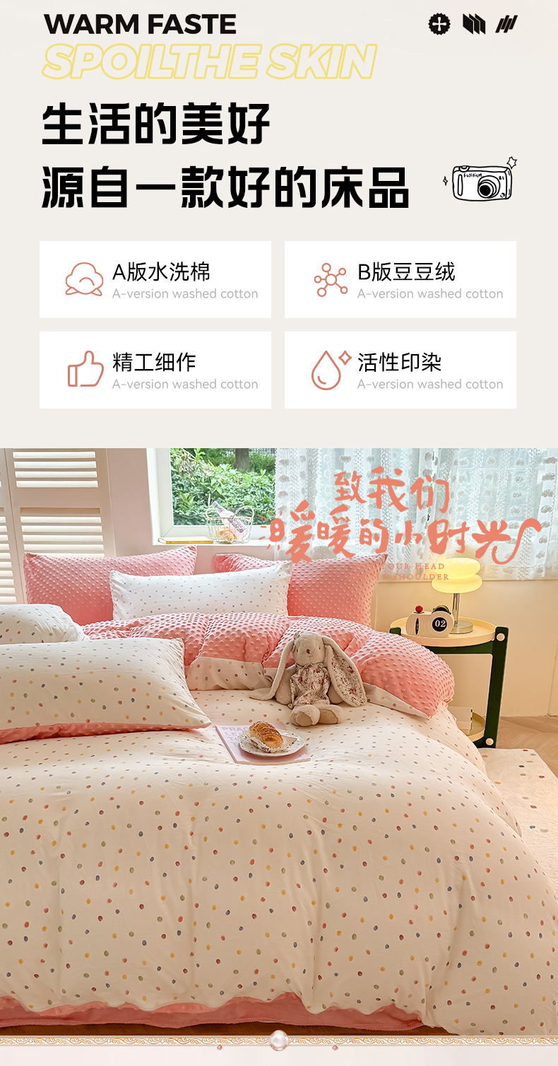佰亿莱 2024新款豆豆绒四件套 小波点