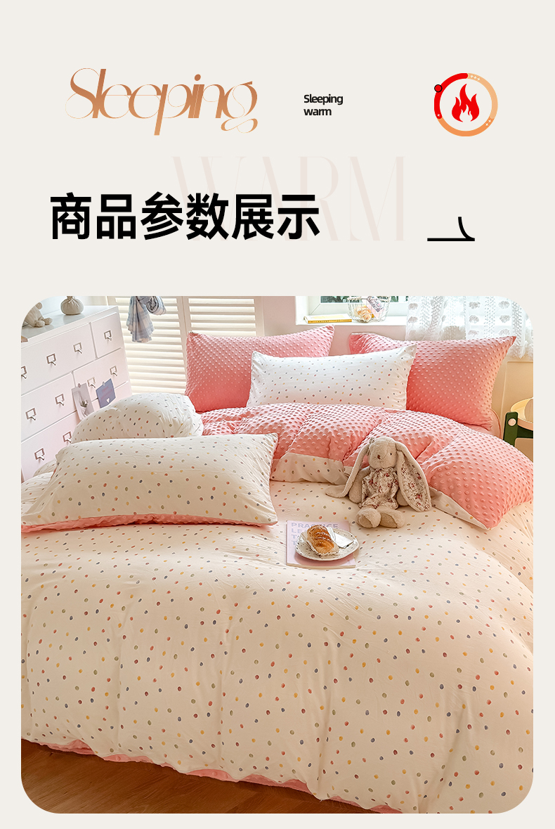 商品名称:佰亿莱 2024新款豆豆绒四件套 小波点
