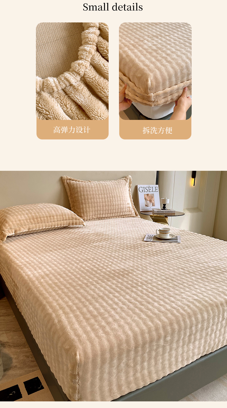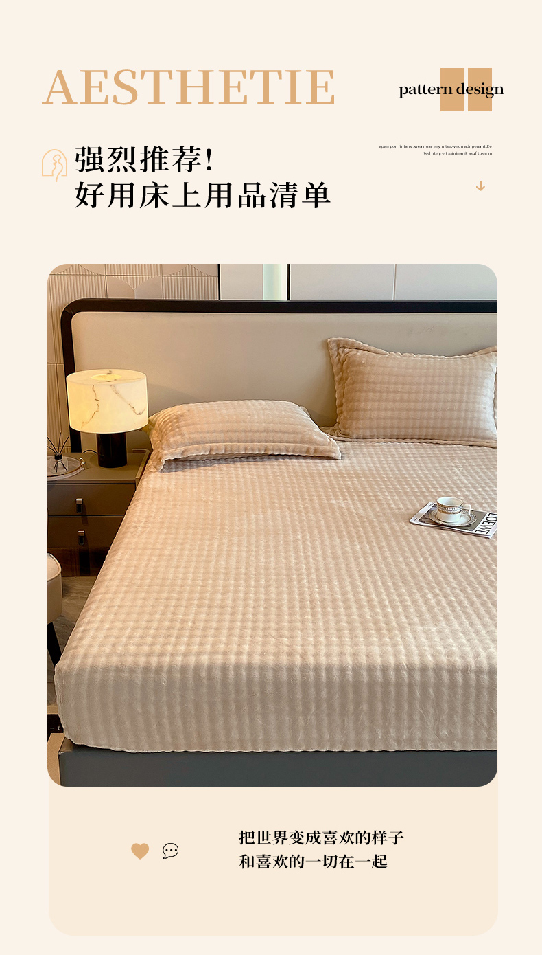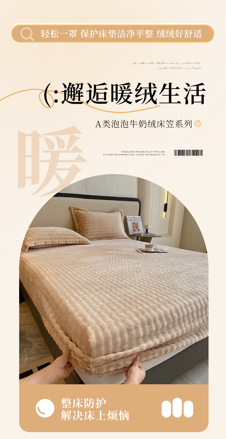 • 91家纺网 家纺一手货源 找家纺 雨彤家纺 2024新款泡泡牛奶绒床笠 驼色