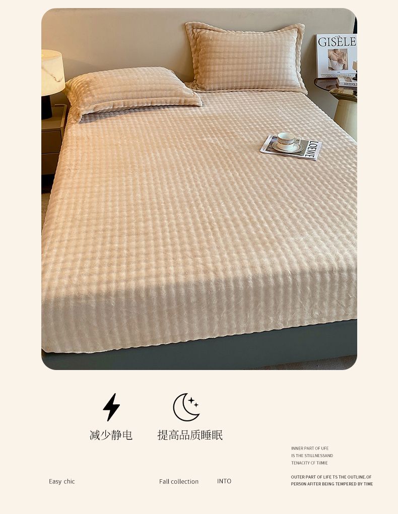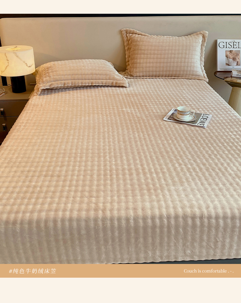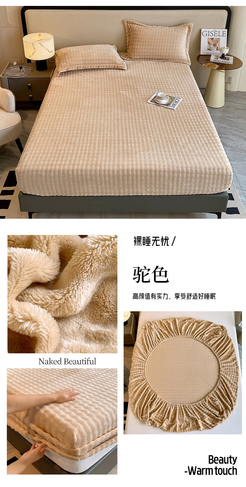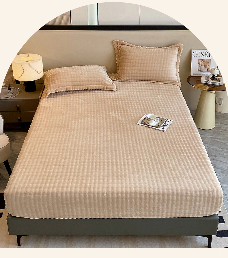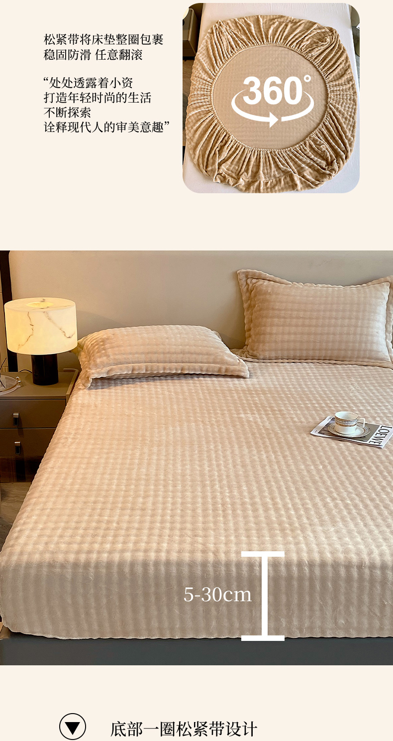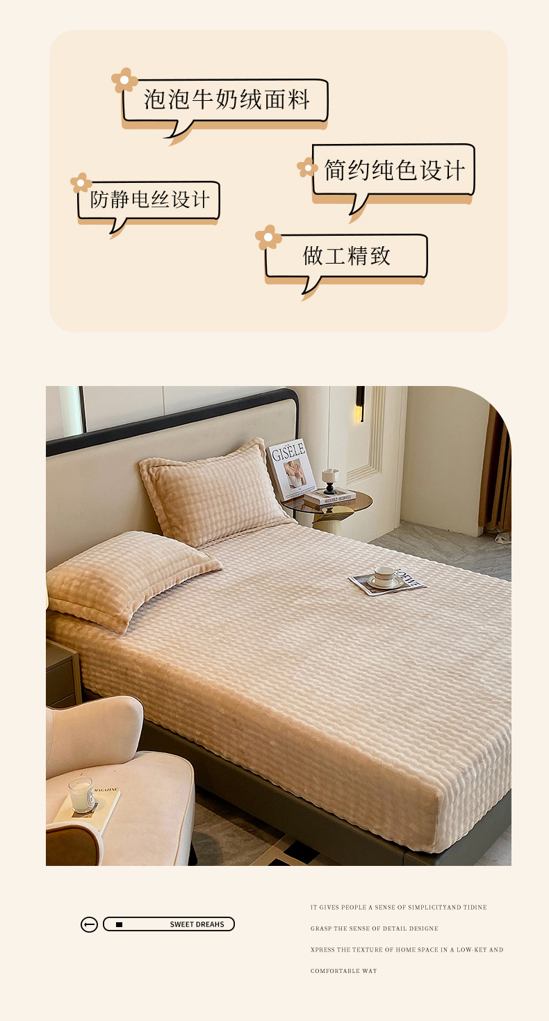 雨彤家纺 2024新款泡泡牛奶绒床笠 驼色