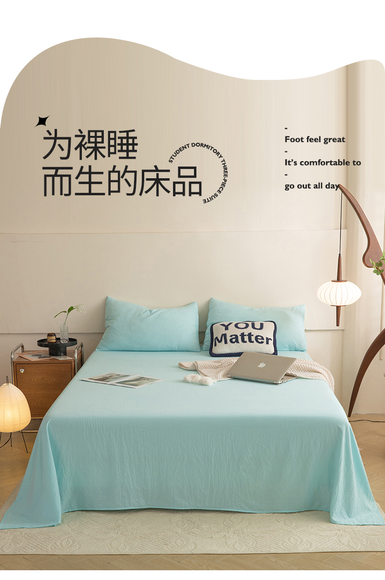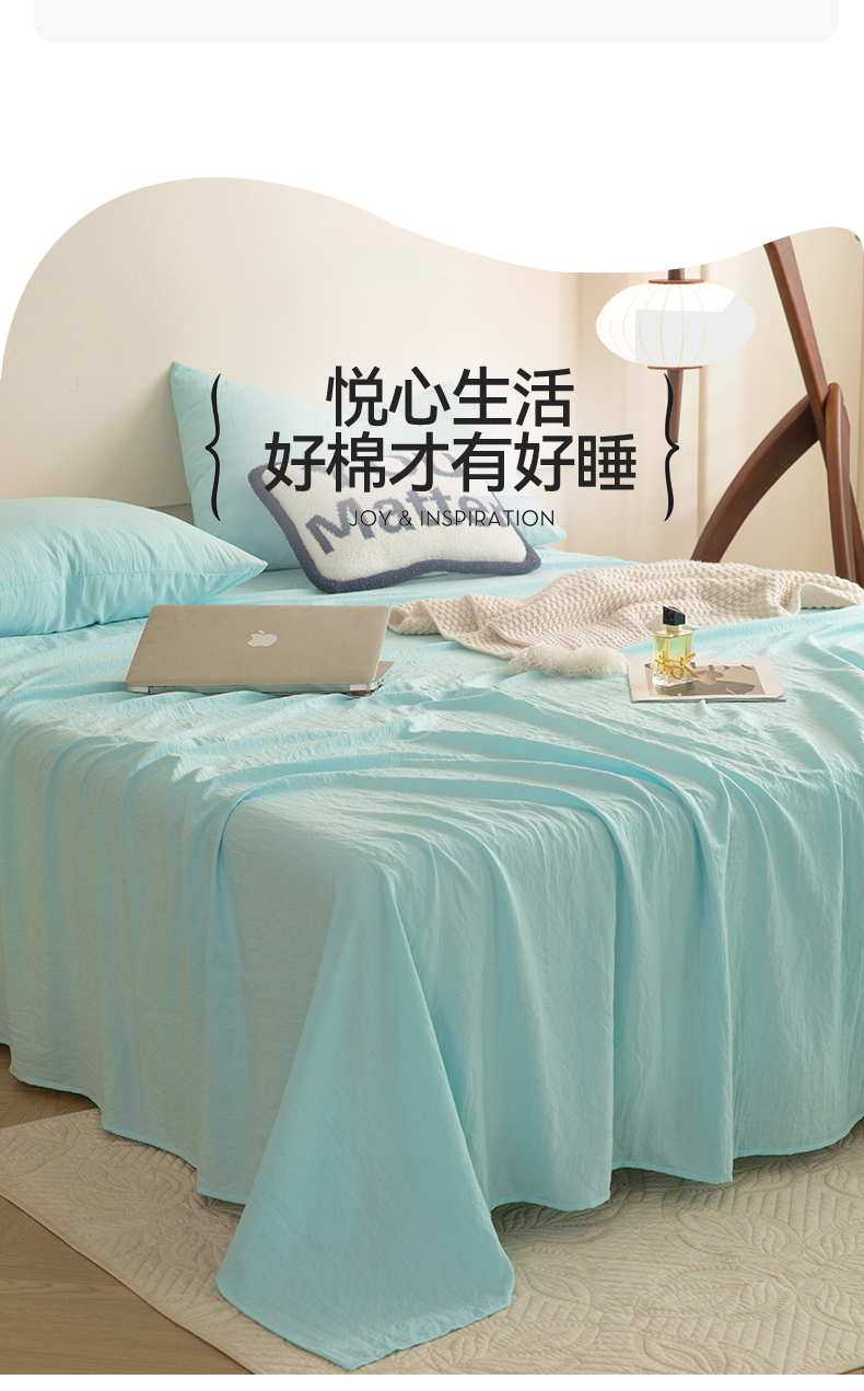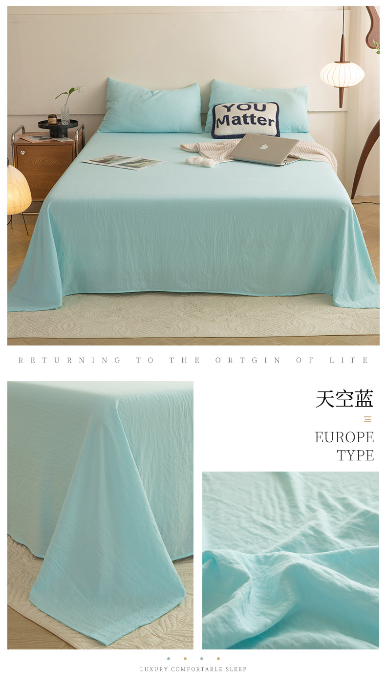 多品家纺 2024新款超柔水洗棉单床单 天空蓝
