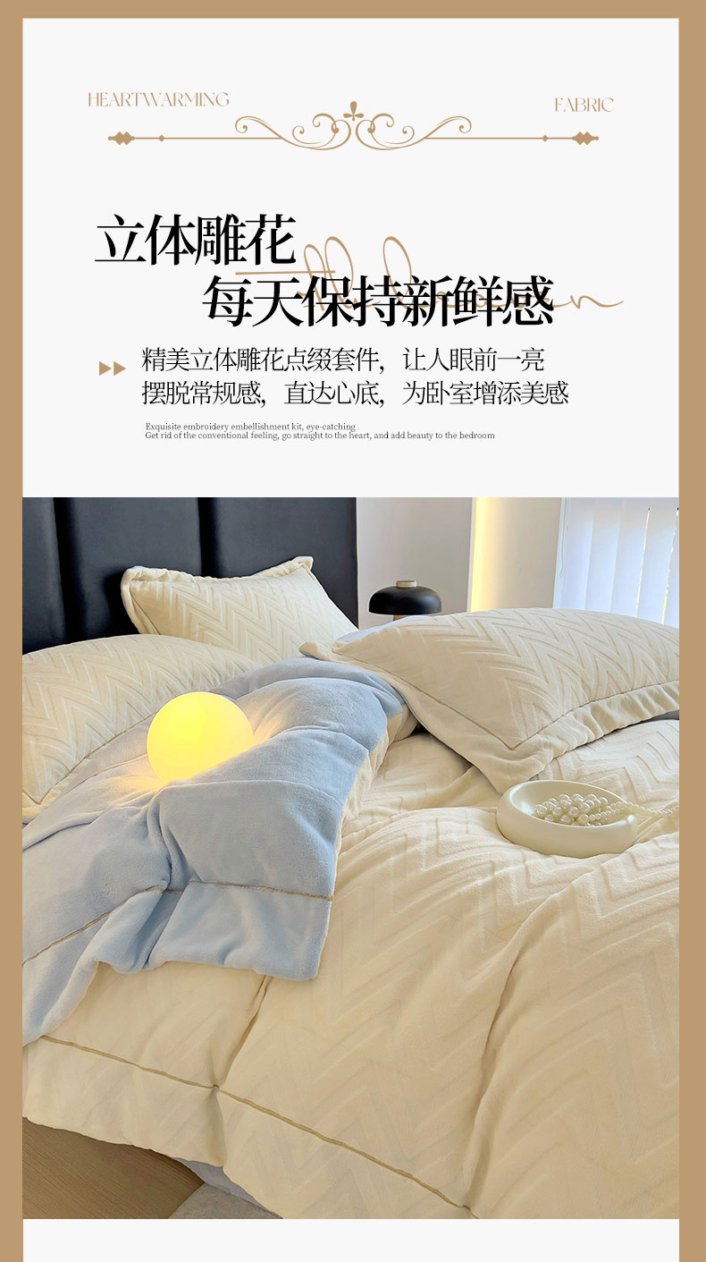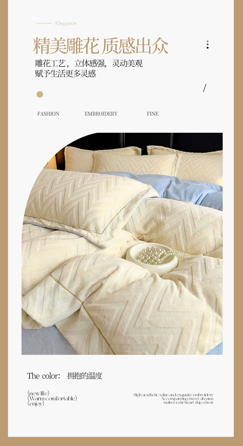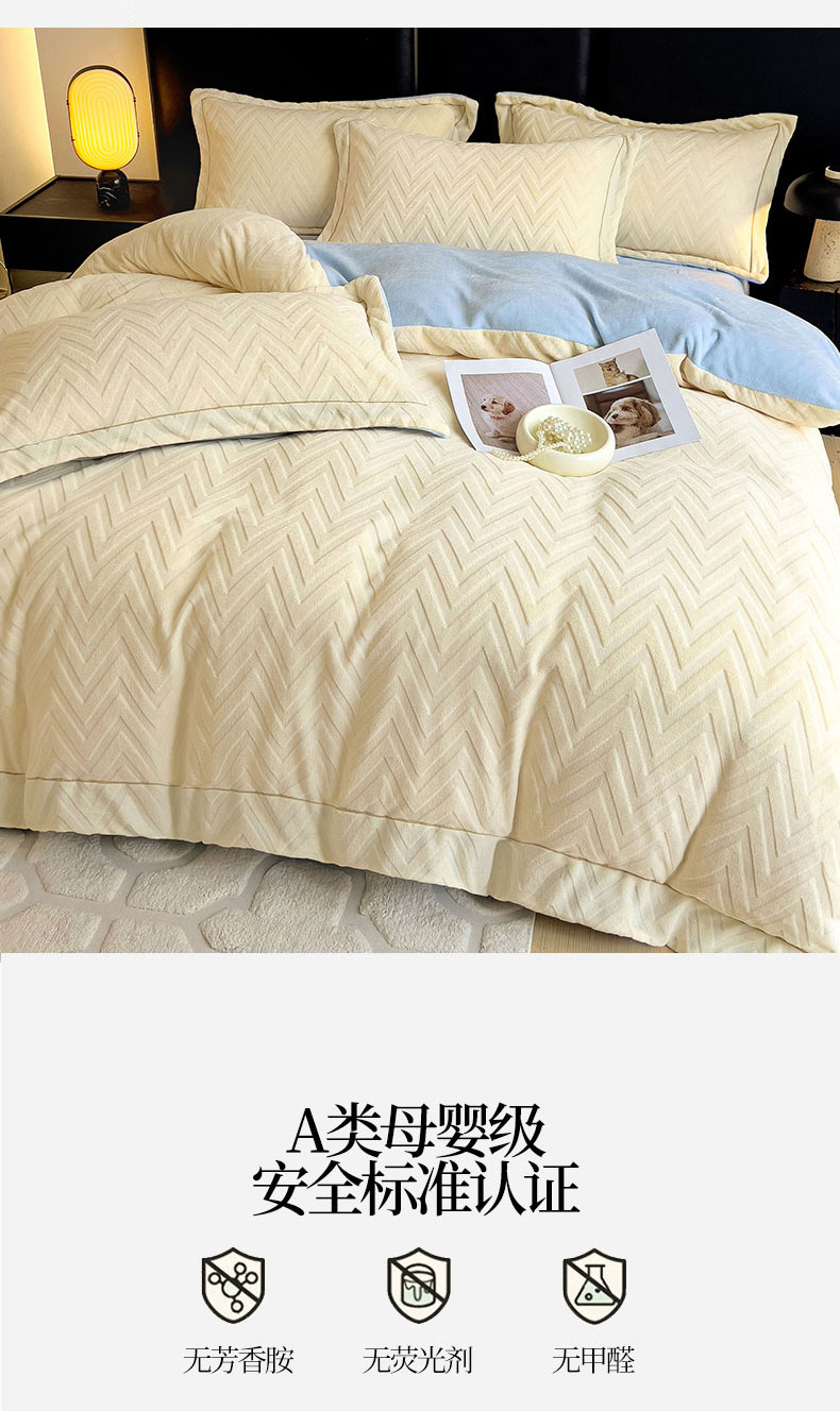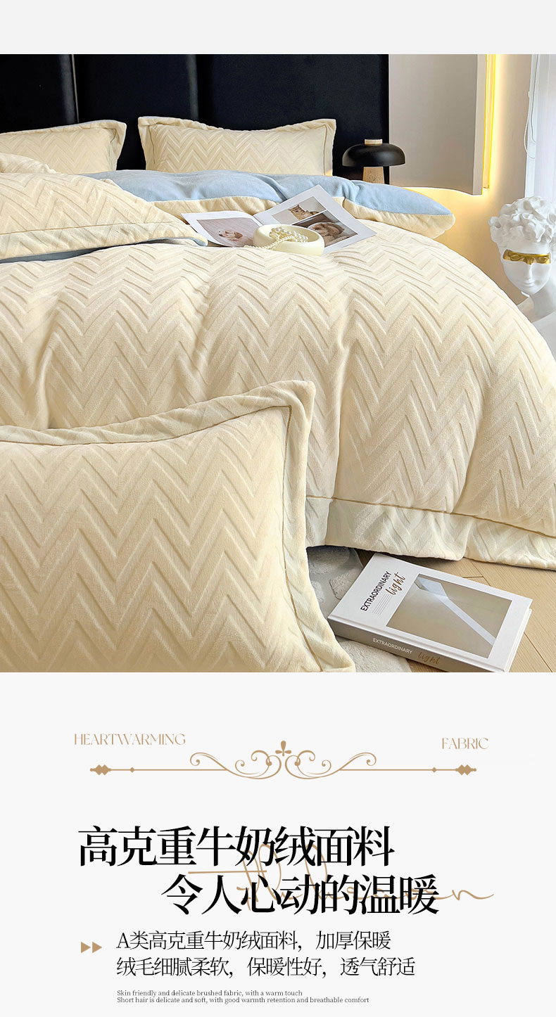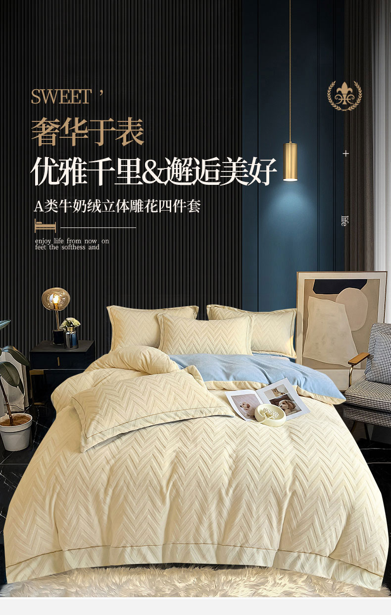 当前位置: 91家纺网 > 商品网购 > 床品套件 > 四件套 > 牛奶绒四件套 > 灰鲸 2025新款高克重牛奶绒立体雕花四件套-瑞纳 瑞纳-奶昔白+天空蓝