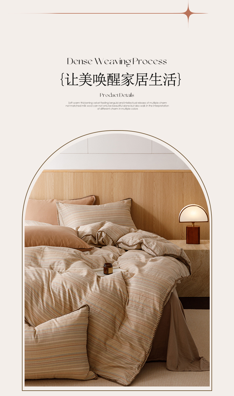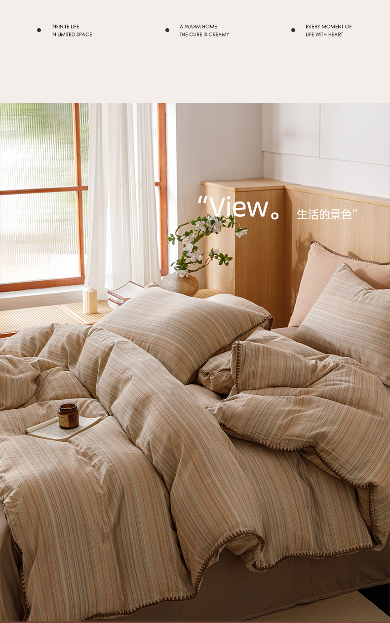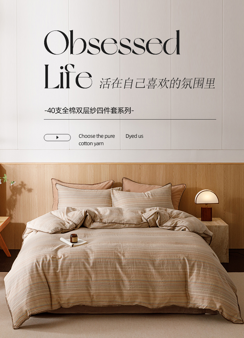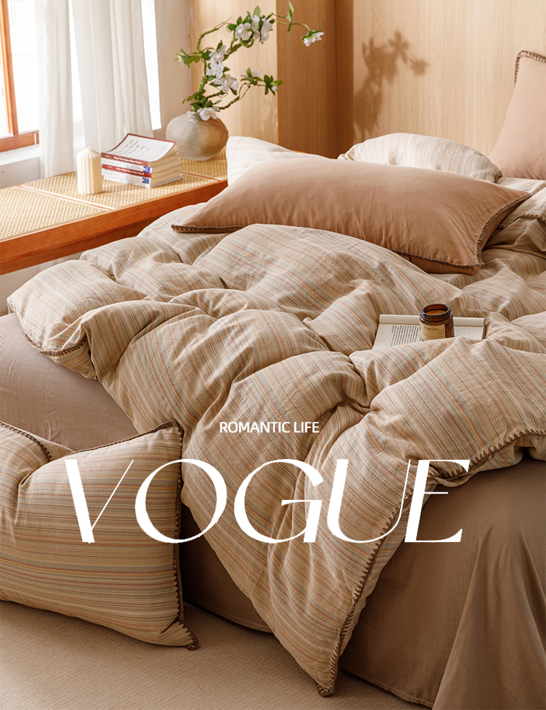 简宜家居(朝初家纺) 2025新款简约三角针40支全棉双层纱四件套 辰序