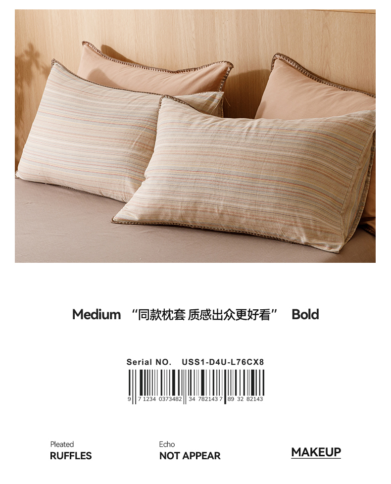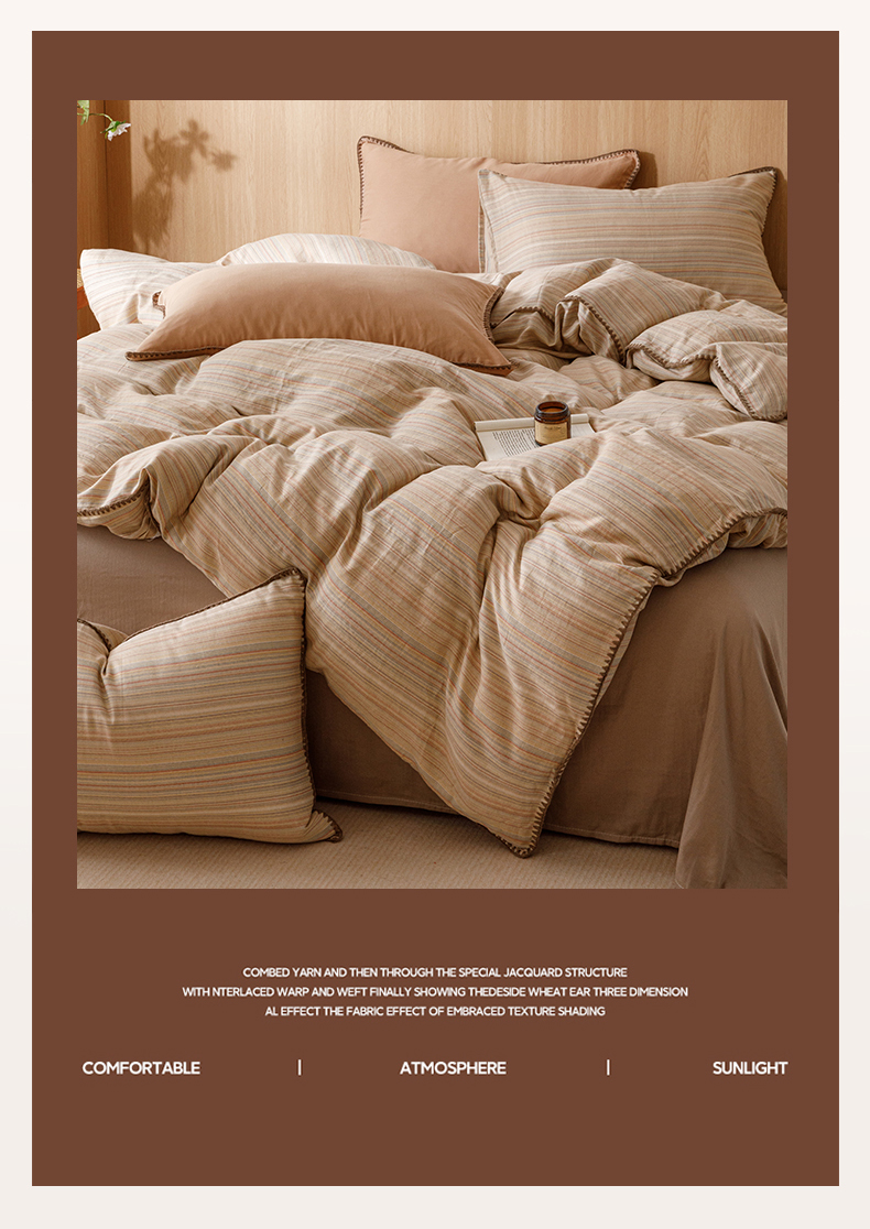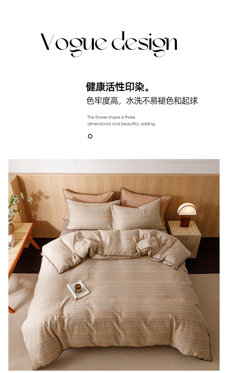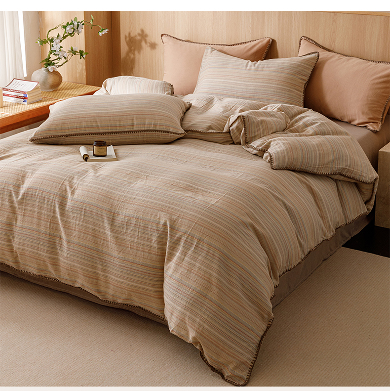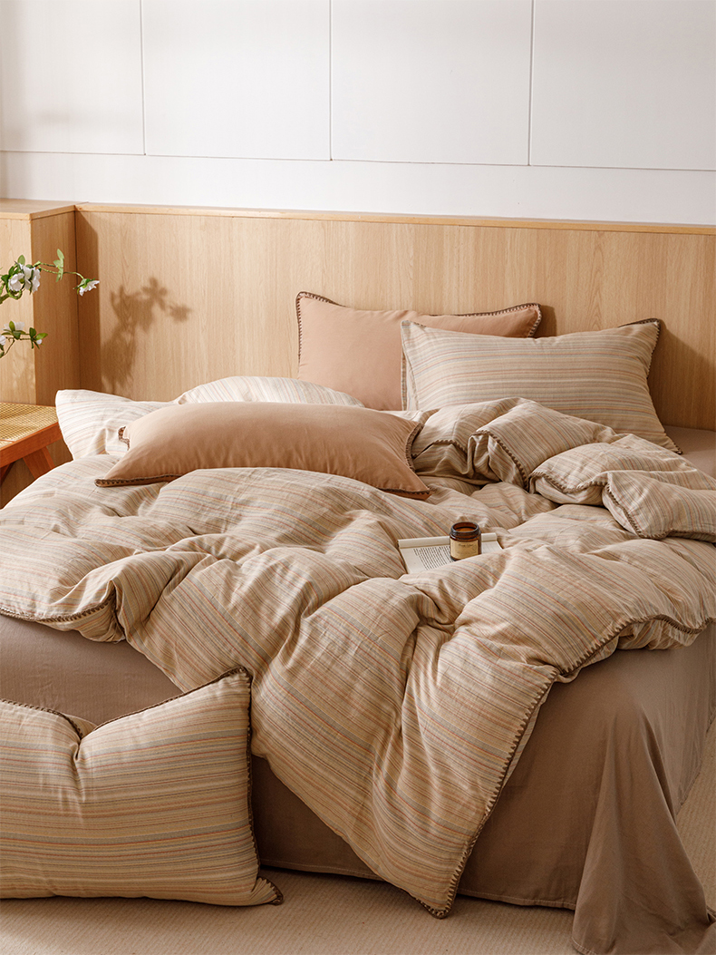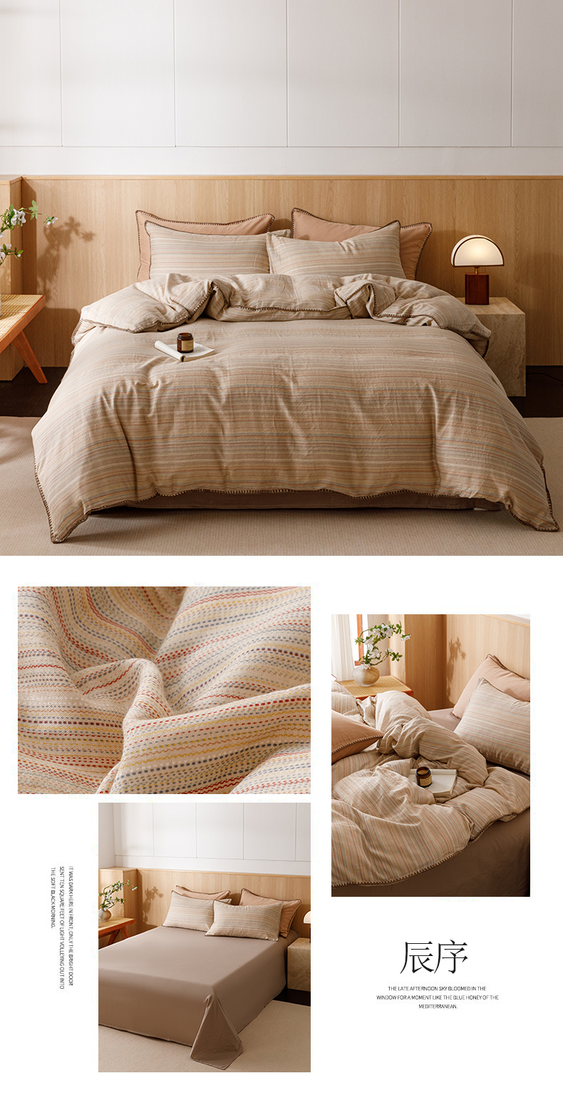 商品名称:简宜家居(朝初家纺) 2025新款简约三角针40支全棉双层纱四件套 辰序