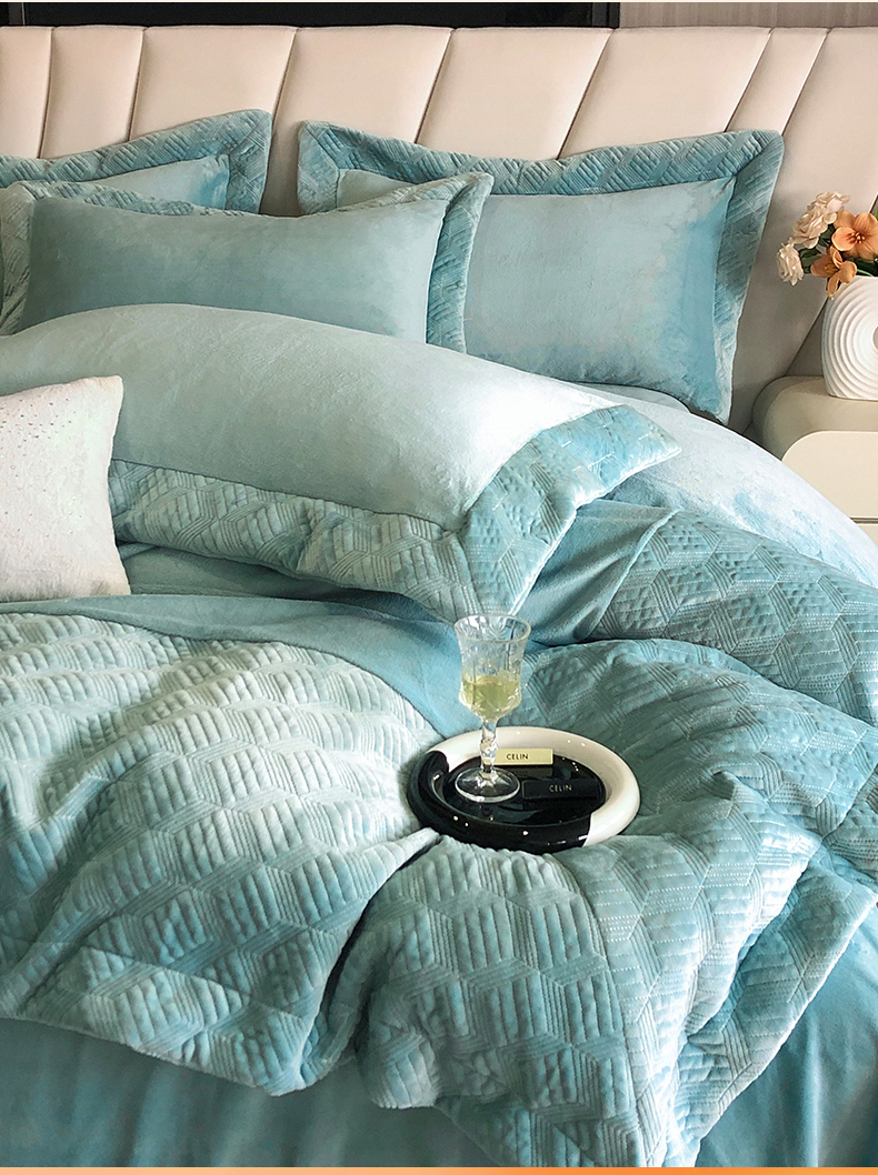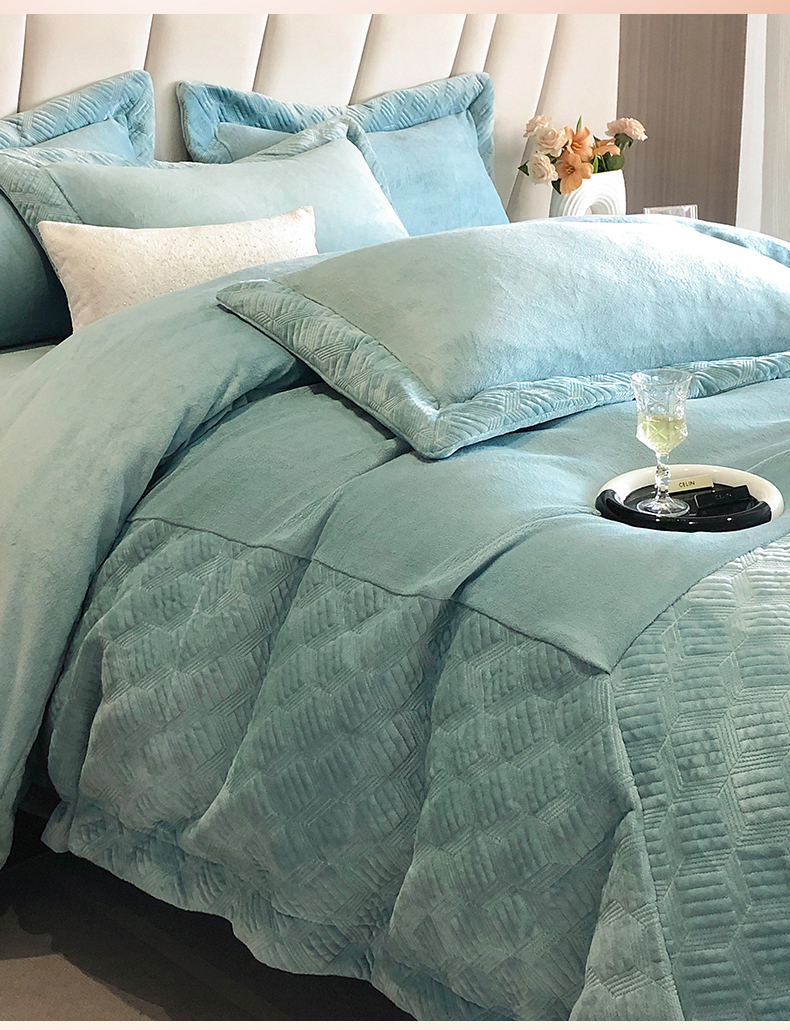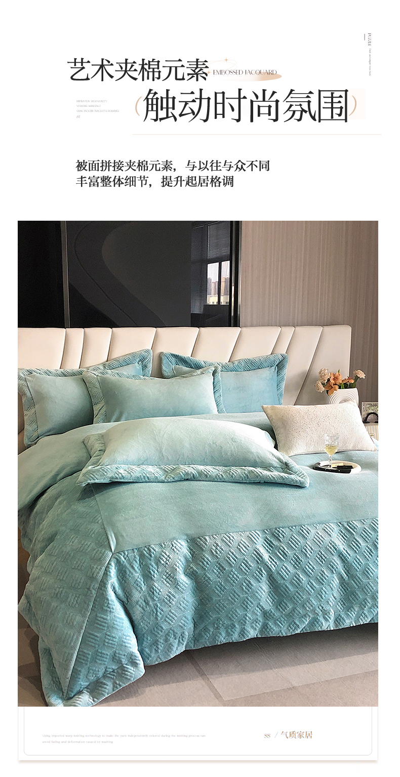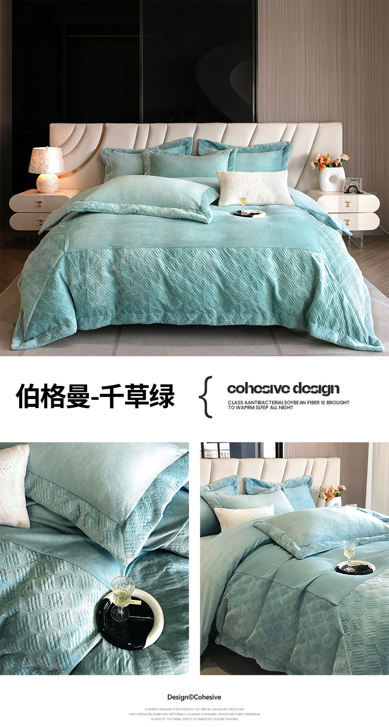 商品名称:保罗圣迪奥 2024新款绗绣大拼角牛奶绒四件套-伯格曼 伯格曼-千草绿