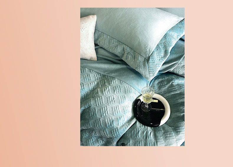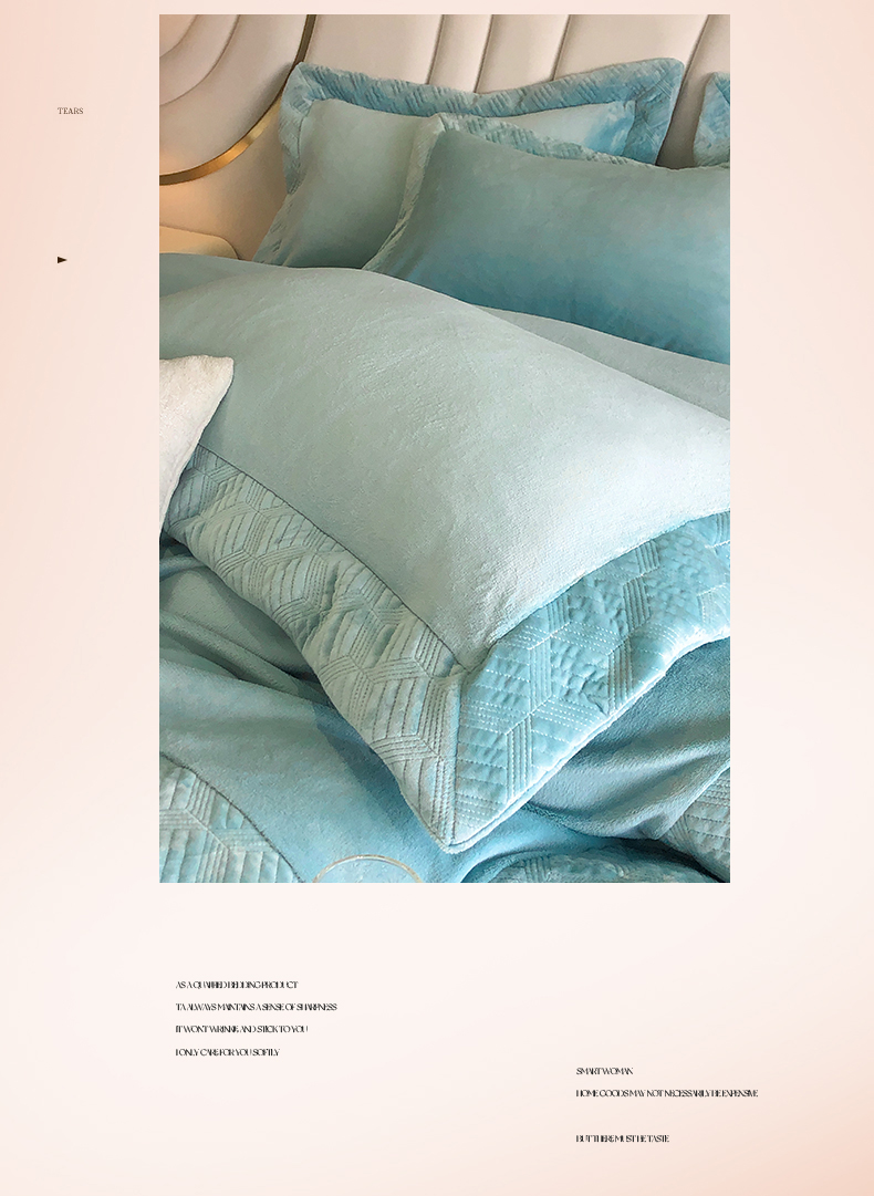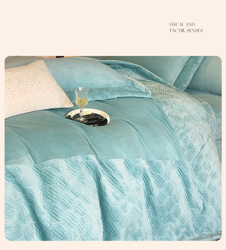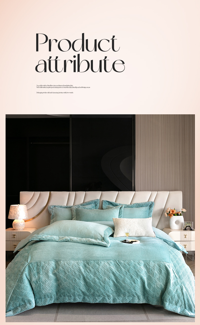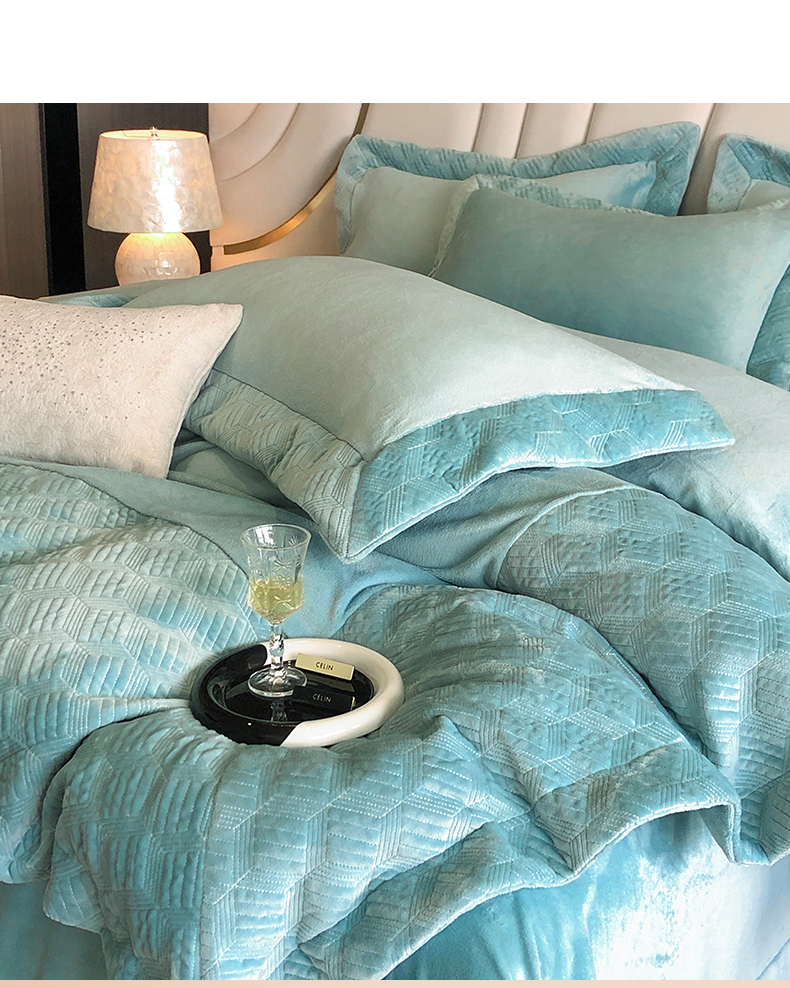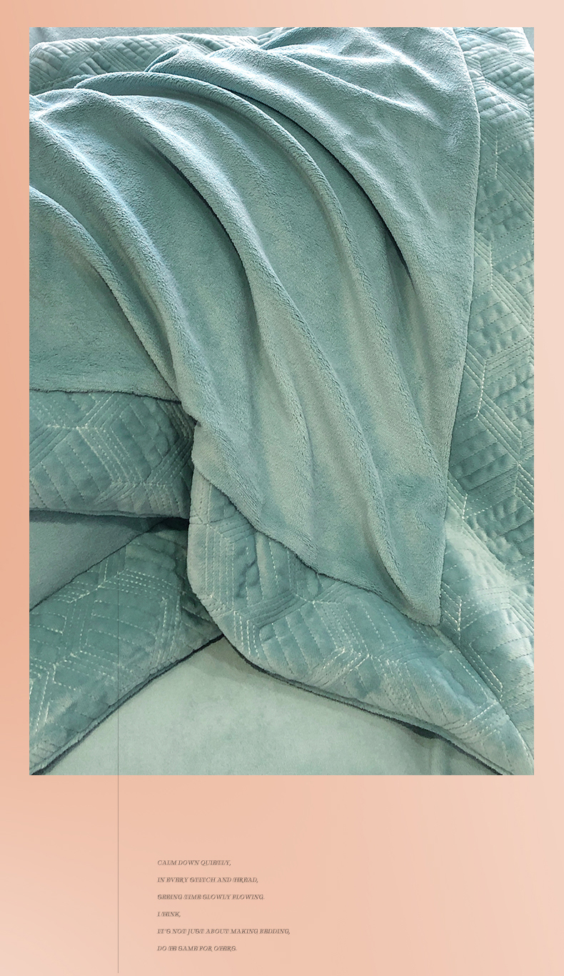 商品名称:保罗圣迪奥 2024新款绗绣大拼角牛奶绒四件套-伯格曼 伯格曼-千草绿