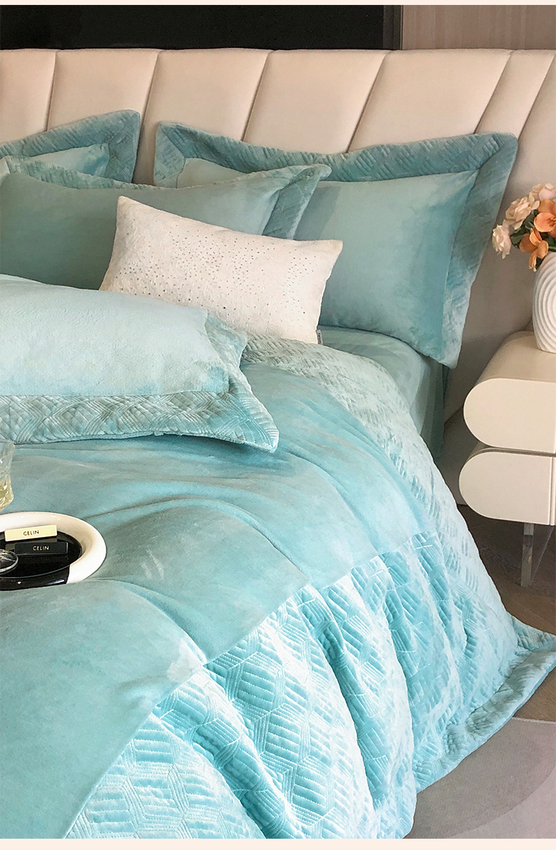 保罗圣迪奥 2024新款绗绣大拼角牛奶绒四件套-伯格曼 伯格曼-千草绿