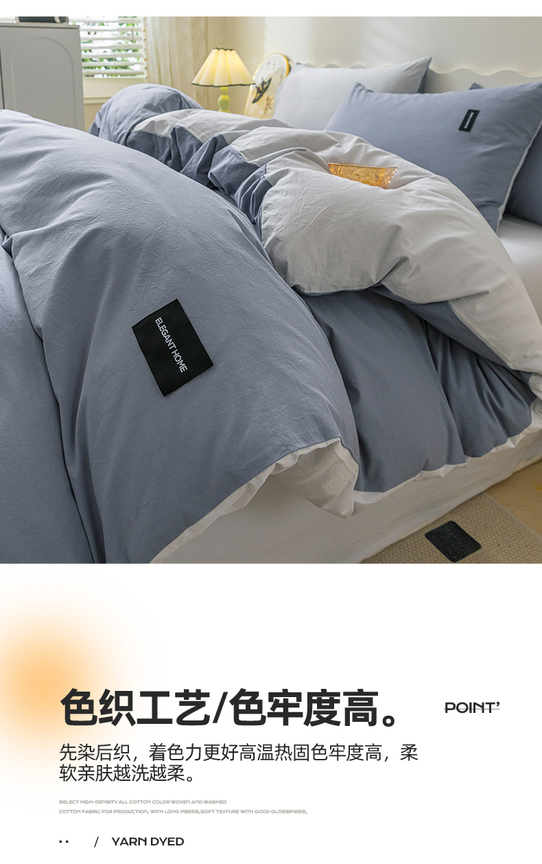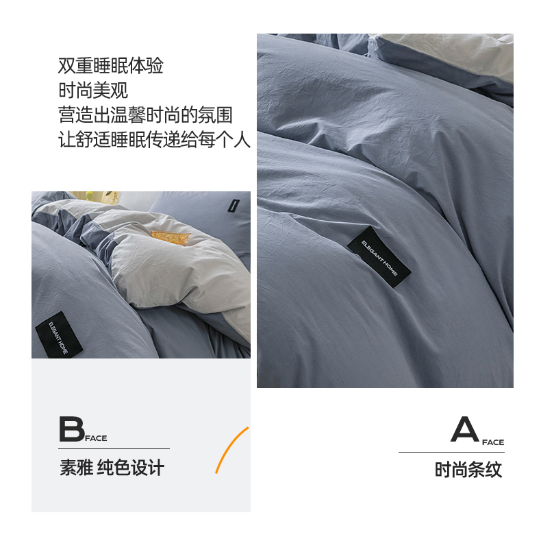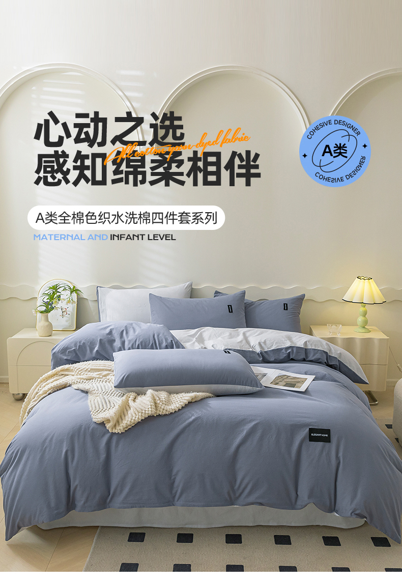 商品名称:(总)蓝巢家纺 2023新款全棉色织水洗棉双拼款四件套