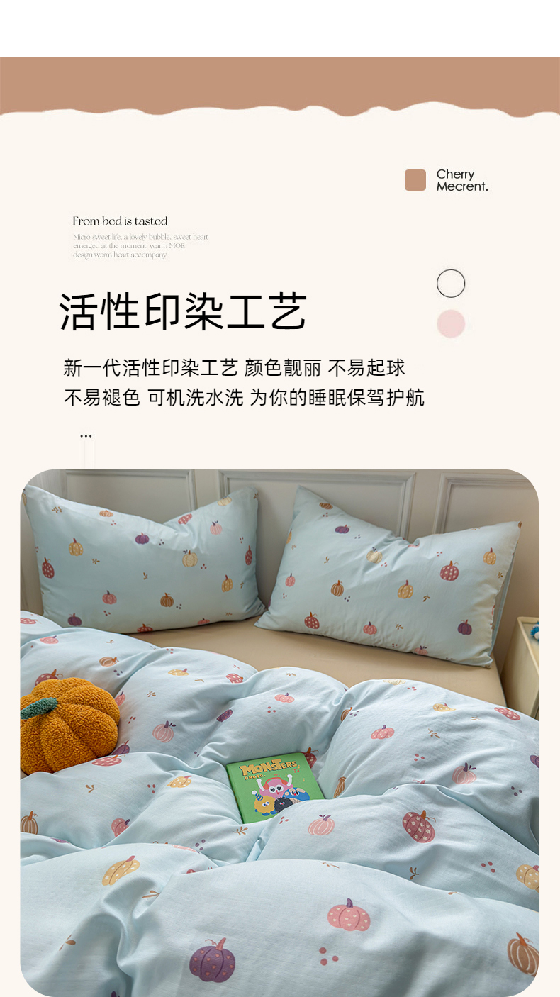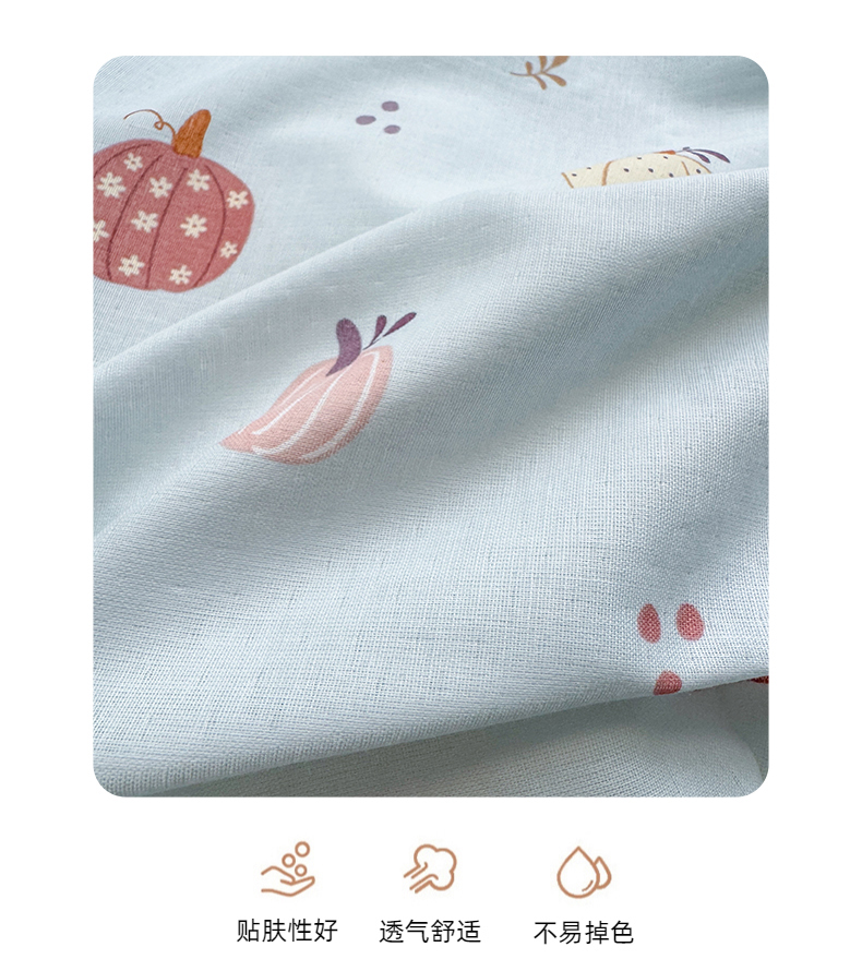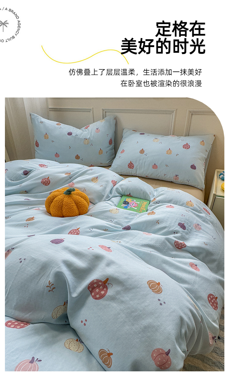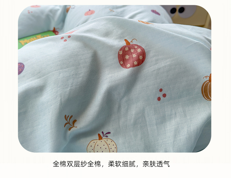商品名称:曼之夏 2024新款全棉A类母婴级双层纱四件套 南瓜甜梦-兰