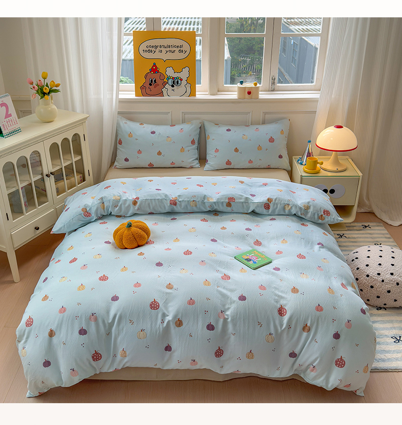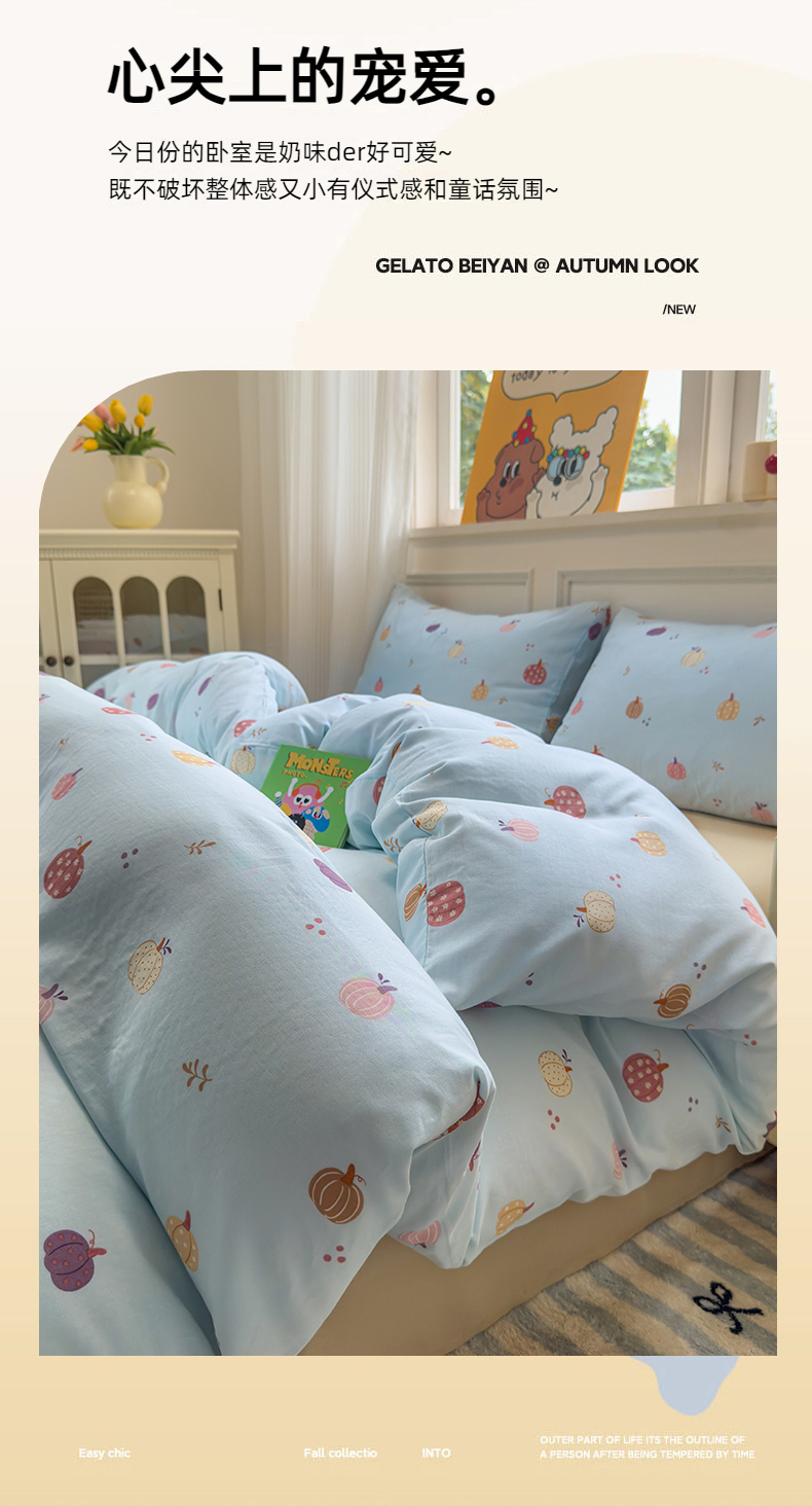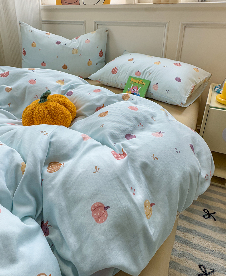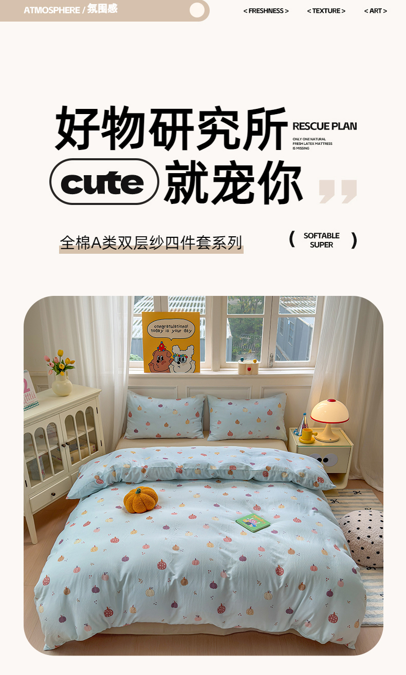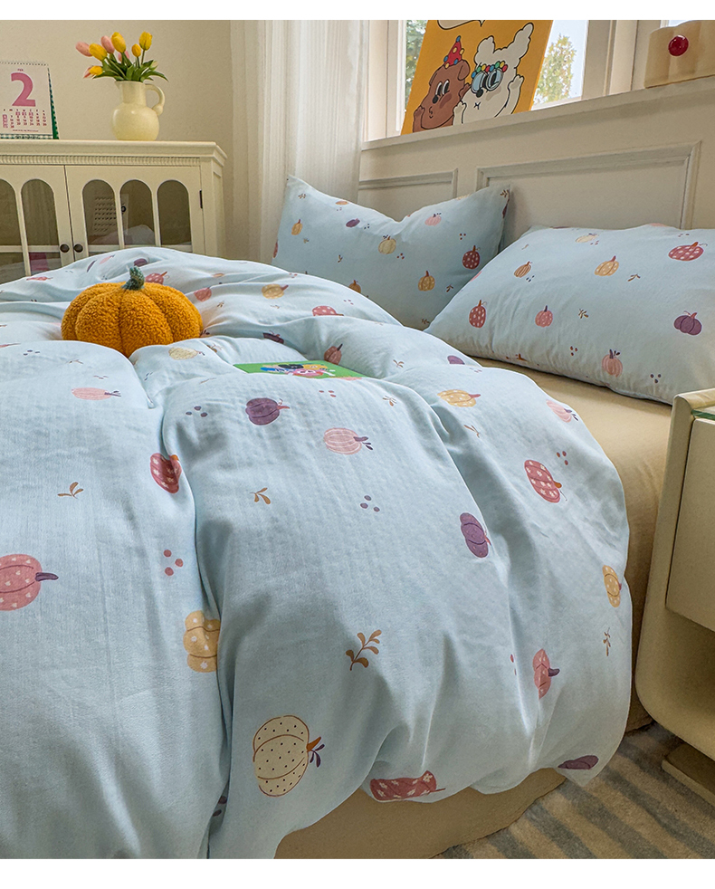 曼之夏 2024新款全棉A类母婴级双层纱四件套 南瓜甜梦-兰
