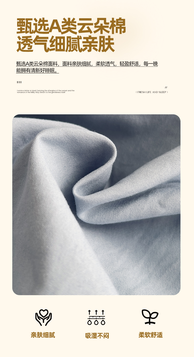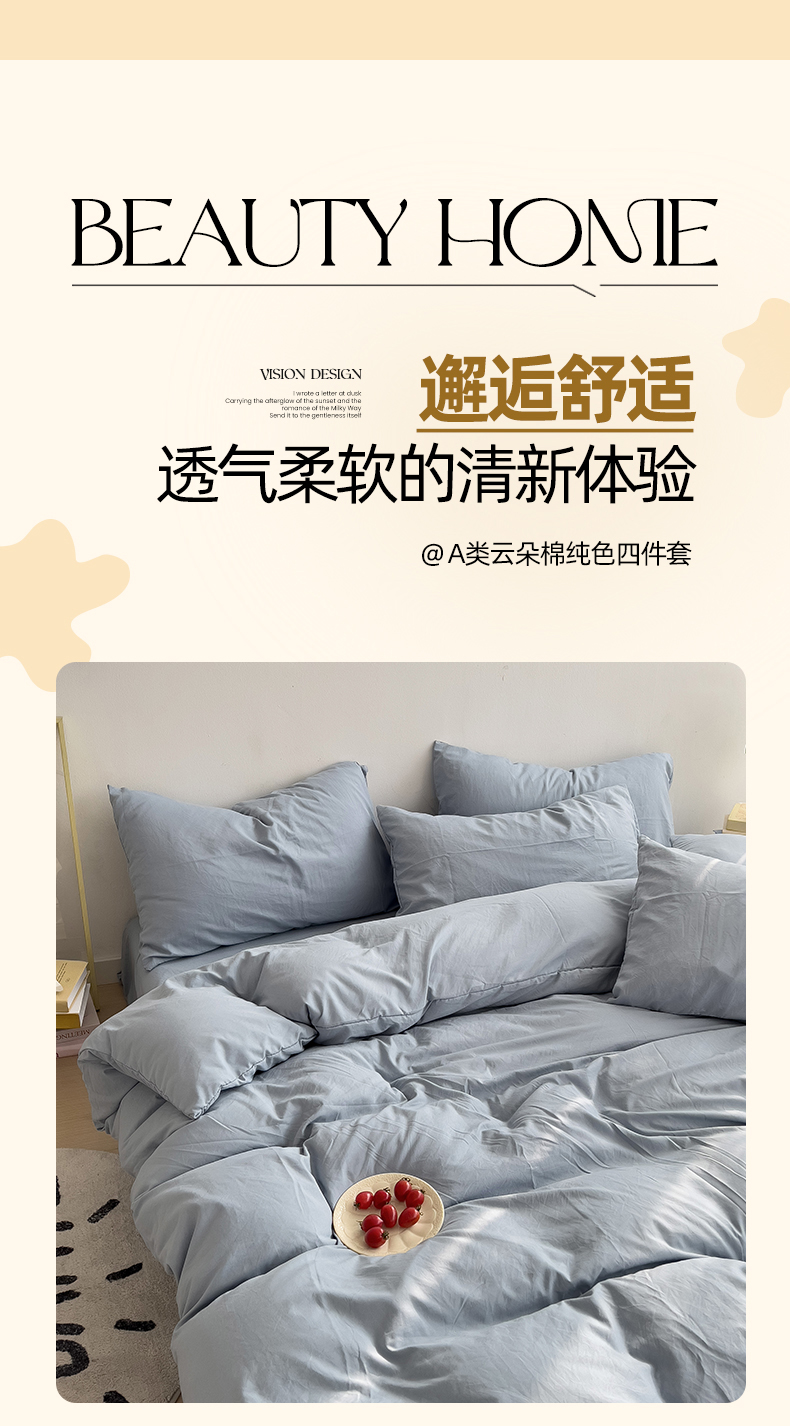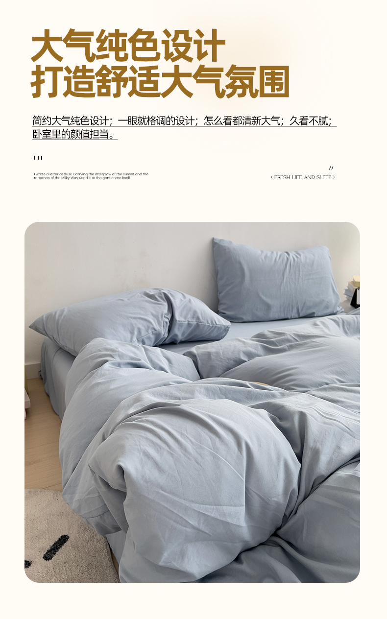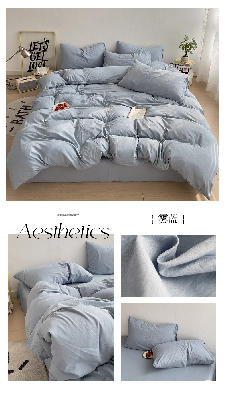 当前位置: 91家纺网 > 商品网购 > 床品套件 > 四件套 > 水洗棉四件套 > 妖妖家纺 2025新款水洗云朵棉纯色四件套 雾蓝