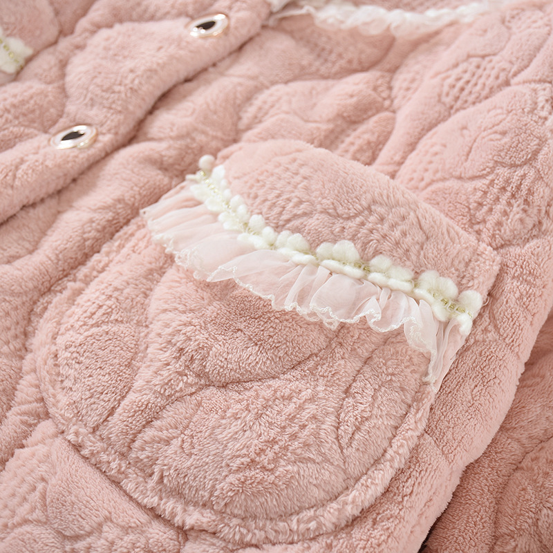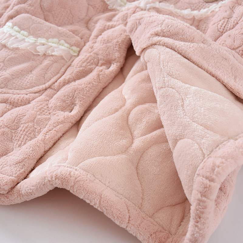 (总)洛兰沙家居馆 2024新款清新睡衣女秋冬三层夹棉珊瑚绒加厚保暖两件套女士可外穿加绒家居服,粉色,灰色,白色,玉色