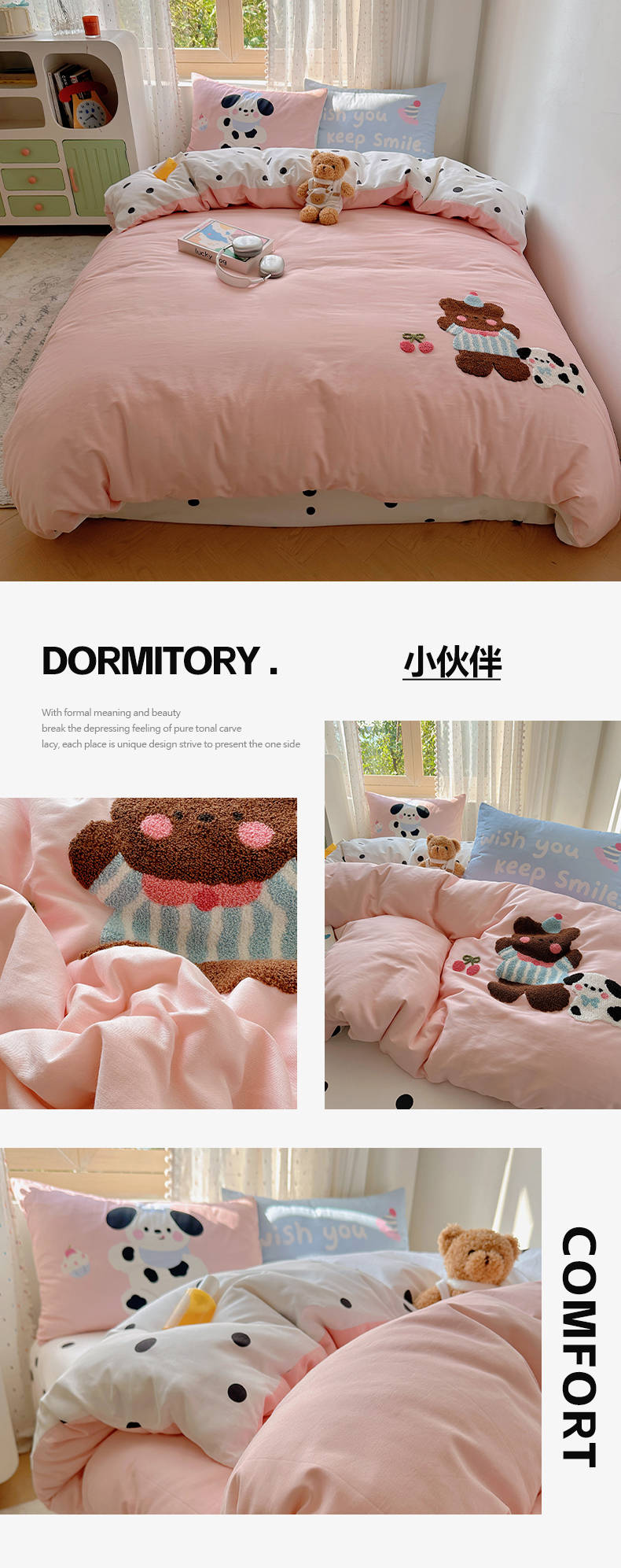 (总)美乐迪家纺 2024新款全棉印花混搭系列四件套,波点小猫,花园小狗,可爱兔,可乐汉堡,奶油狗,甜心小熊,童趣,小熊猫