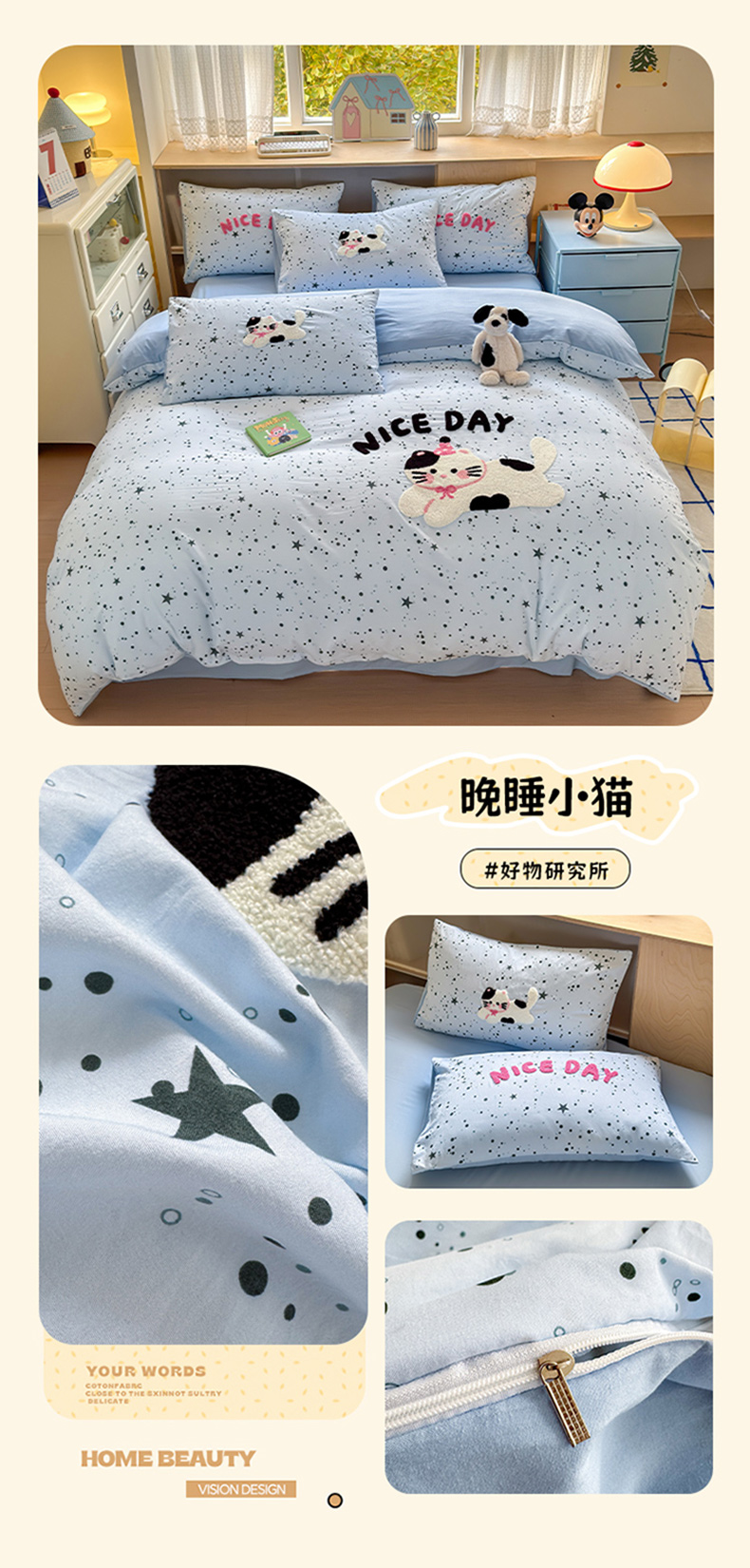 (总)罗亿家纺 2025新款A类兔毛贴布绣刺绣牛奶绒四件套-小红书推荐(提供买家秀),赫本风小白,毛线球西高地,帽子puppy,三小只,甜系猫咪,小猫冰激凌