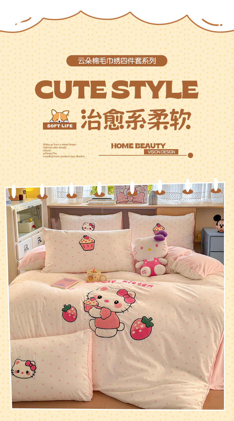 商品名称:(总)罗亿家纺 2025新款糯糯棉(110克)大版卡通毛巾绣四件套(提供买家绣)
